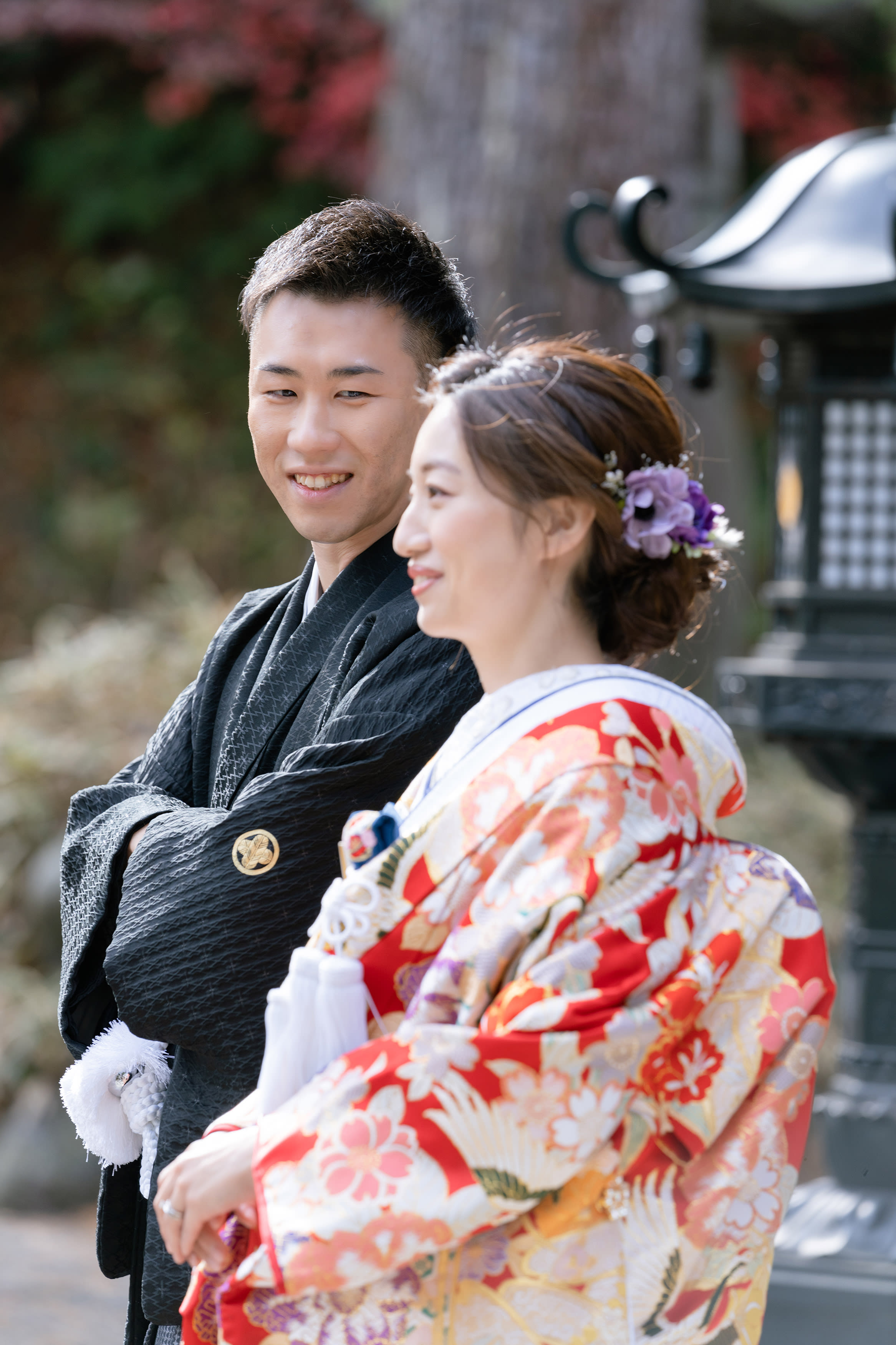 赤い五重塔をバックに、お二人の後ろ姿を残しました!