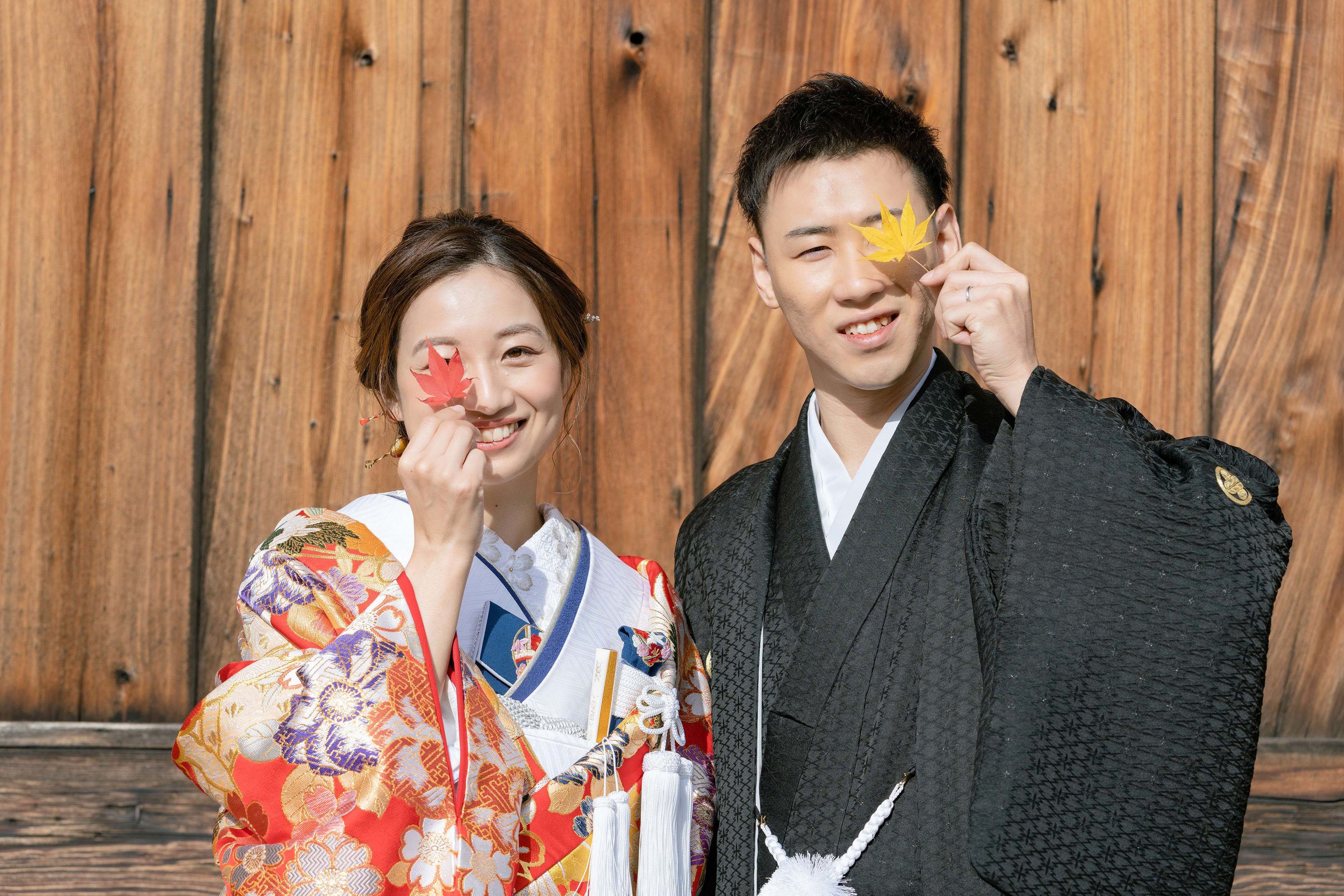 綺麗に色付いた紅葉の下で、お二人にお散歩をしていただきました!