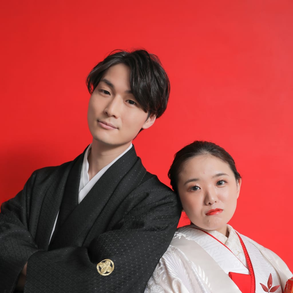 お二人とも同じ背景で、同じポーズでお揃いショット!