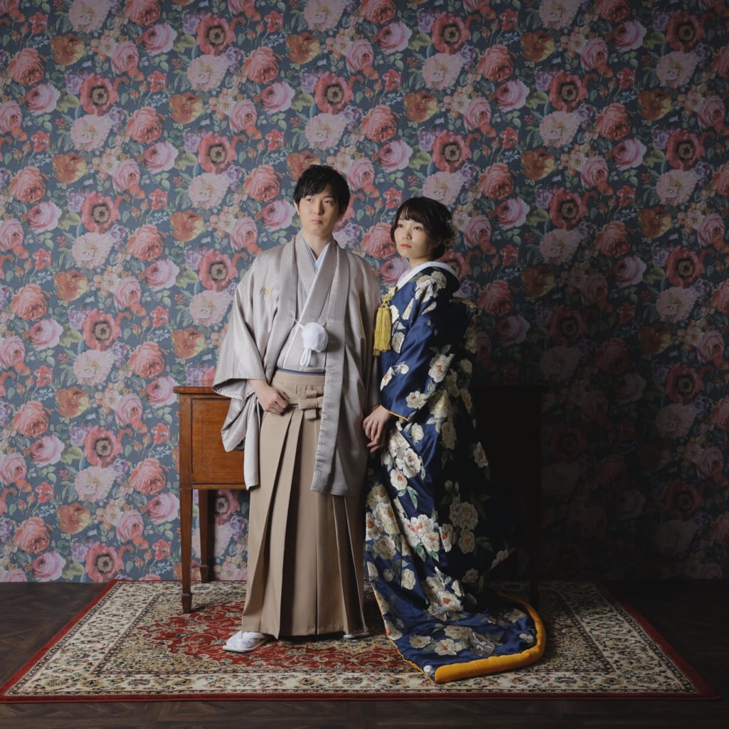 続いてご新婦様のソロショットです!ドライフラワーの髪飾りと青色のお着物の組み合わせがとてもお似合いですね!