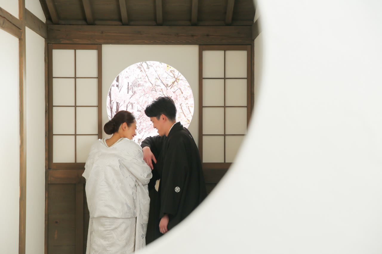 庭園から見える桜がおふたりを祝福してくれているようです♪