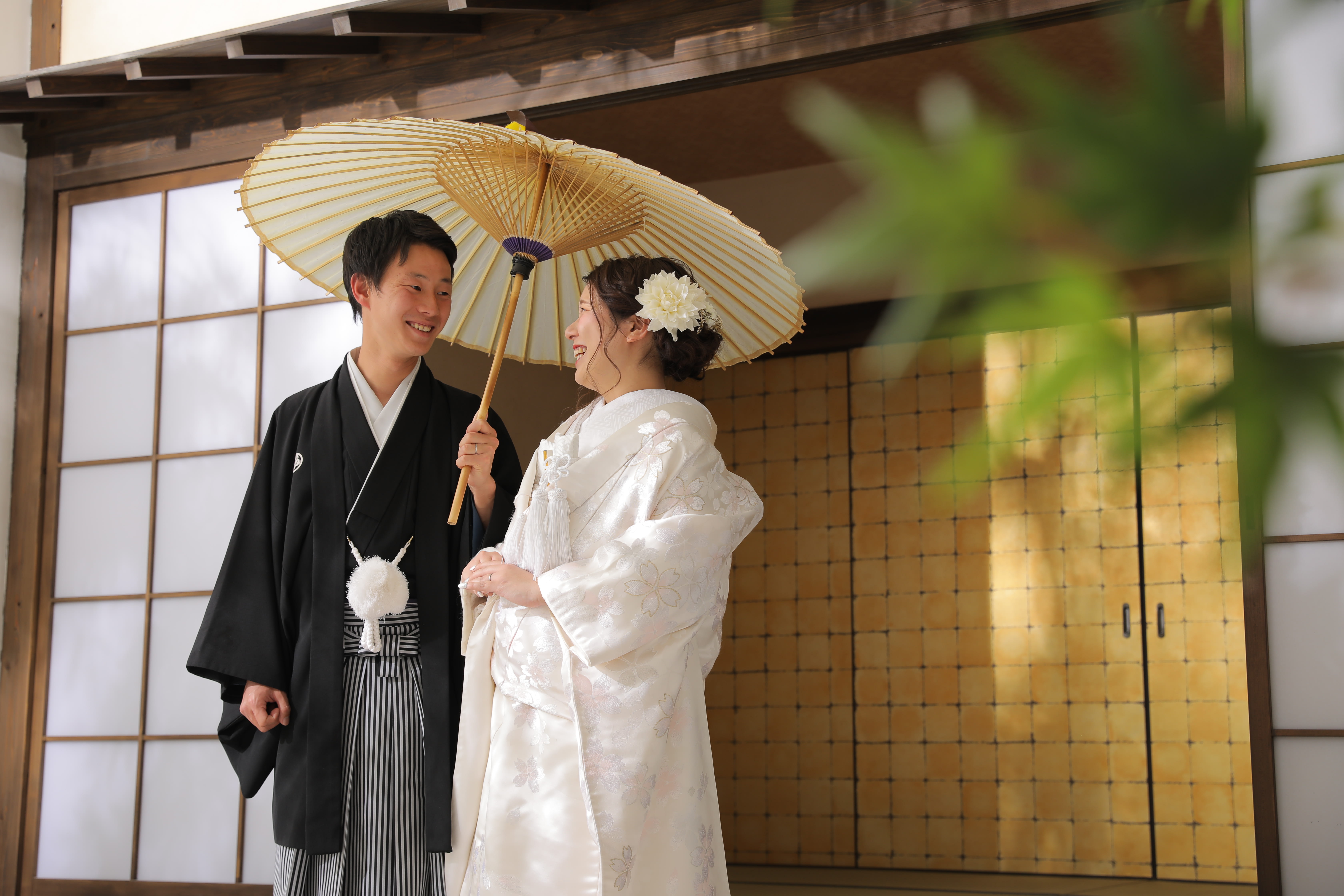 立川店の本格的な茶室スタジオで撮影する、和装の結婚写真