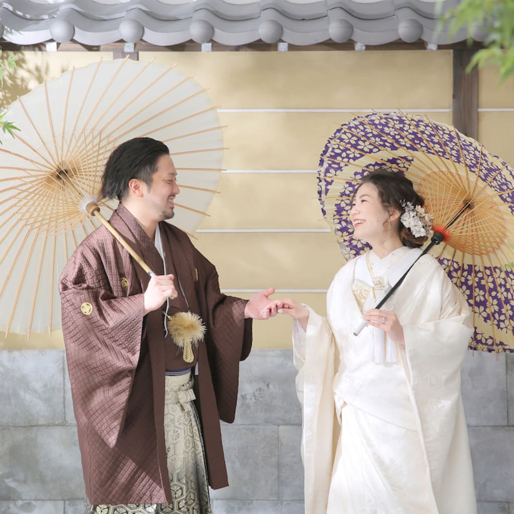 新宿店の本格的な茶室スタジオで撮影する、和装の結婚写真
