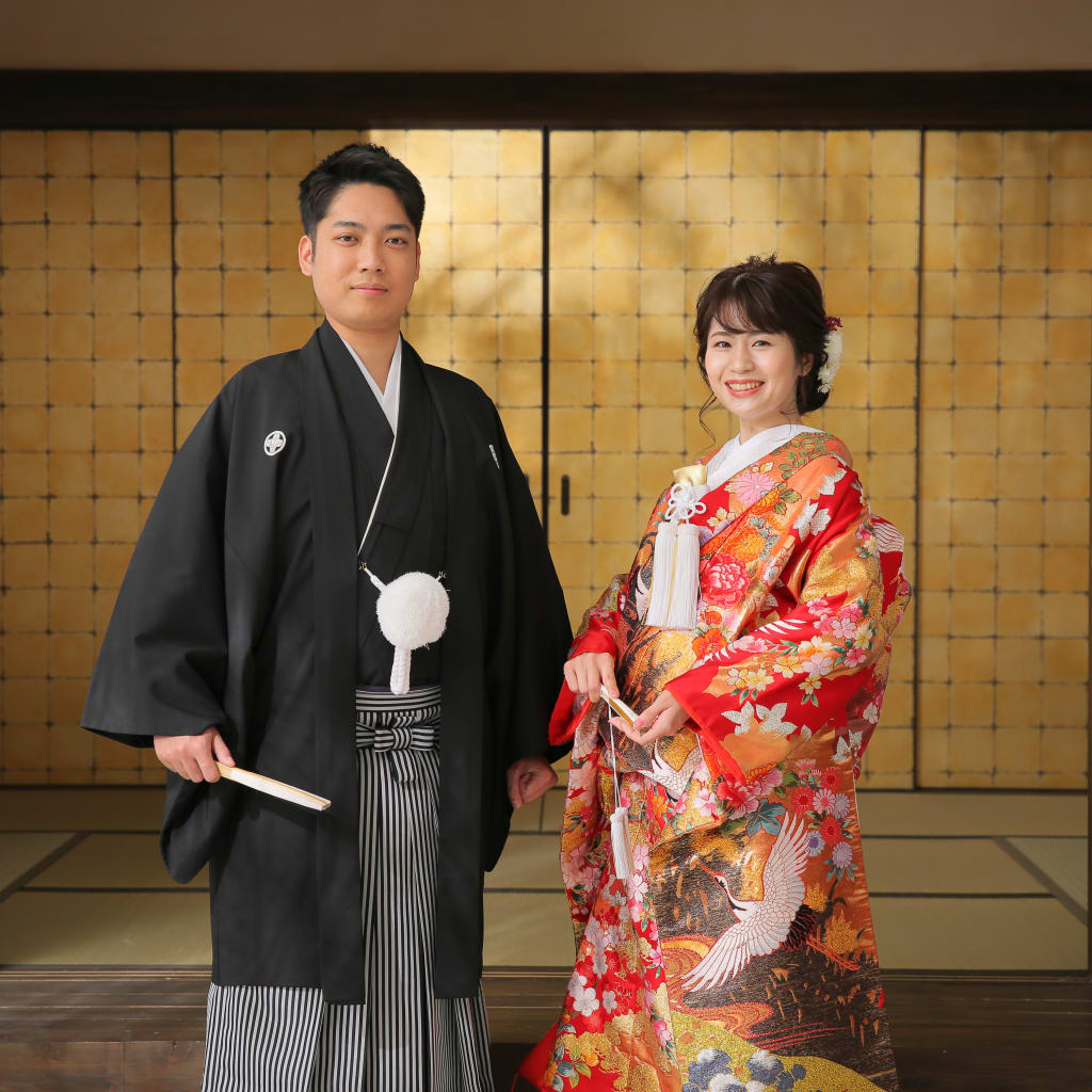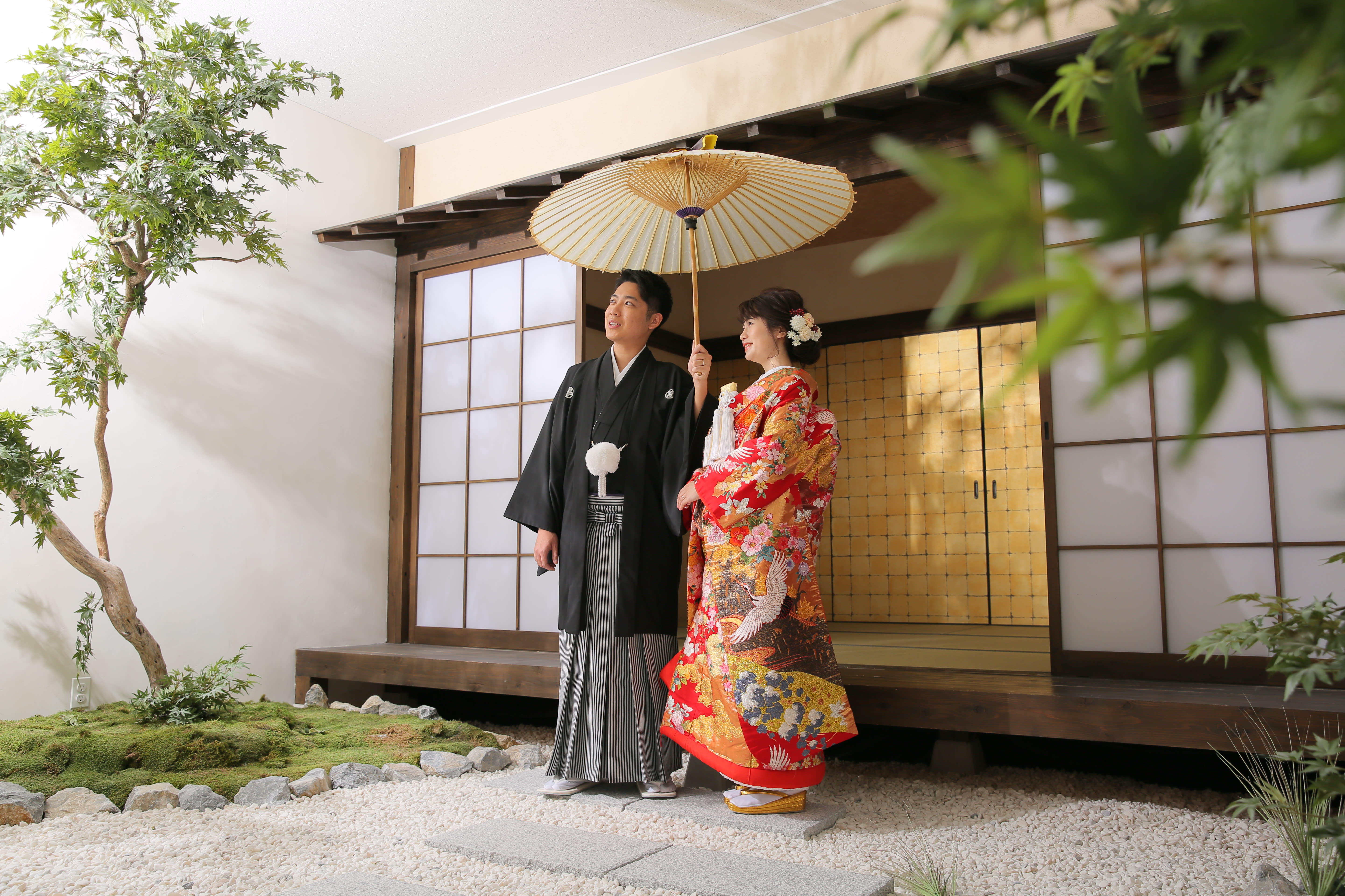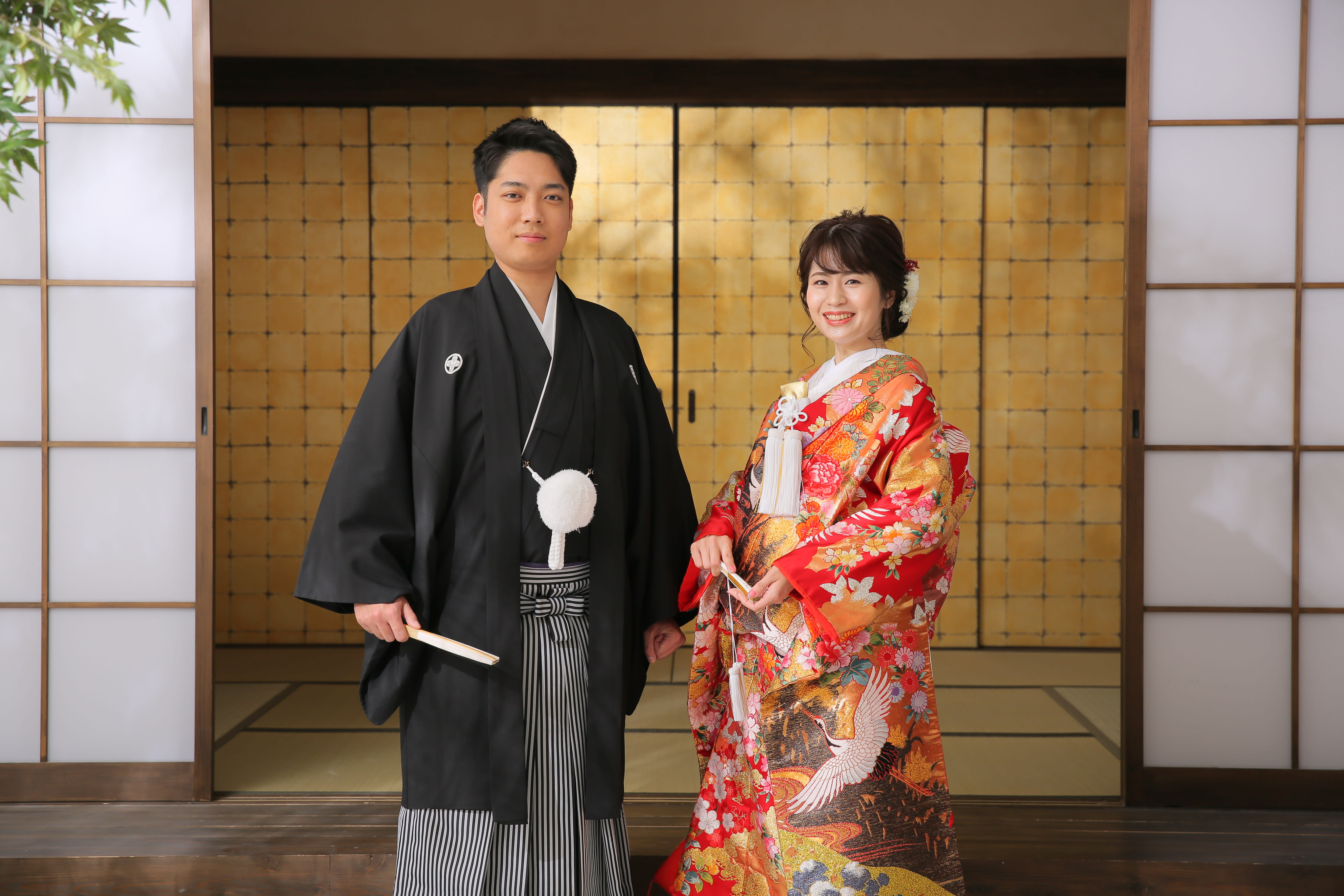立川店の本格的な茶室スタジオで撮影する、和装の結婚写真