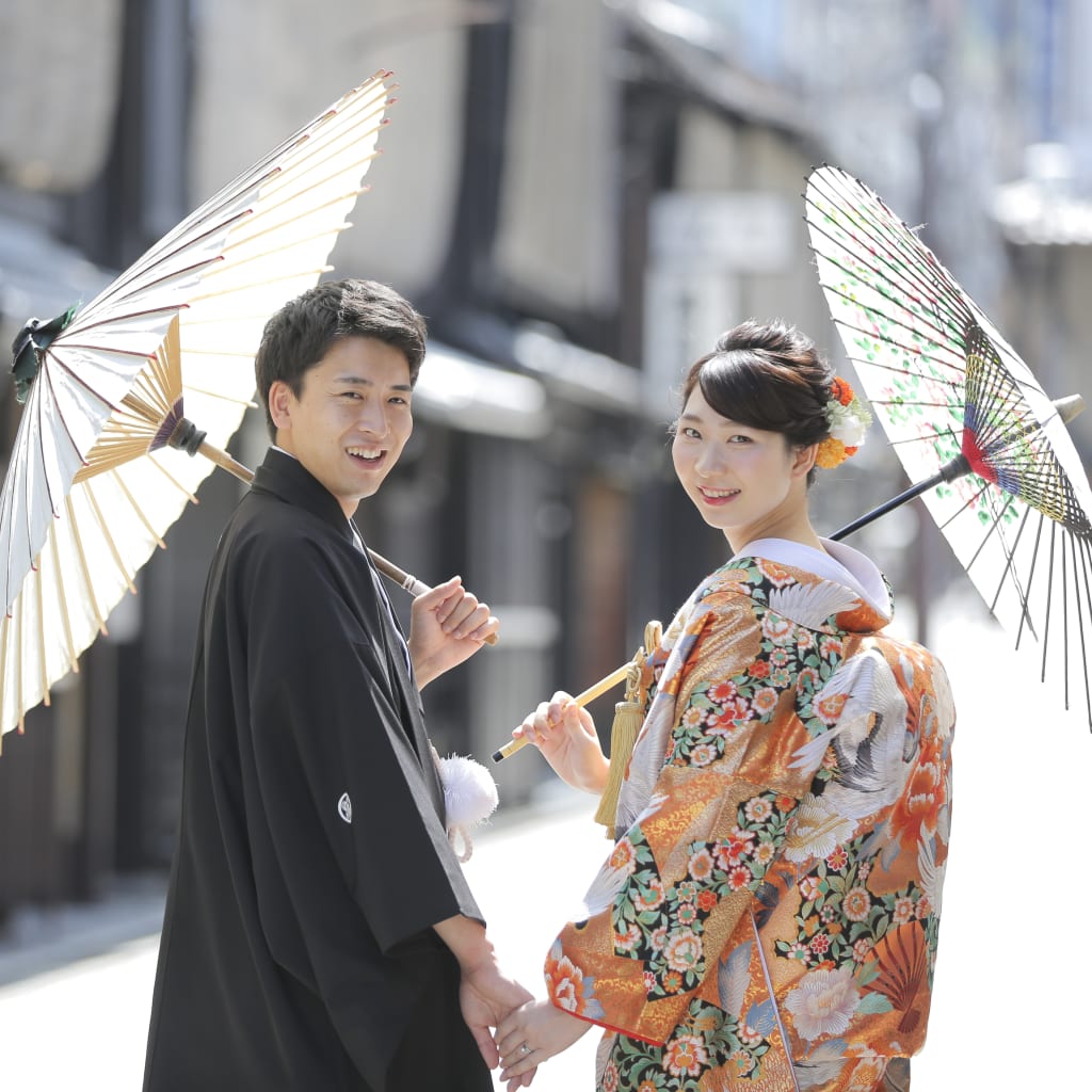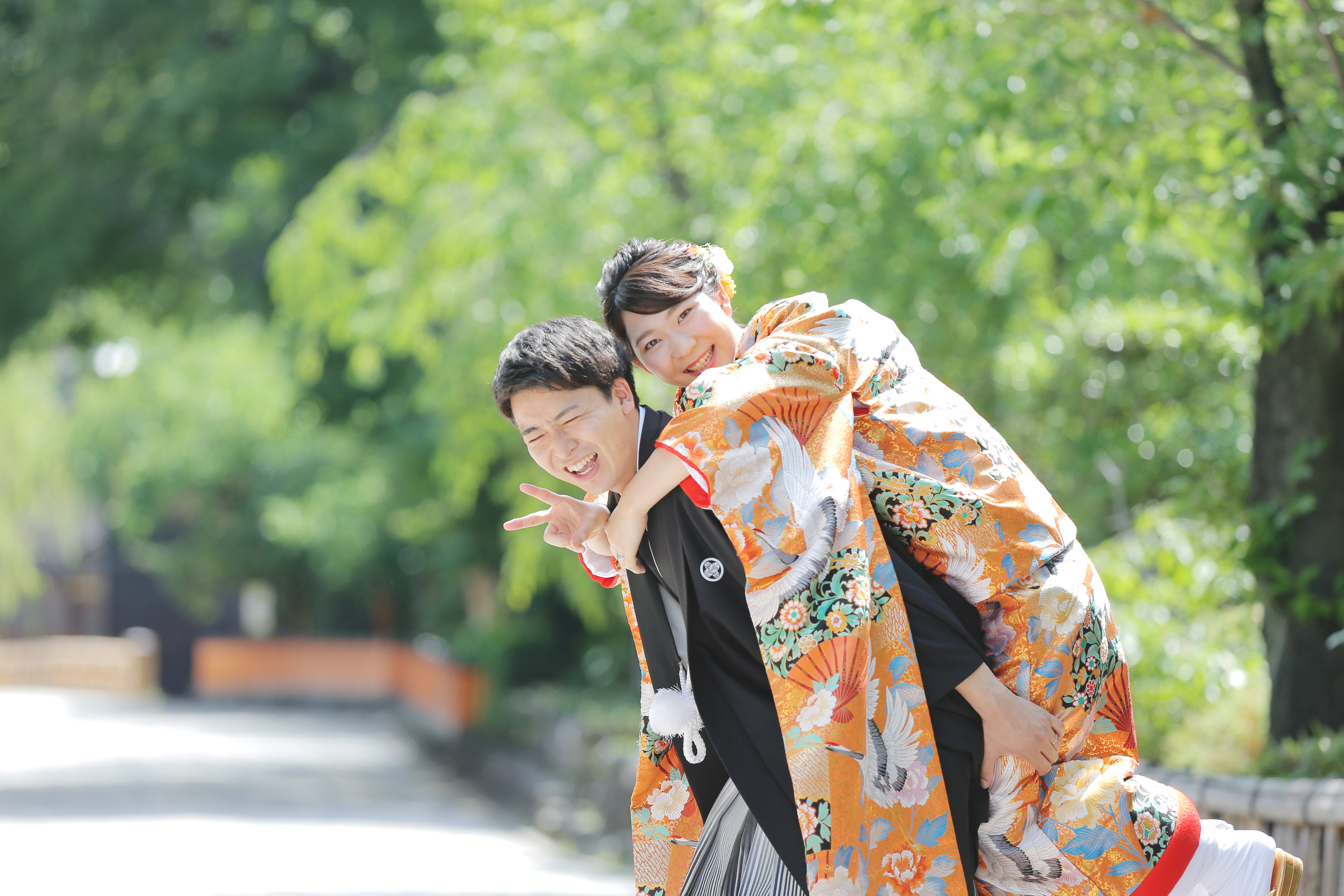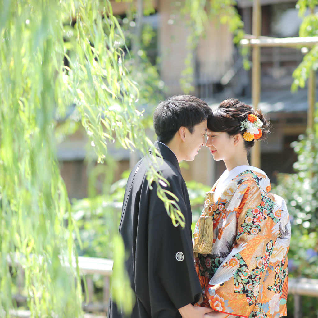 京都を代表する観光地での撮影です!桜が有名ですが、緑の季節の前撮りも、とってもおすすめです。