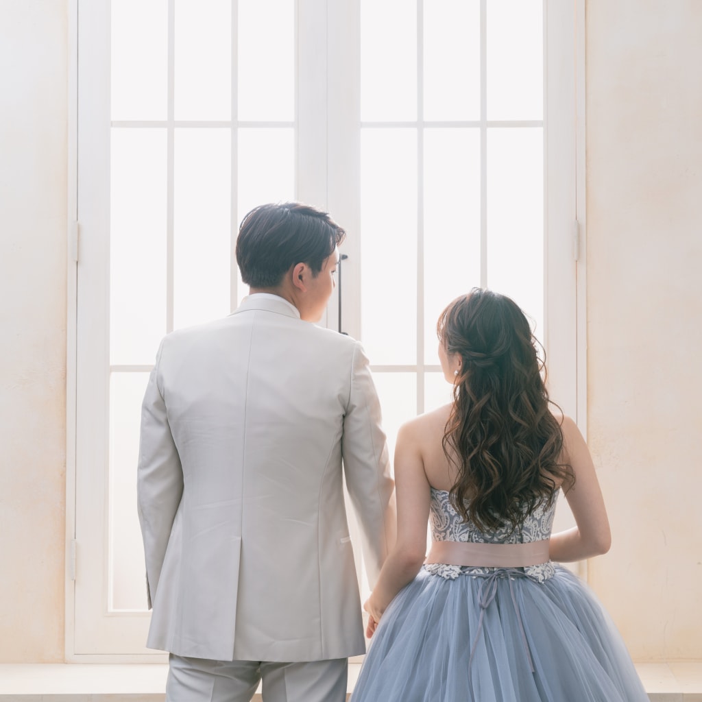 2着着てくださったお客様。まずはウェディングドレスで撮影をしました!