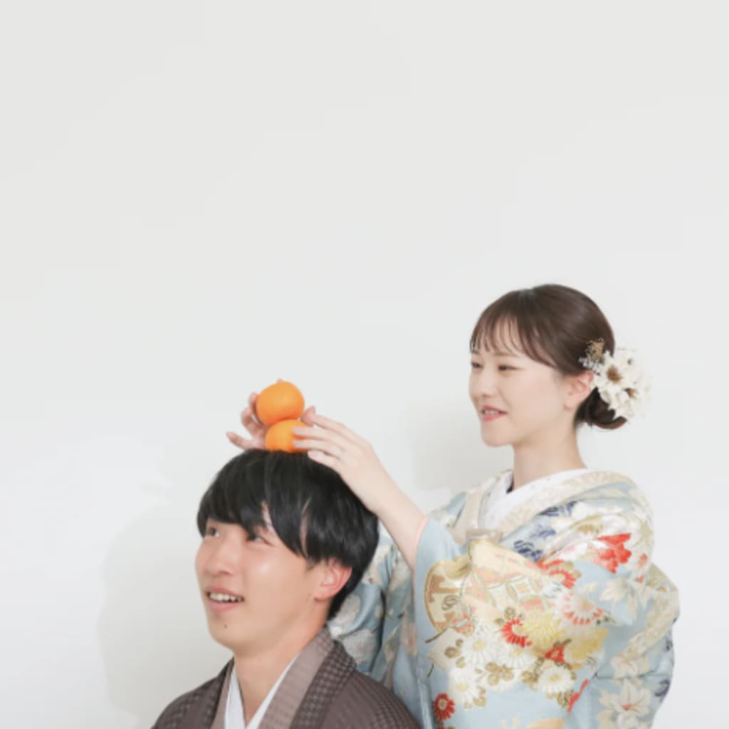 シンプルな背景×おふたりらしい小物🍊 | デコルテフォトグラフィー | 前撮り・フォトウェディング