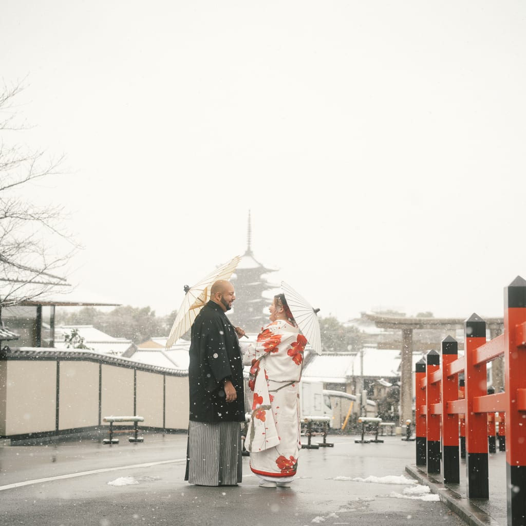 束の間の晴れ間に、和傘の小物を加えての一枚も。