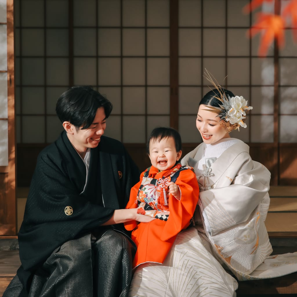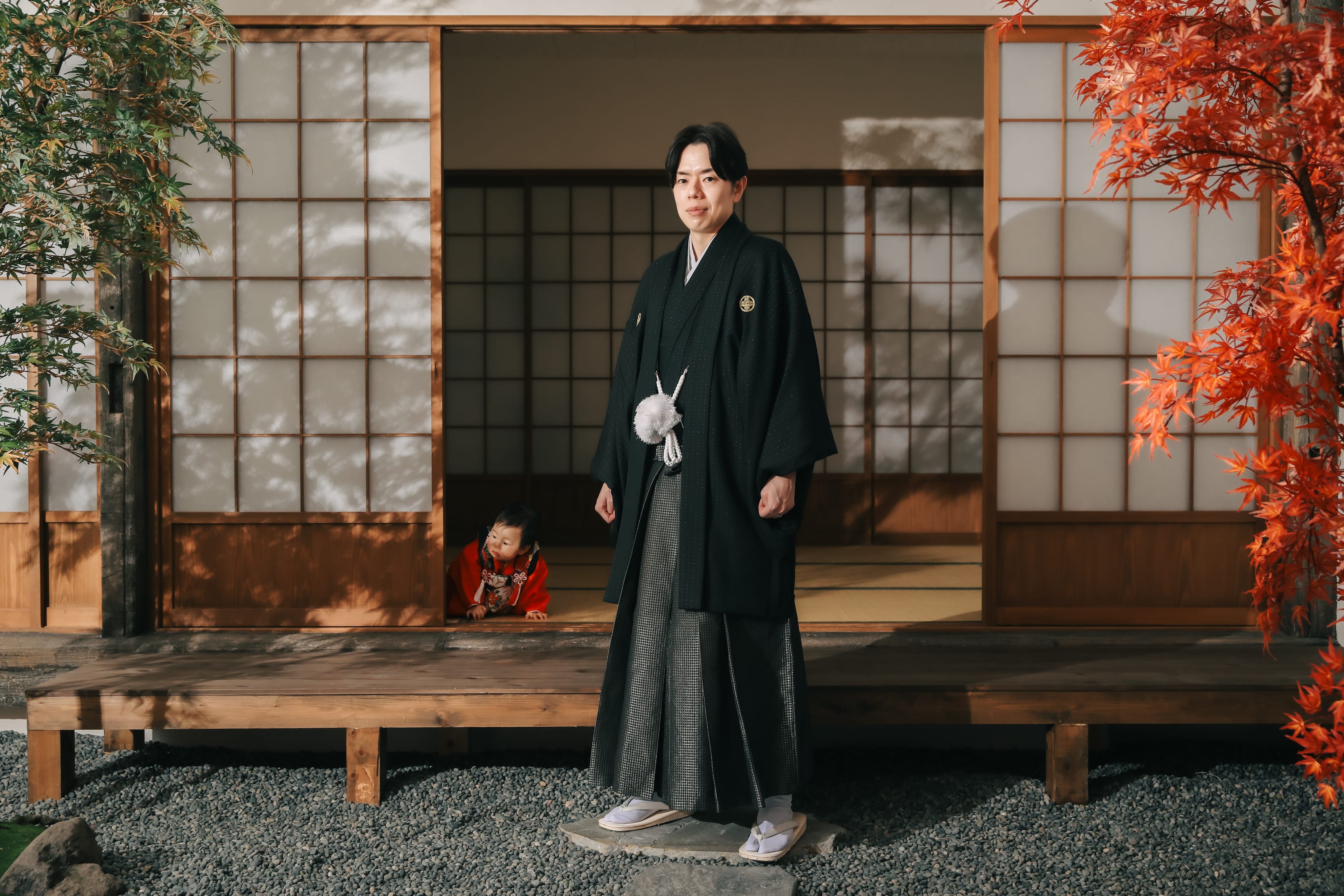 ご新郎様のかっこいいソロ撮影!かと思いきや、障子の奥から可愛いゲストの登場でした♡