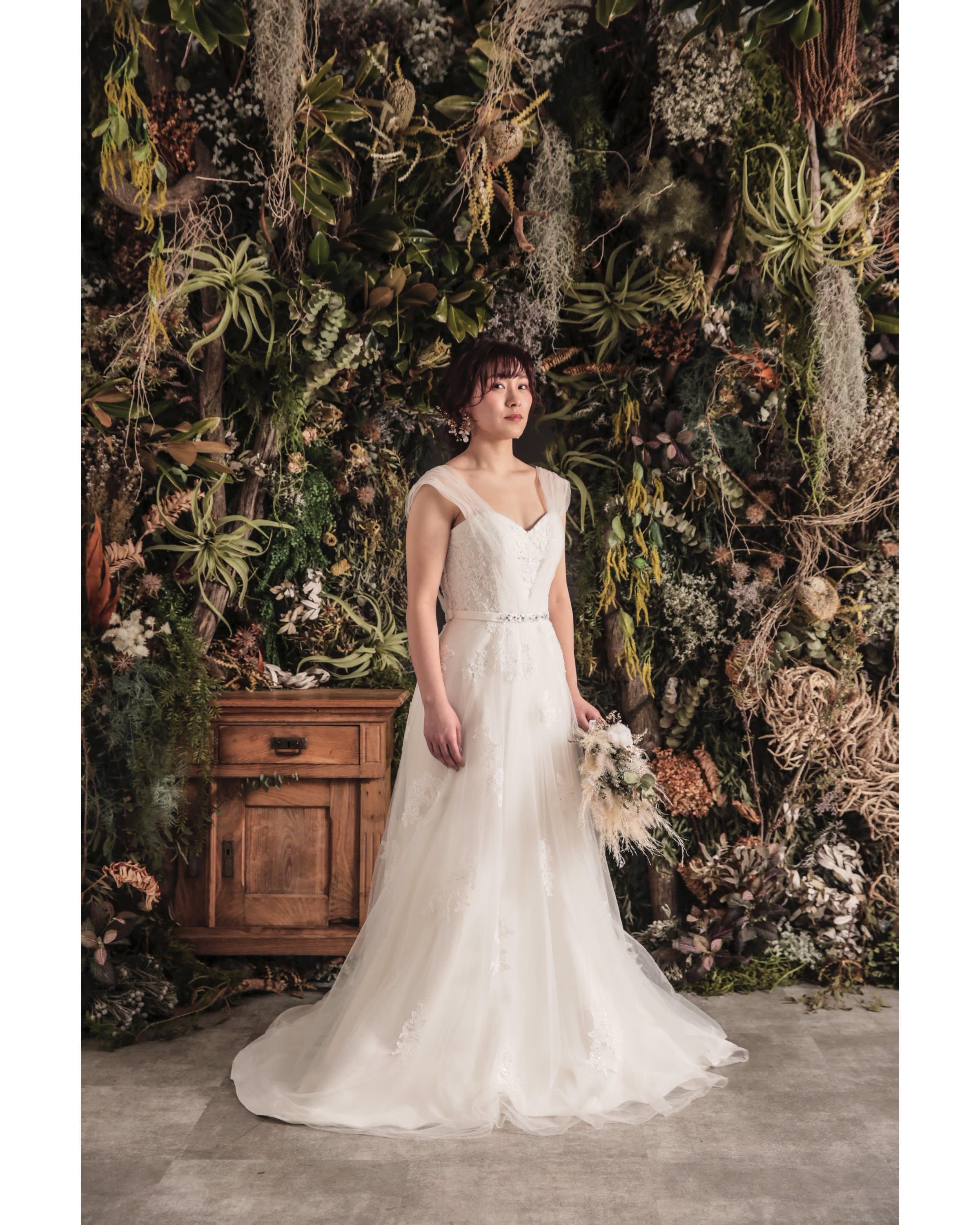 一面お花の壁が登場!新宿店ハウススタジオで撮影する洋装ウェディングフォトプラン