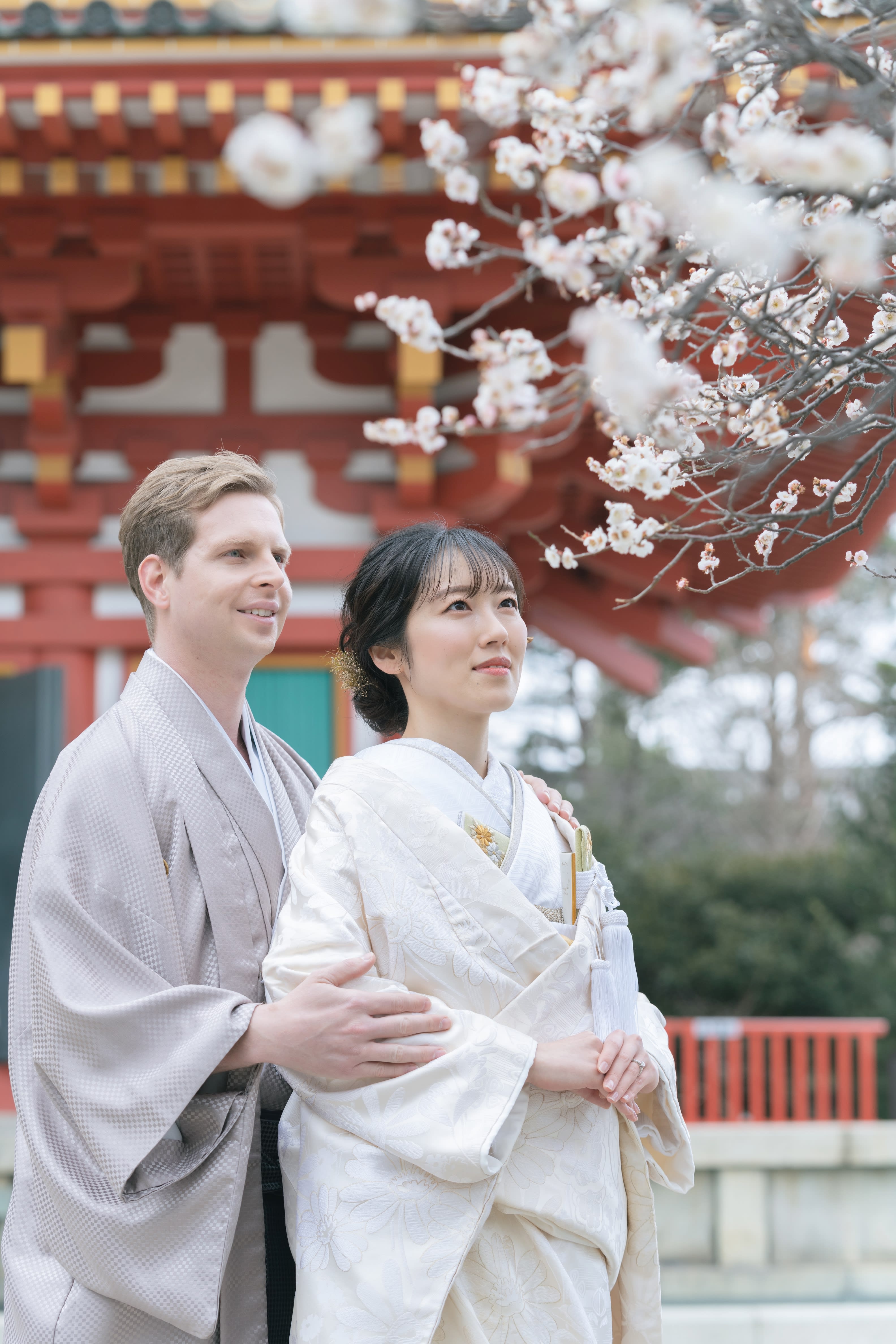 五重塔の前で、ぎゅっと寄り添っていただきました!ナイススマイルです!