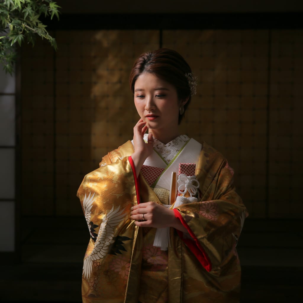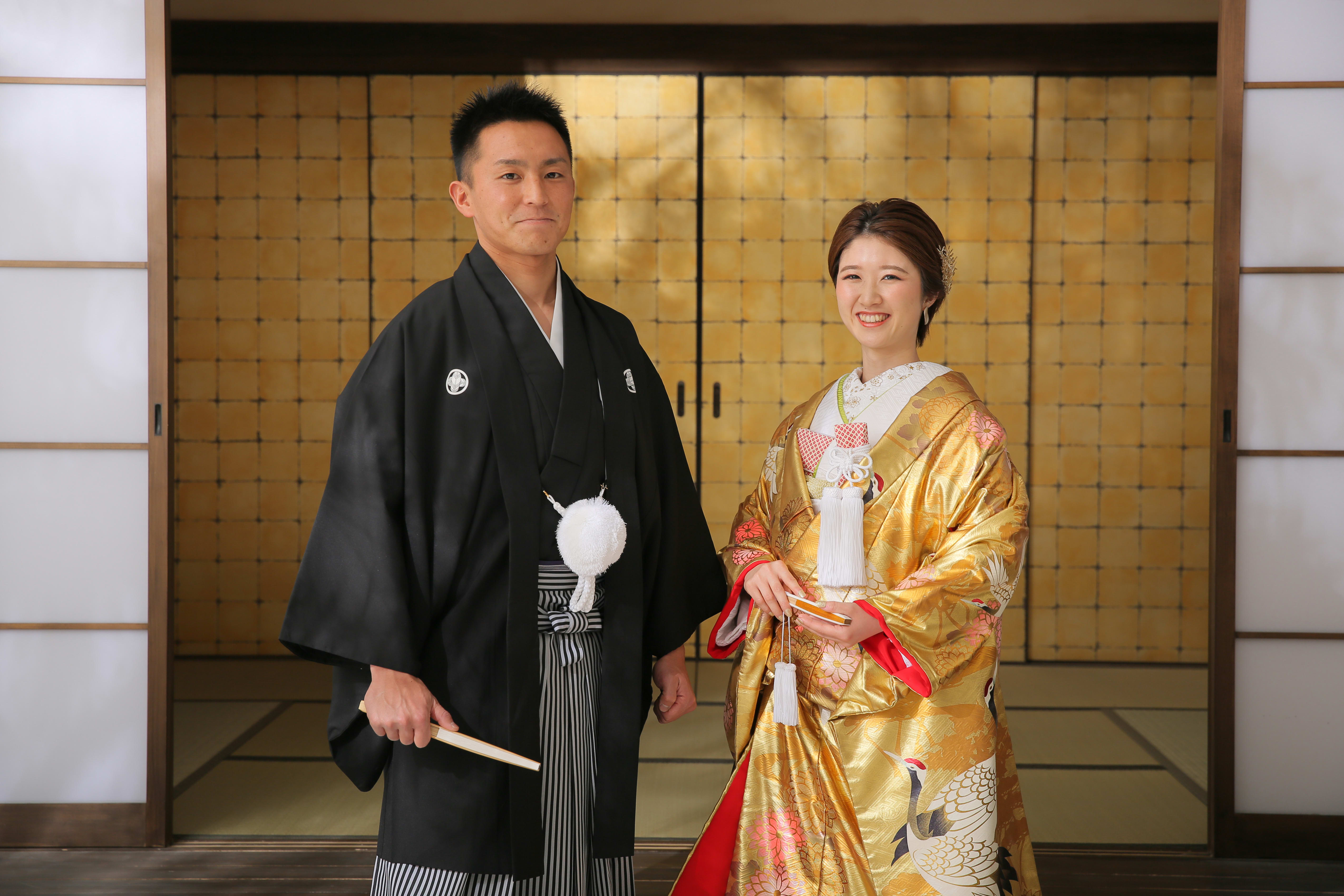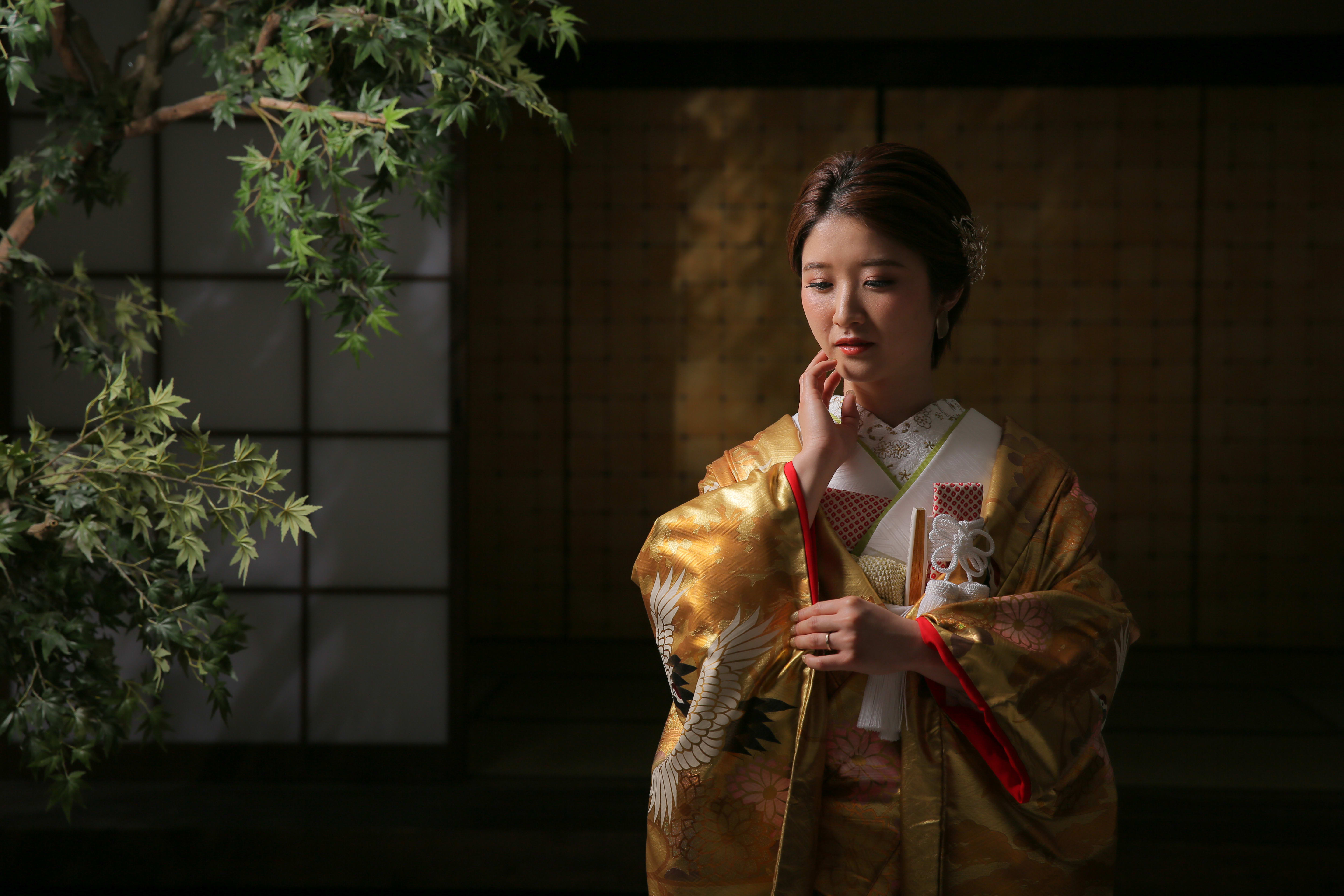 立川店の本格的な茶室スタジオで撮影する、和装の結婚写真