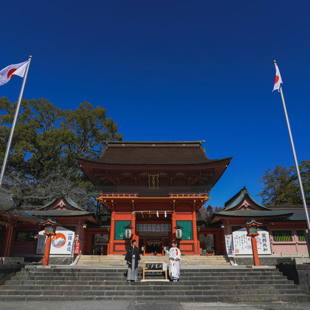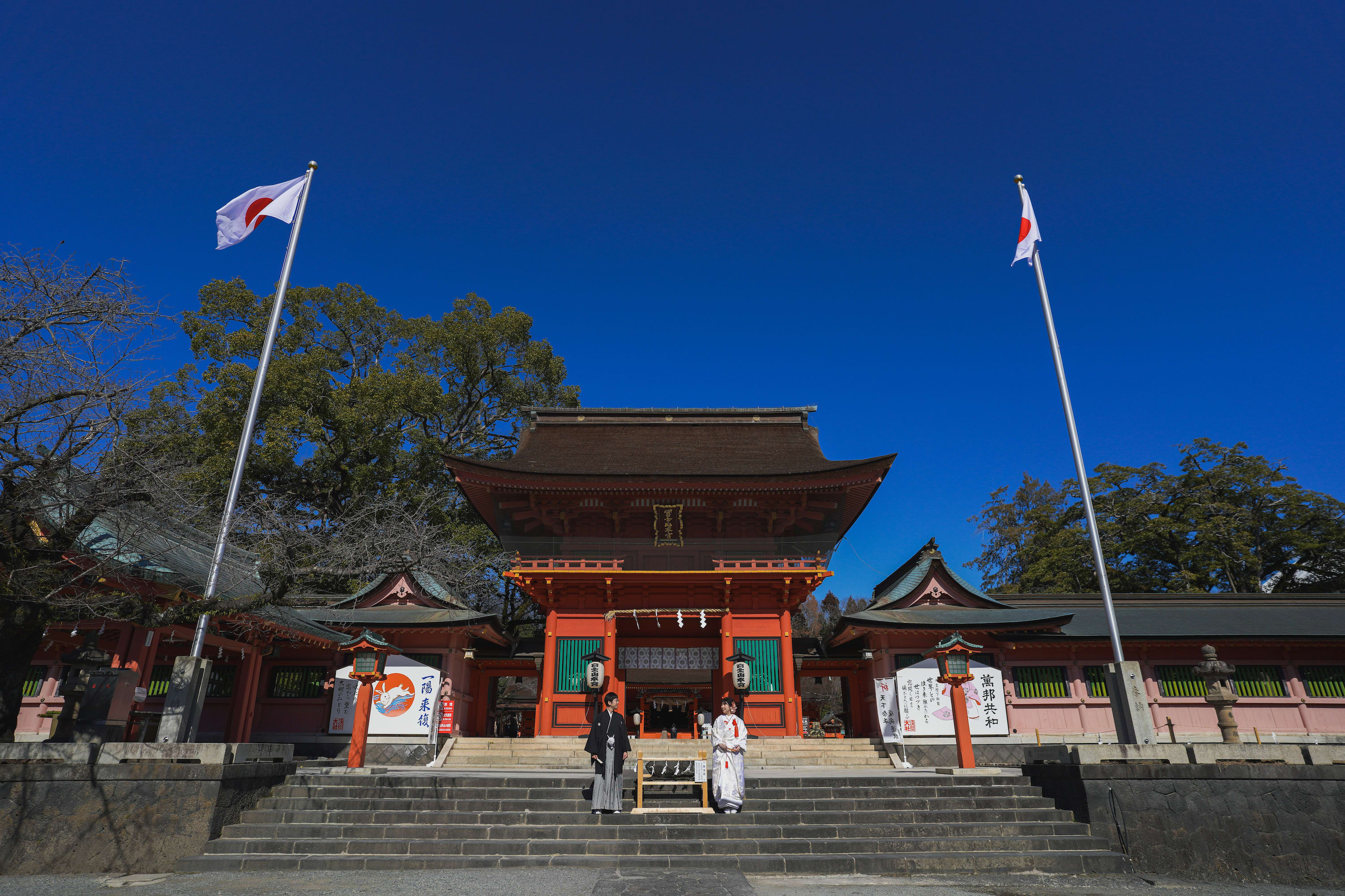 良い天気。この日の撮り初めのカット。 綺麗な青空と富士山本宮浅間大社。02