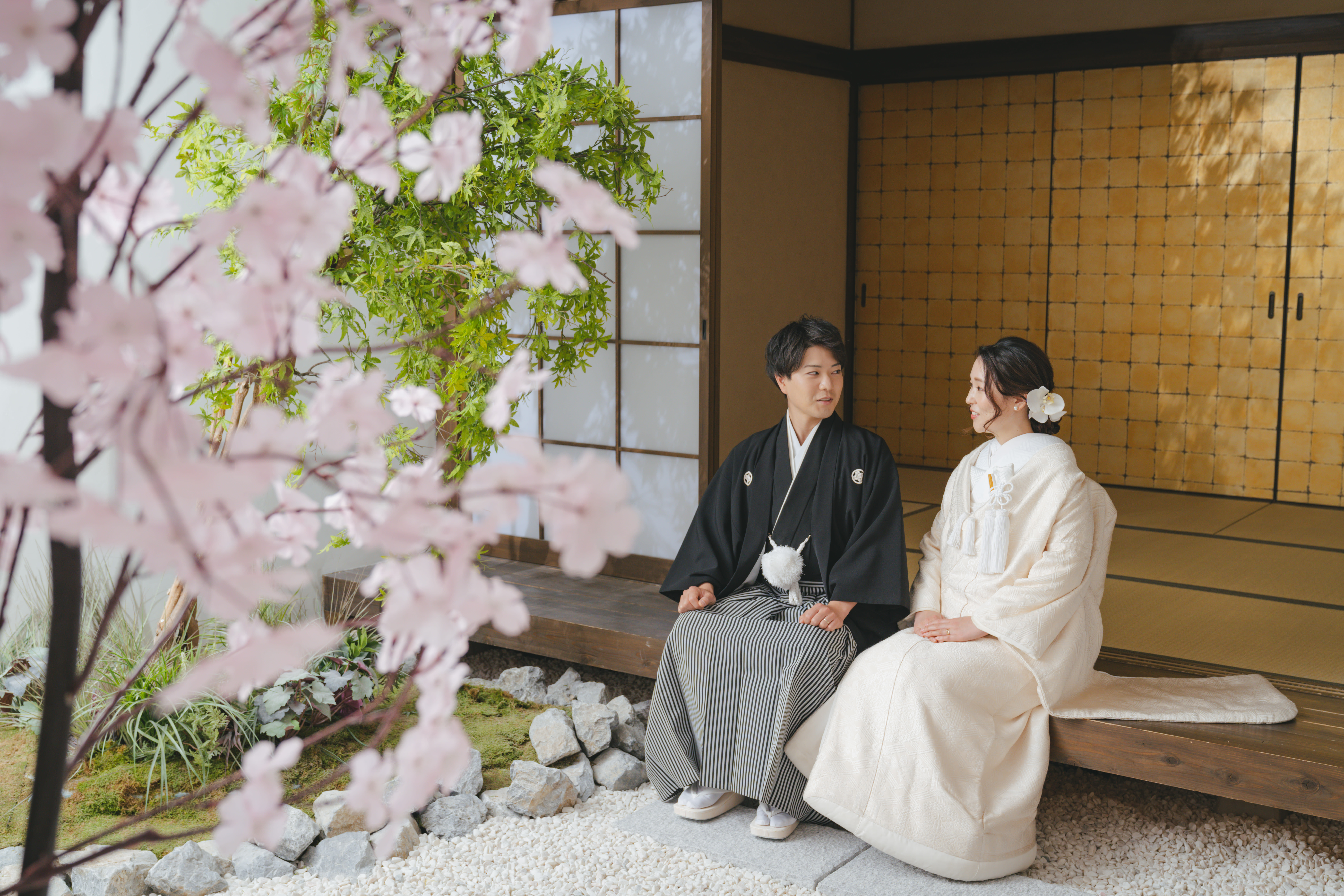 椿のお花のある背景から撮影しました!白無垢との相性バッチリです!