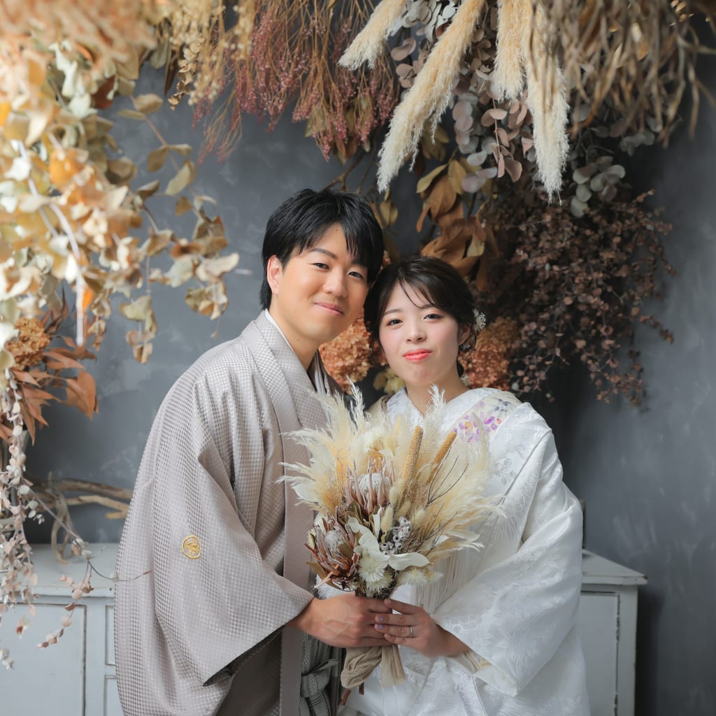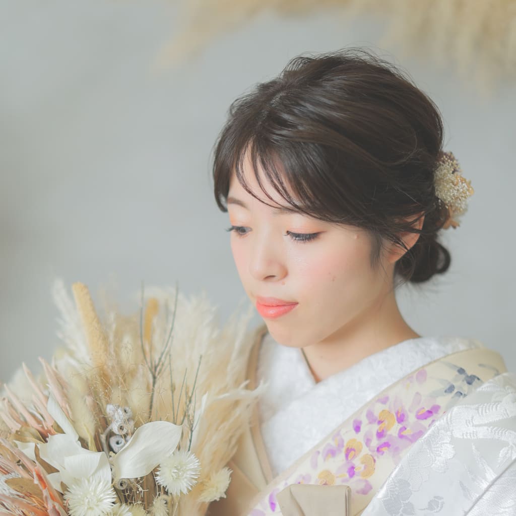 白無垢と小物の淡い紫色のコーデがとても綺麗で、ご新婦様の雰囲気をより引き立ててました。