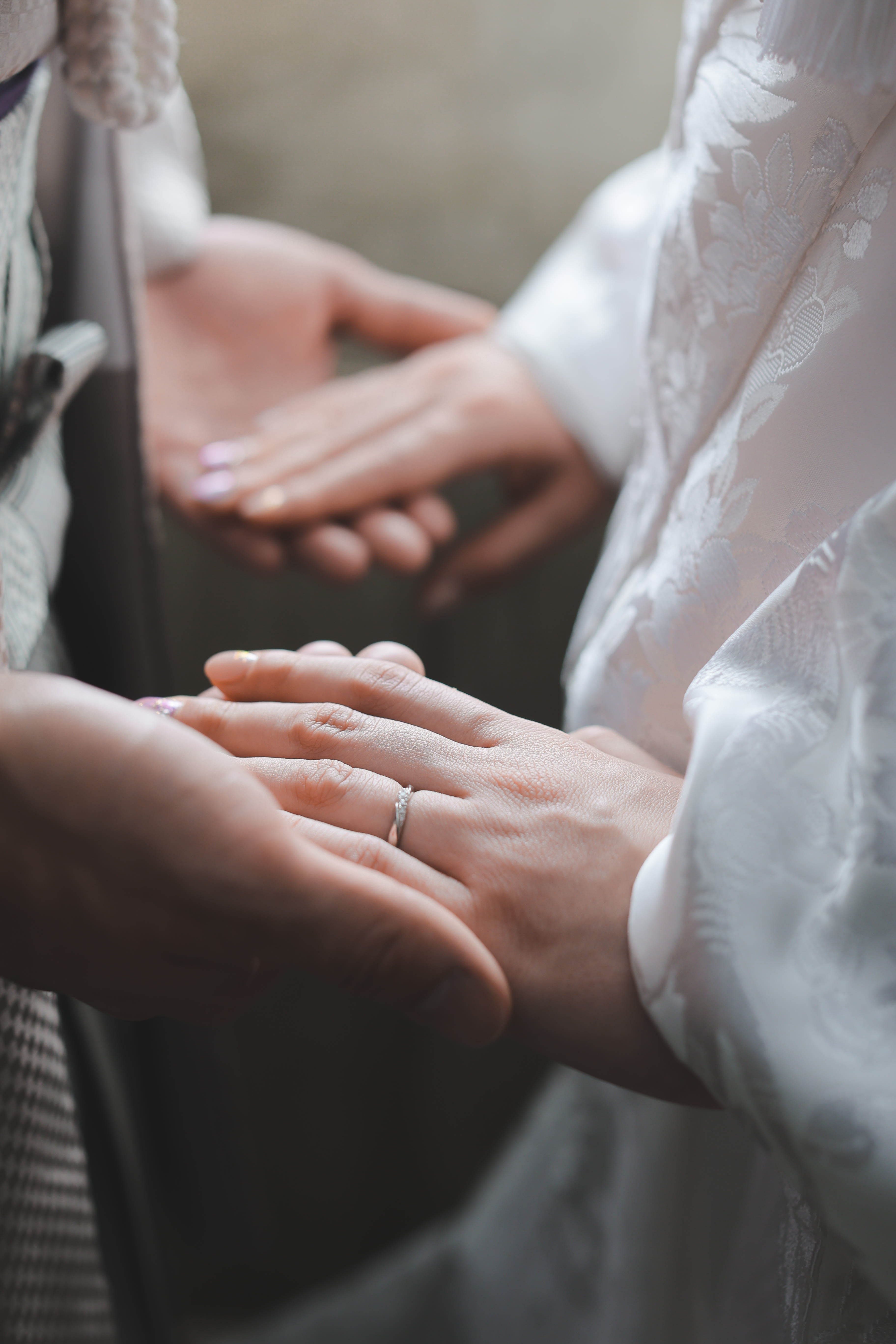 ご新婦様の指輪にピントを合わせて奥行き感を出しました。
