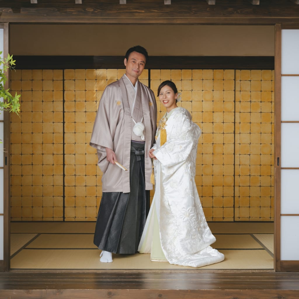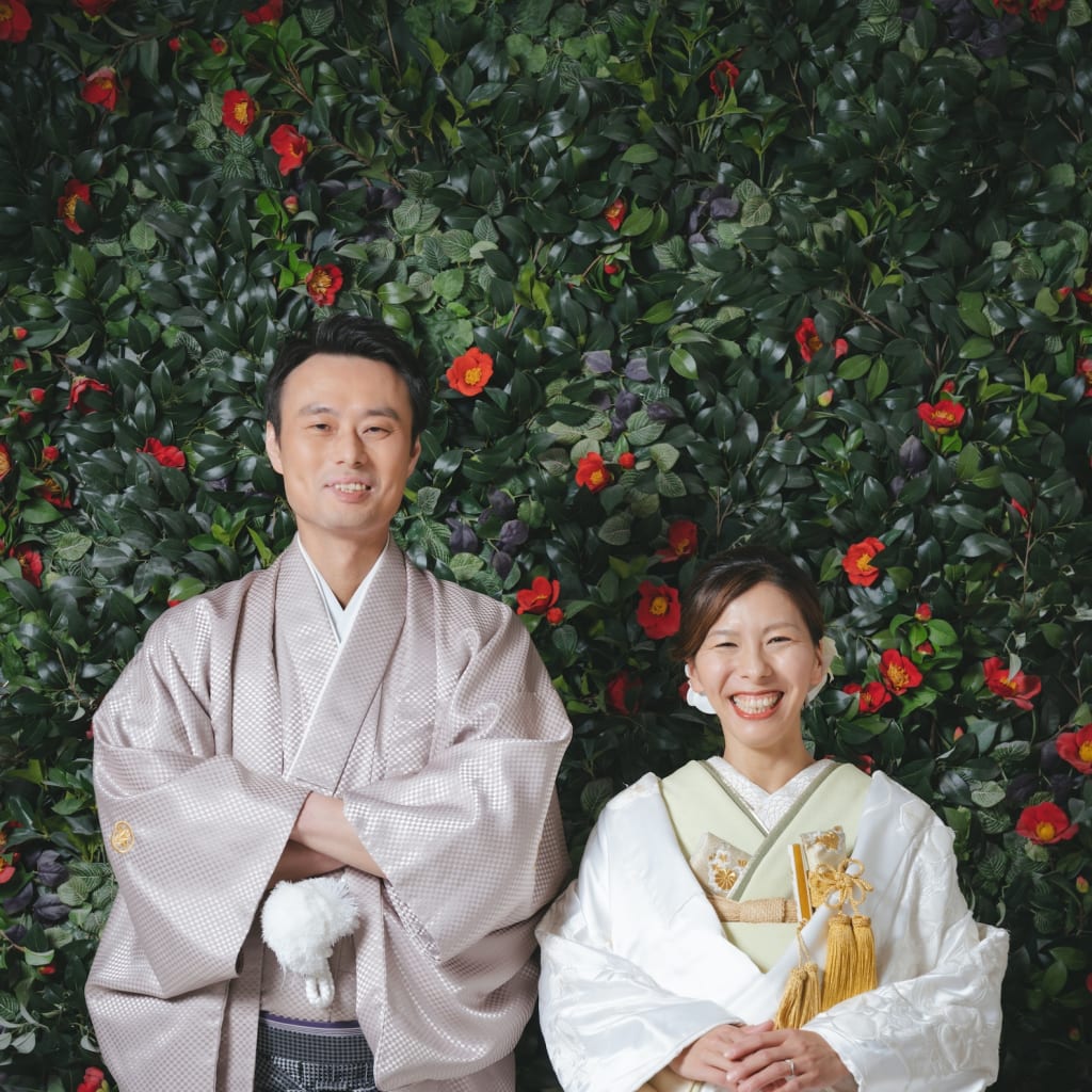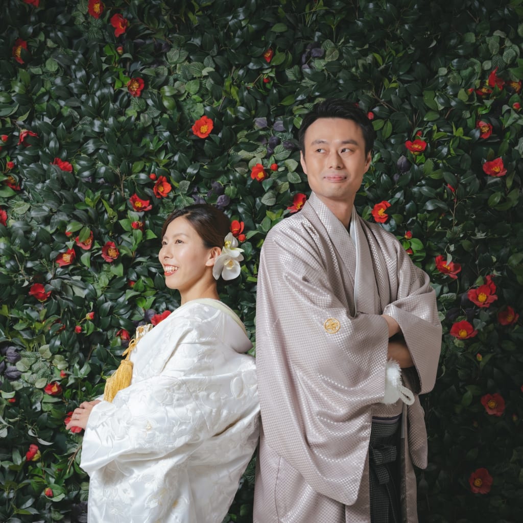 ご新婦様のソロショットは藤のお花の前で!白無垢との相性バッチリです!