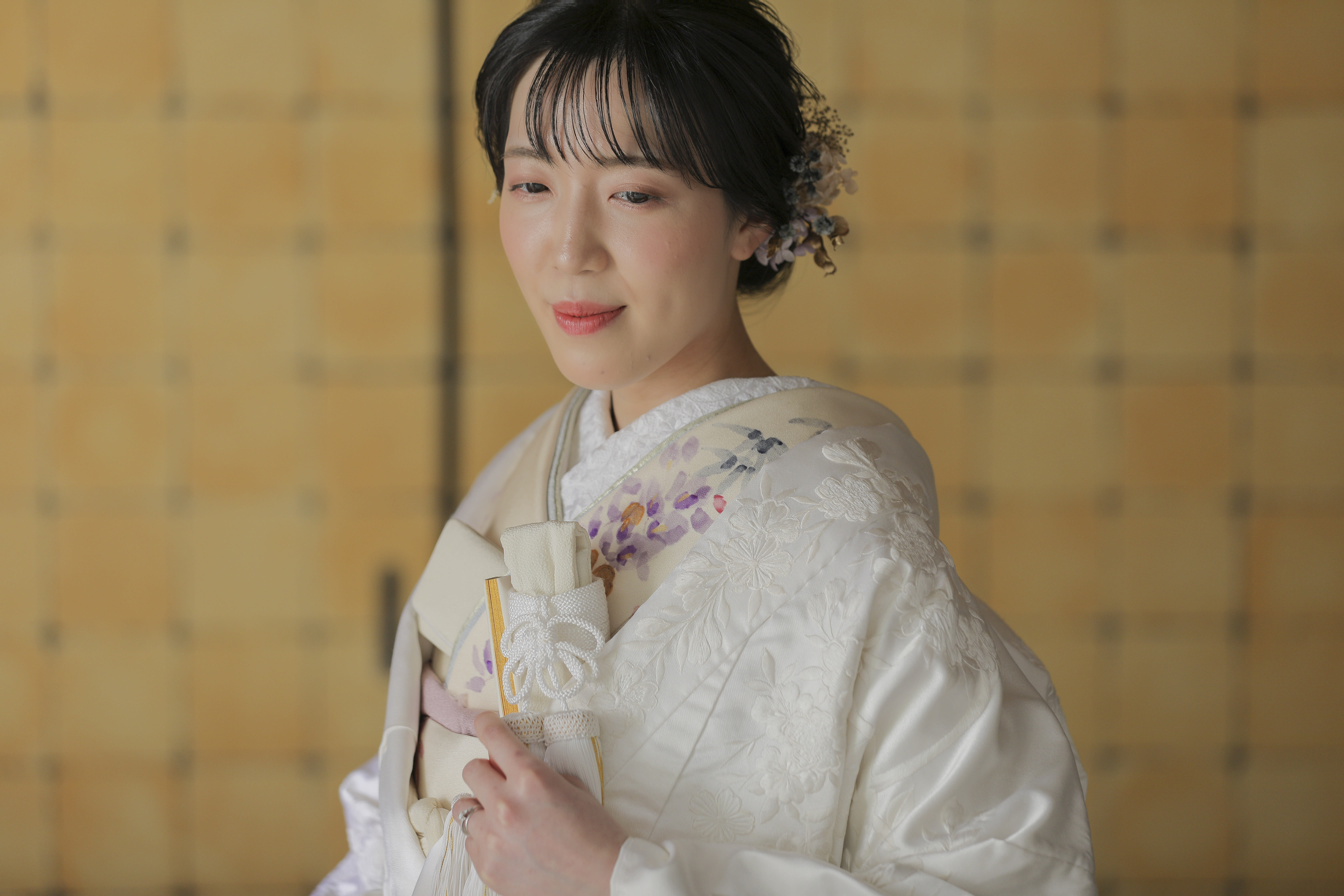 白無垢に柄掛下のコーディネートが素敵です! しっとりとした雰囲気から撮影スタート!