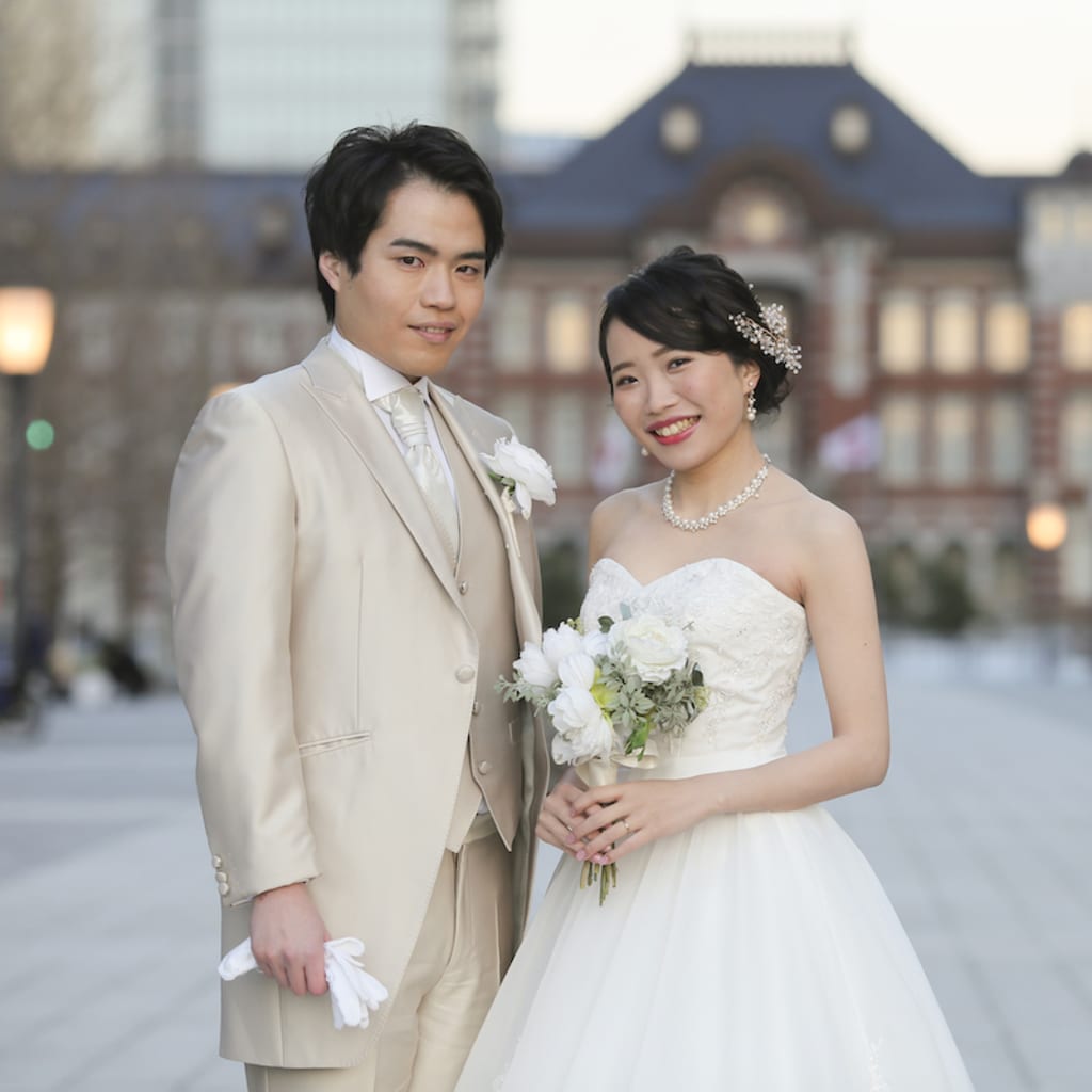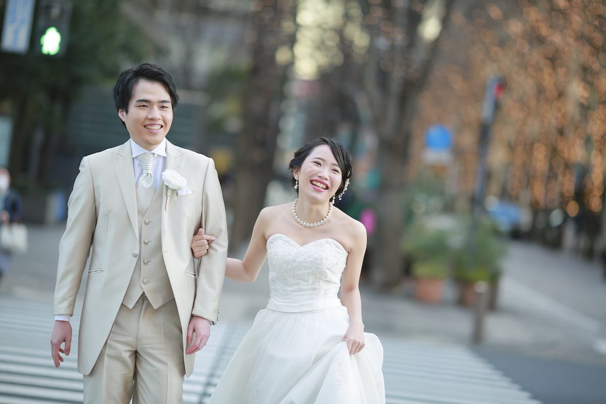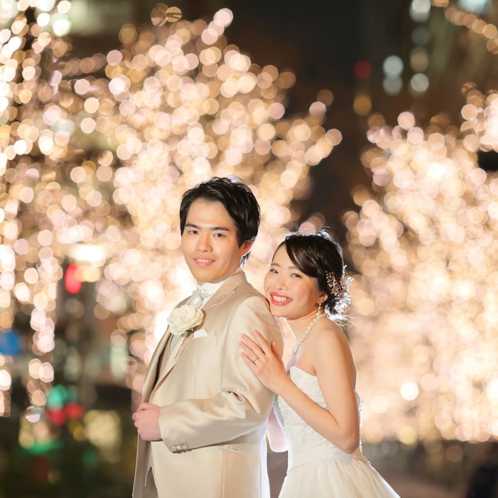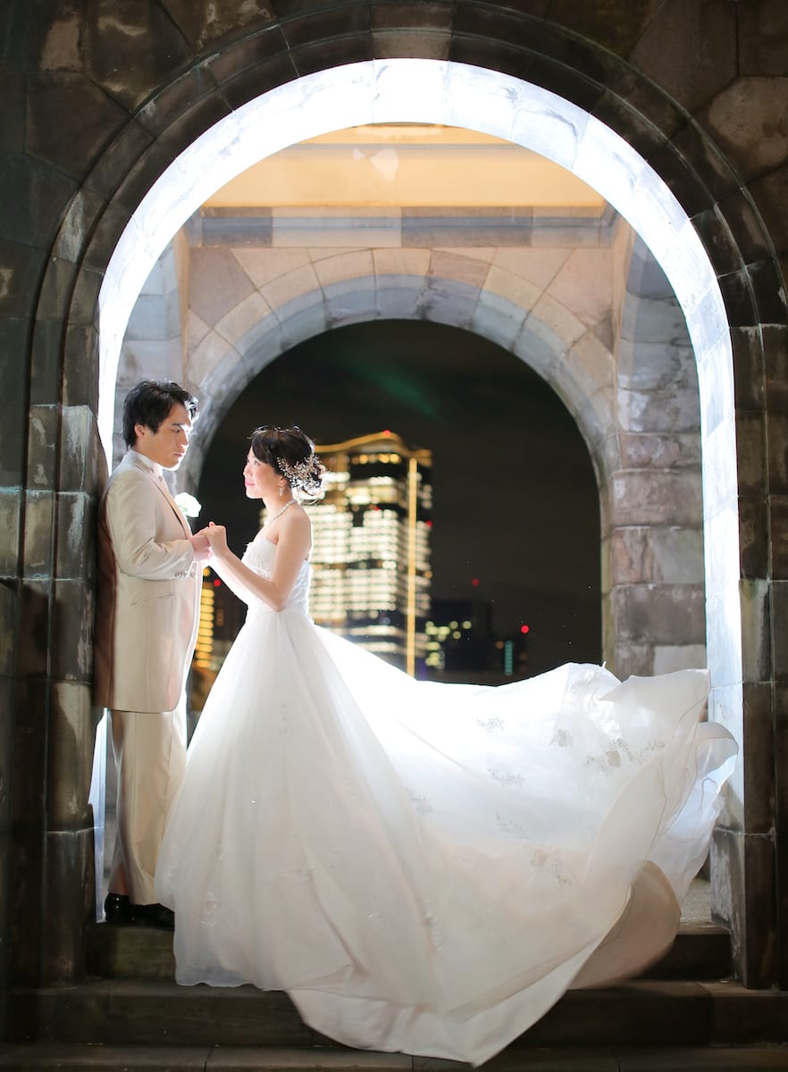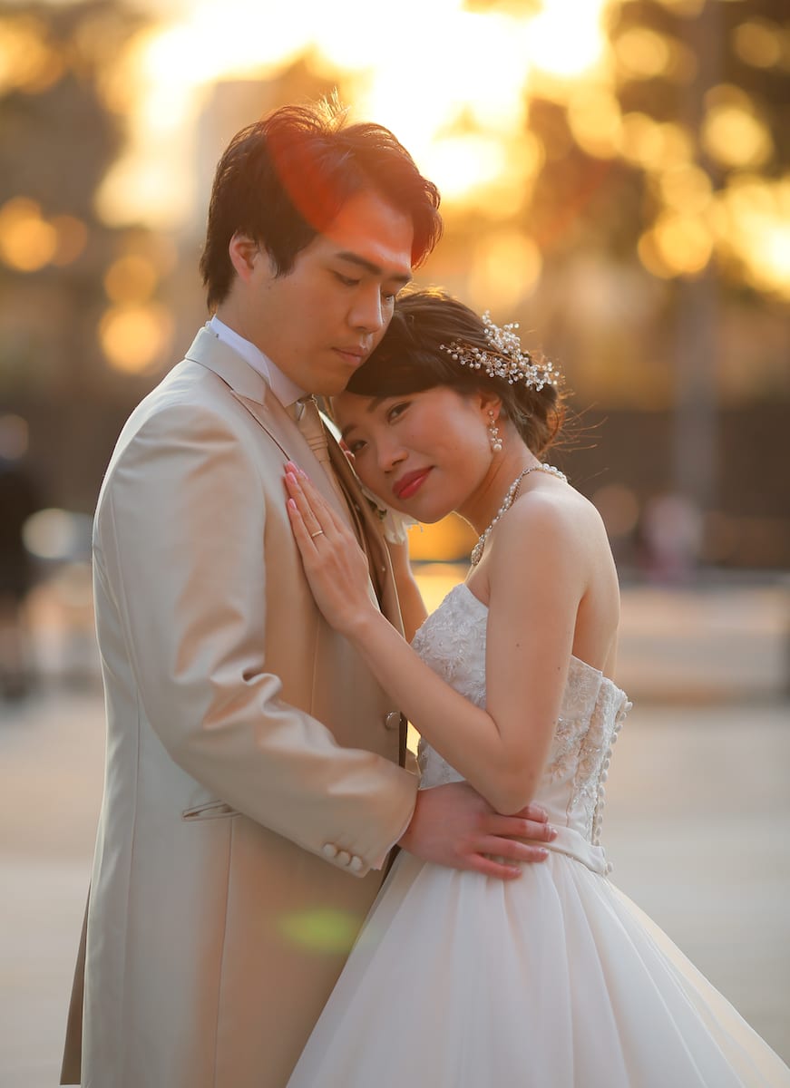 夕日のオレンジ色がドラマチックです。シーンに合わせてお二人の表情もしっとりと。