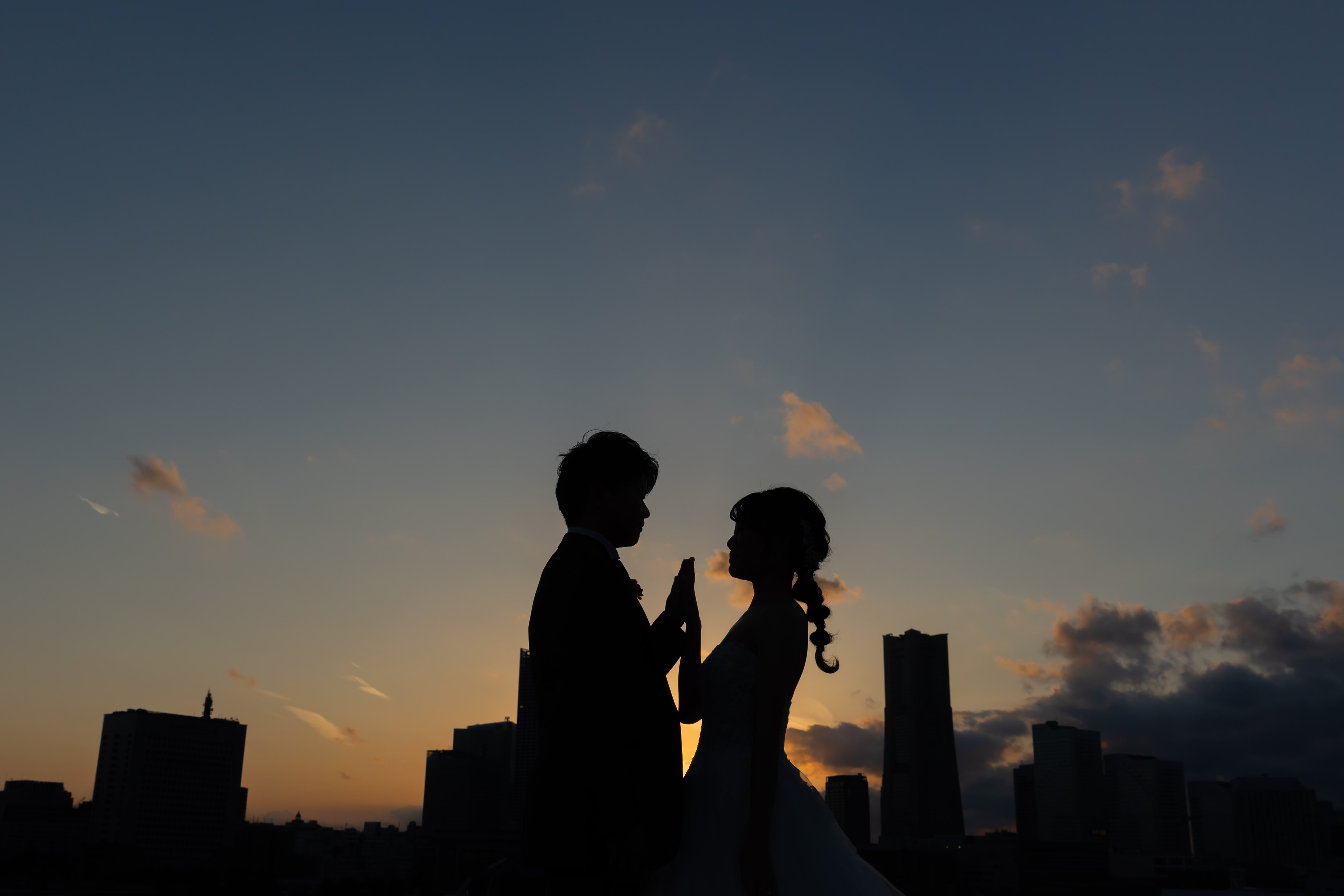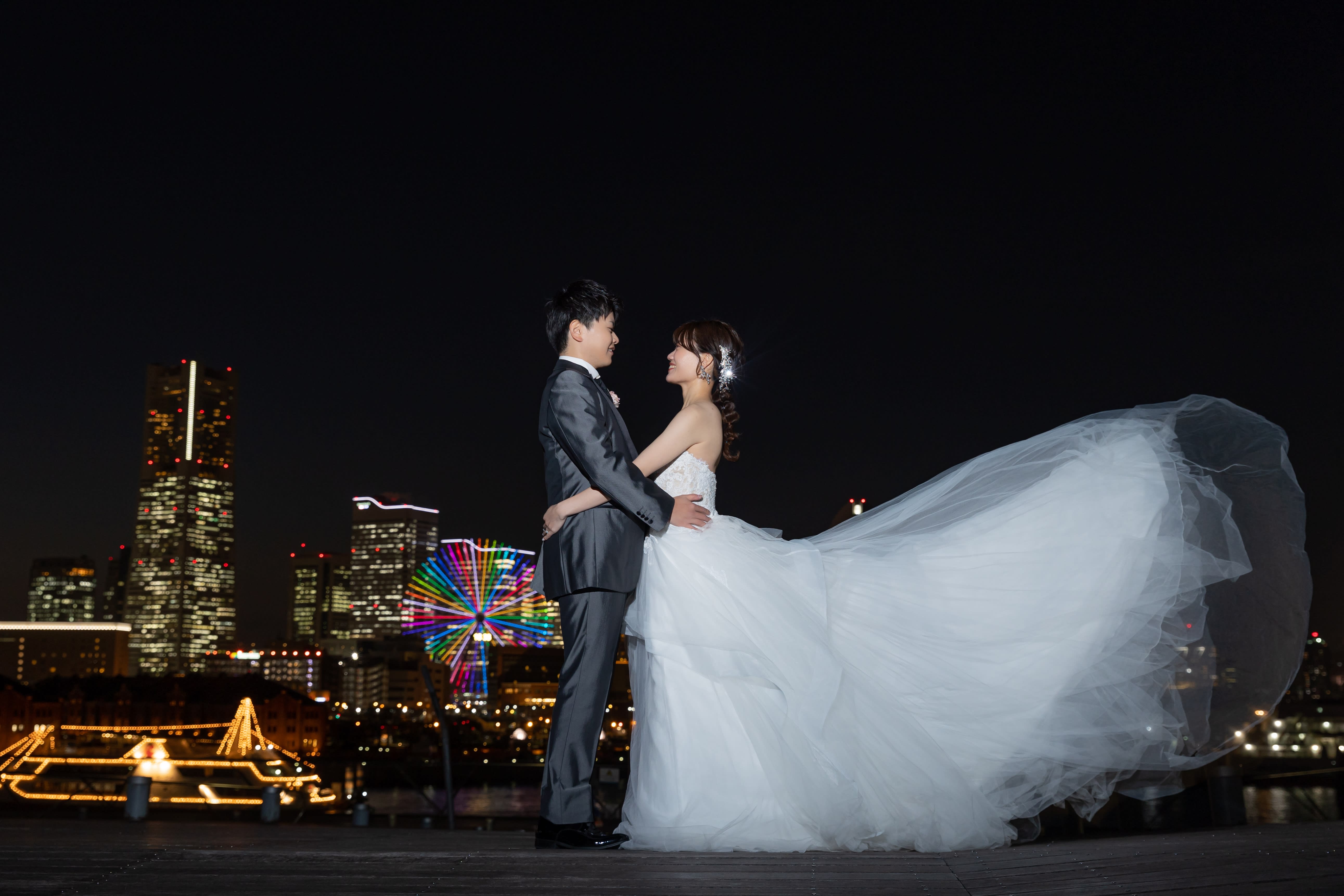 夕景と夜景の広がる大桟橋と和装のセット | デコルテフォトグラフィー | 前撮り・フォトウェディング