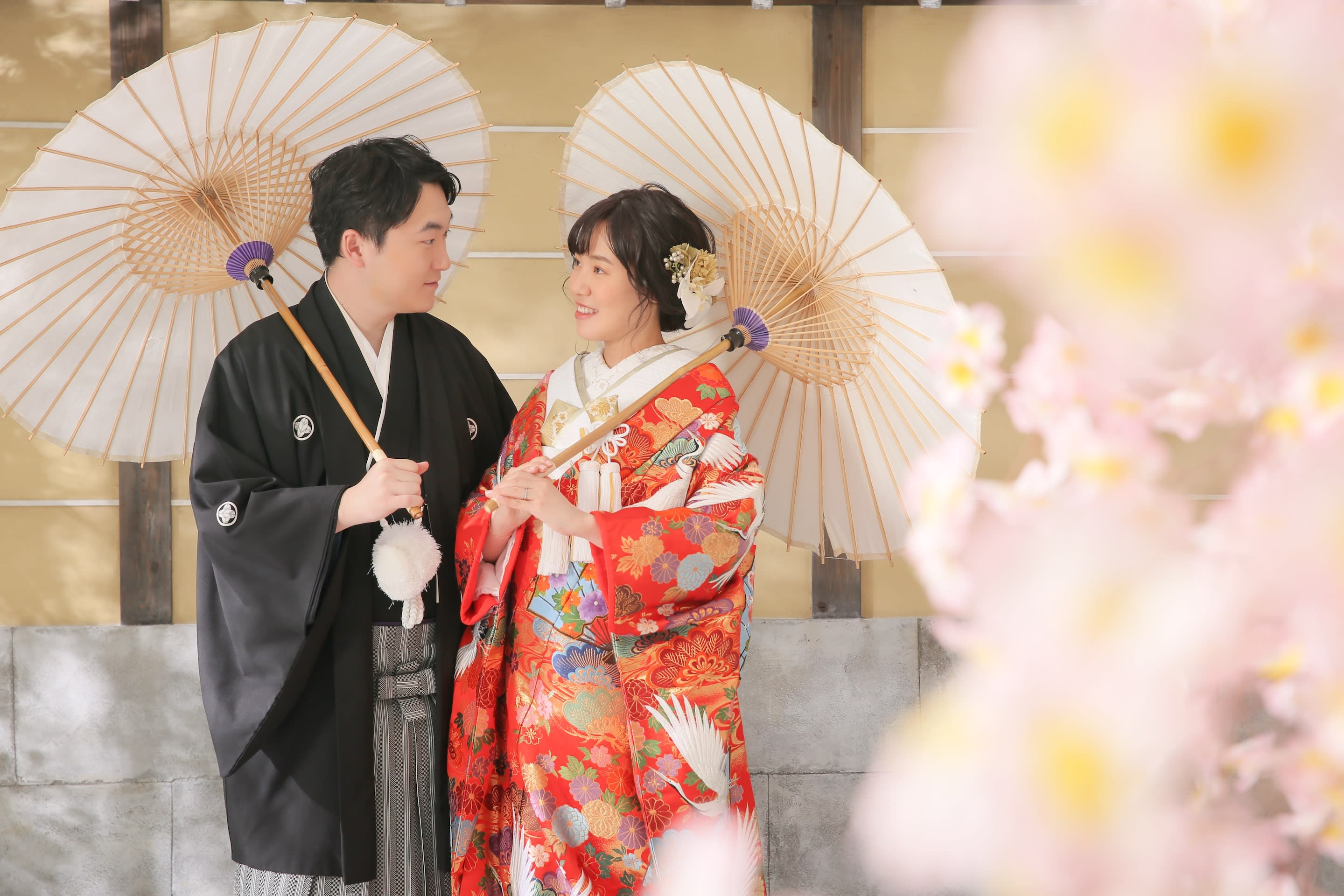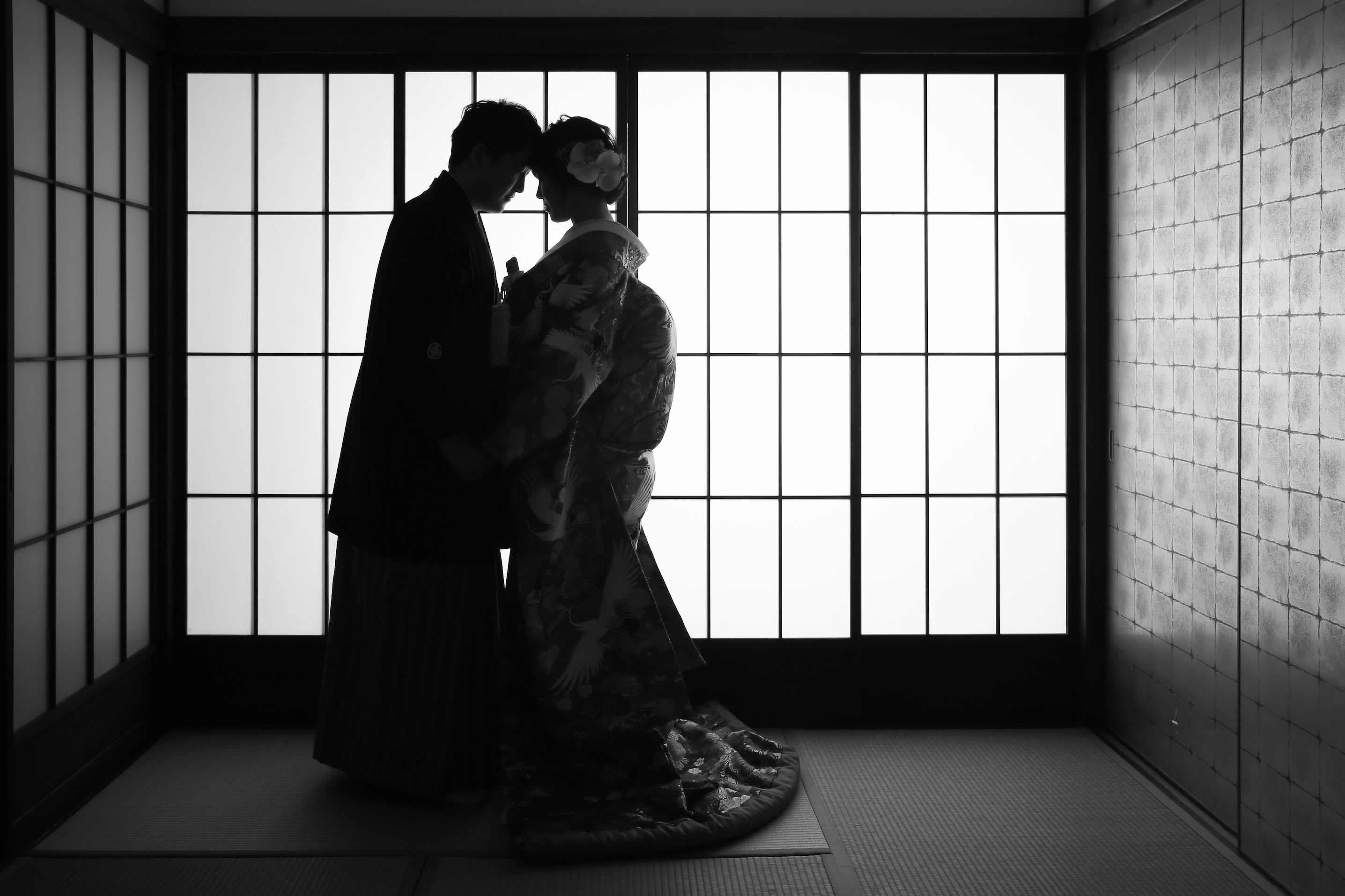 新宿店の本格的な茶室スタジオで撮影する、和装の結婚写真