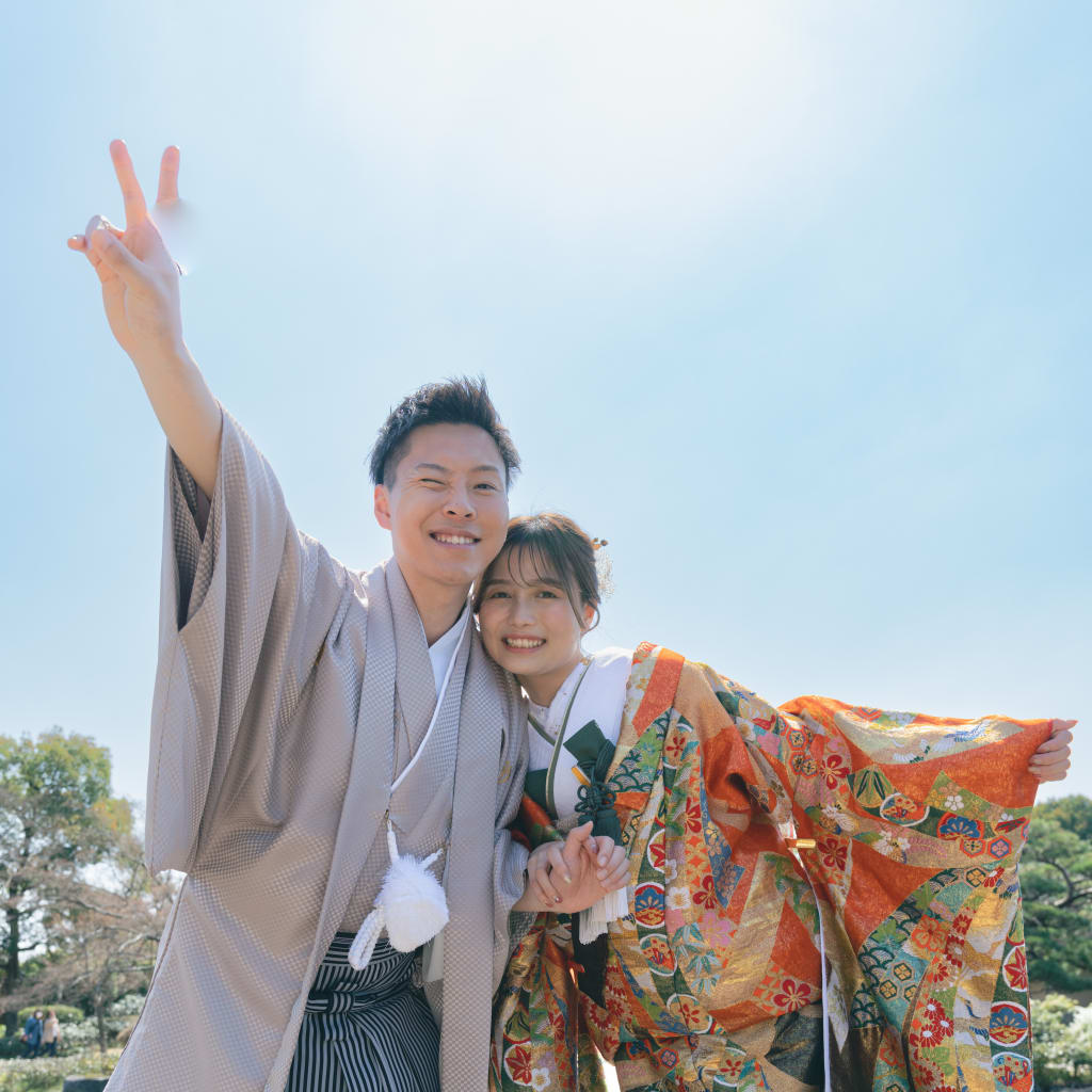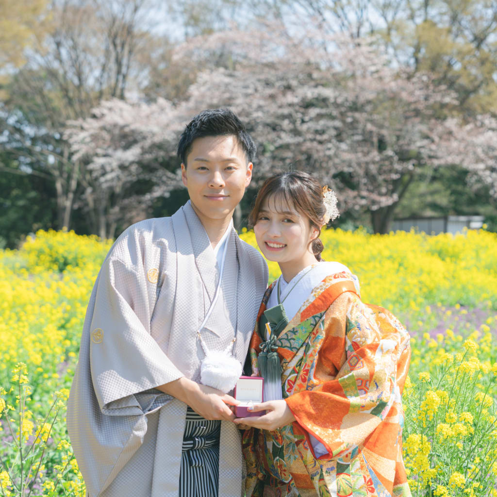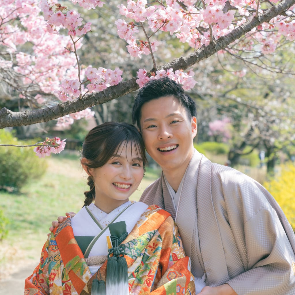 お二人の笑顔の横顔を残しました!後の桜もキラキラしてとても可愛い1枚です!