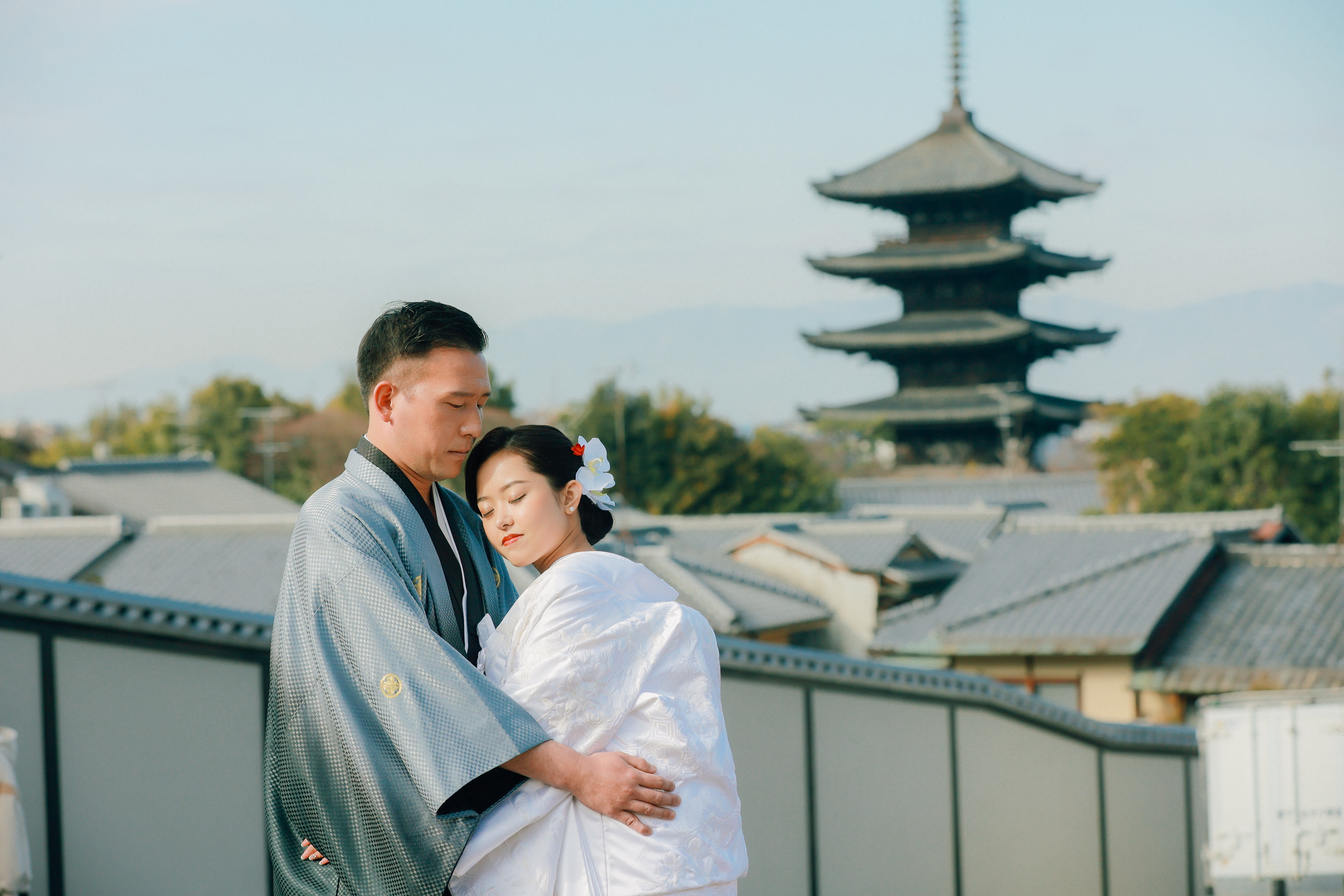 八坂の塔を真ん中に手を繋いだショット