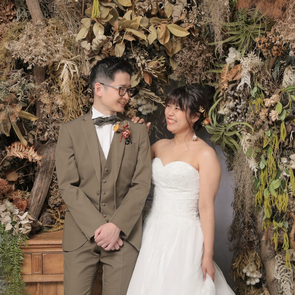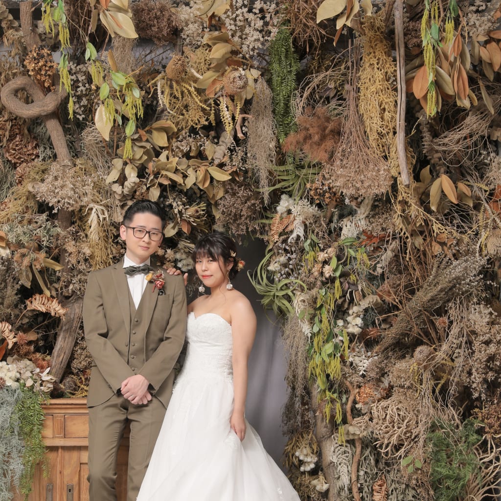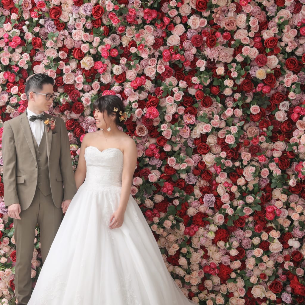一面お花の壁が登場!新宿店ハウススタジオで撮影する洋装ウェディングフォトプラン