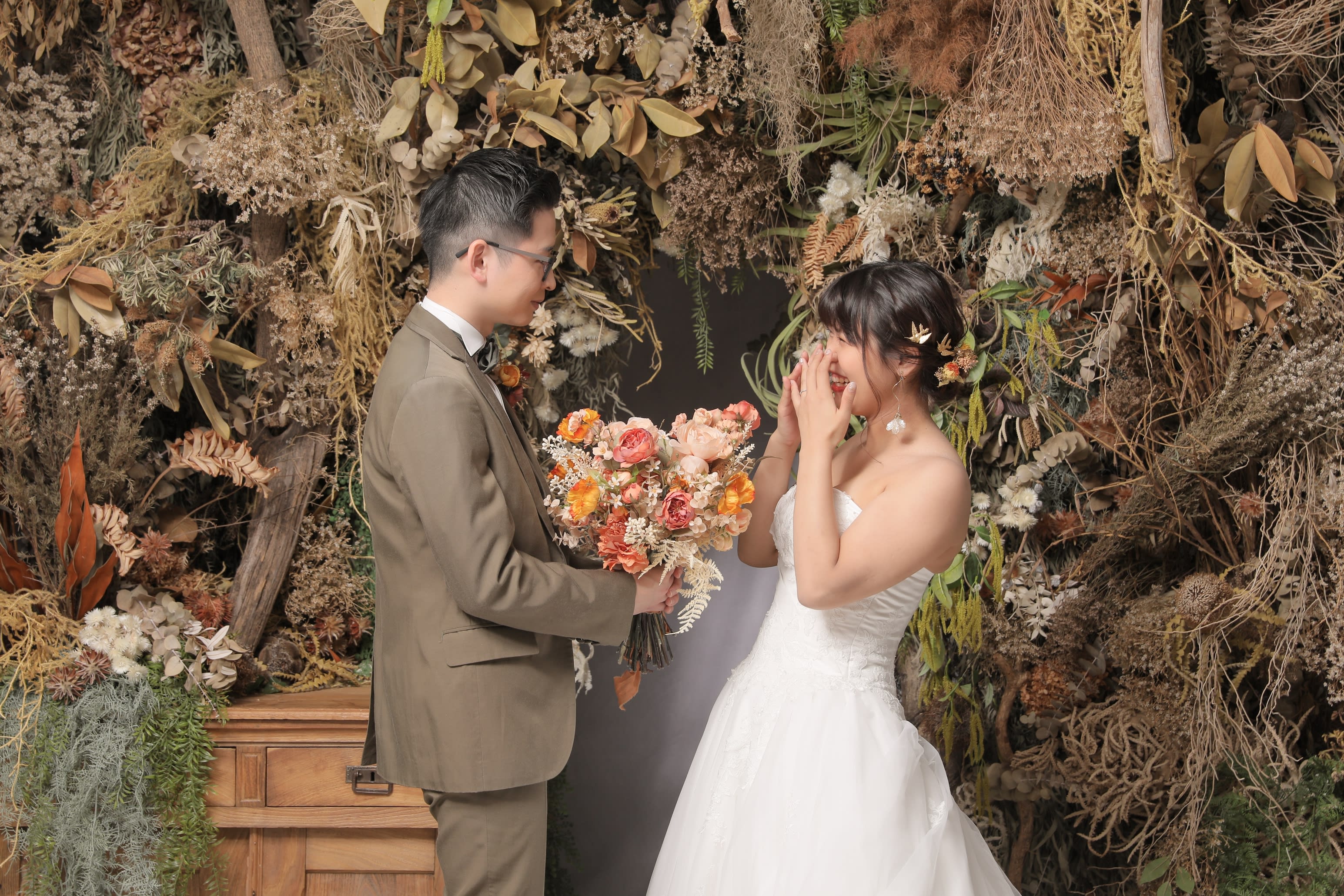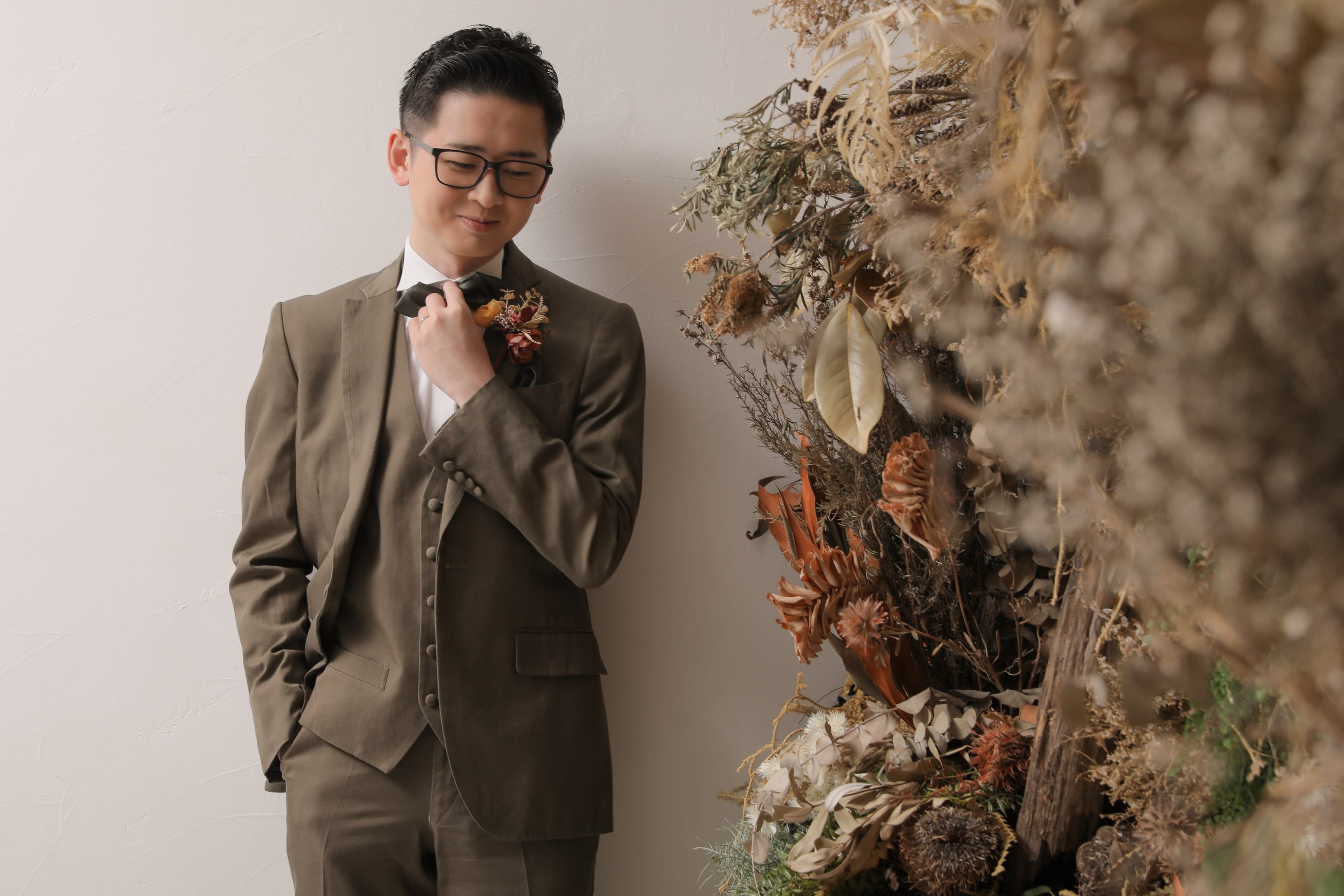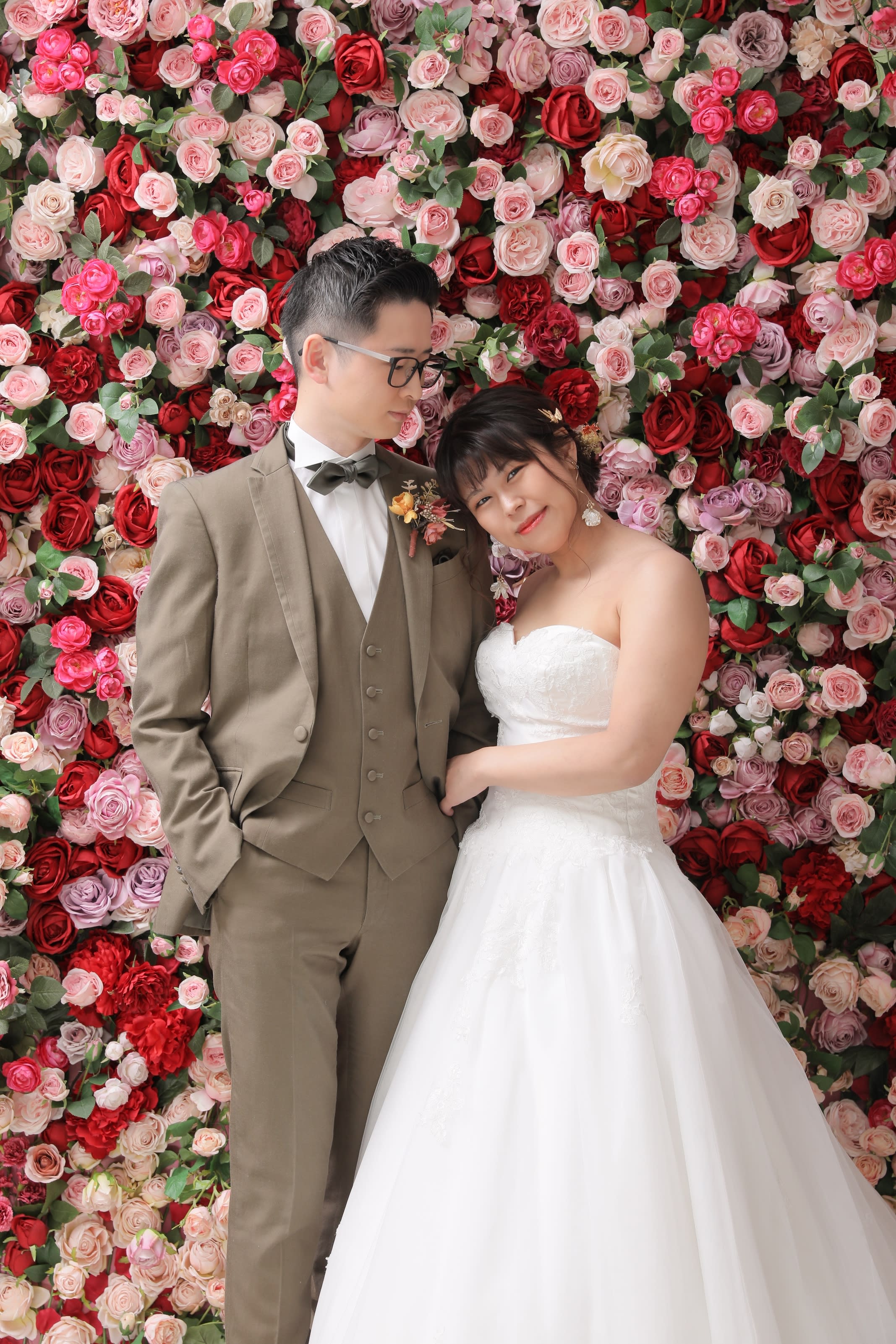 一面お花の壁が登場!新宿店ハウススタジオで撮影する洋装ウェディングフォトプラン