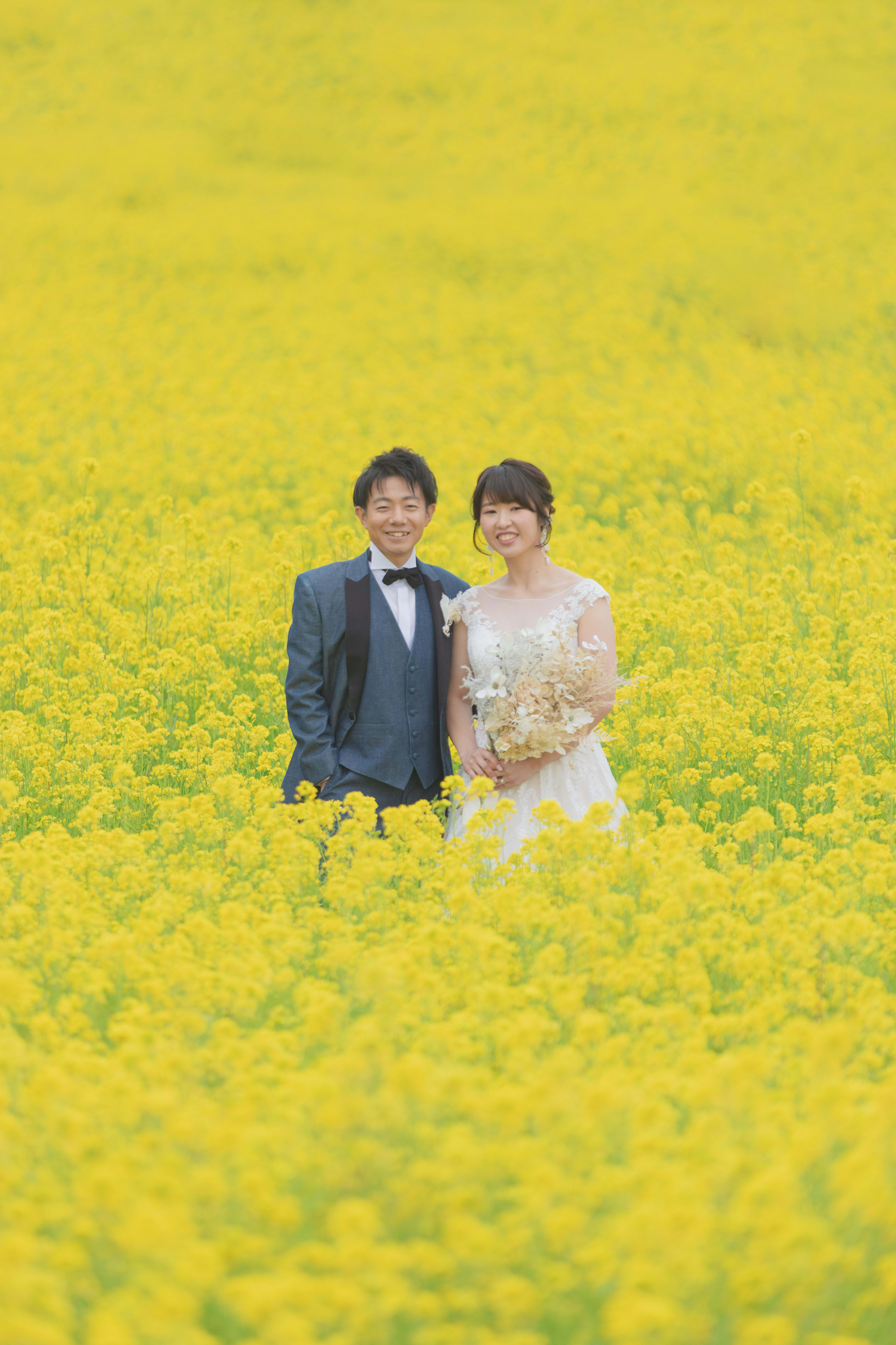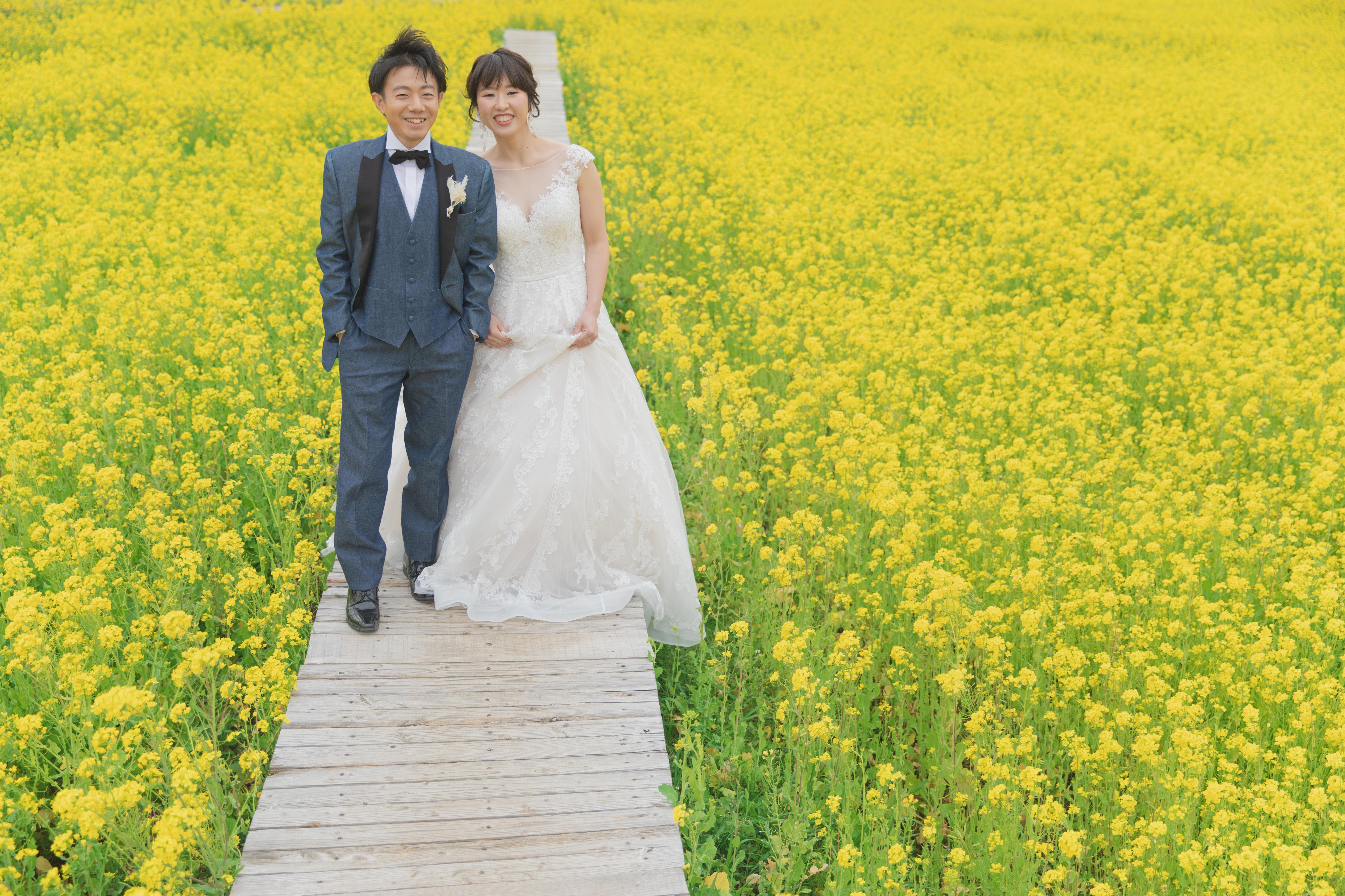 一足先に春を感じられる、河津桜とともに残す結婚写真を。