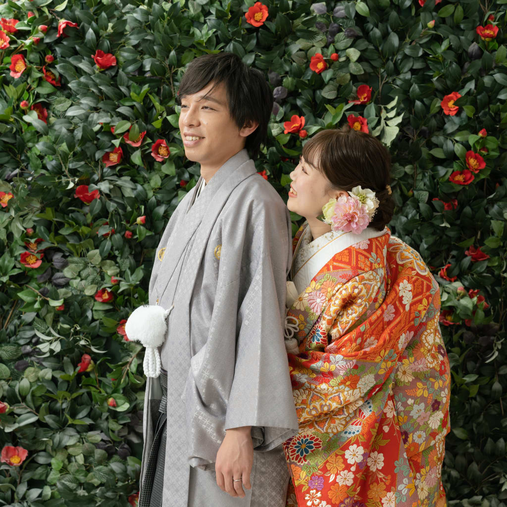 和装にお着替えして、スタジオで撮影をしました!和装のお二人もとても素敵です!