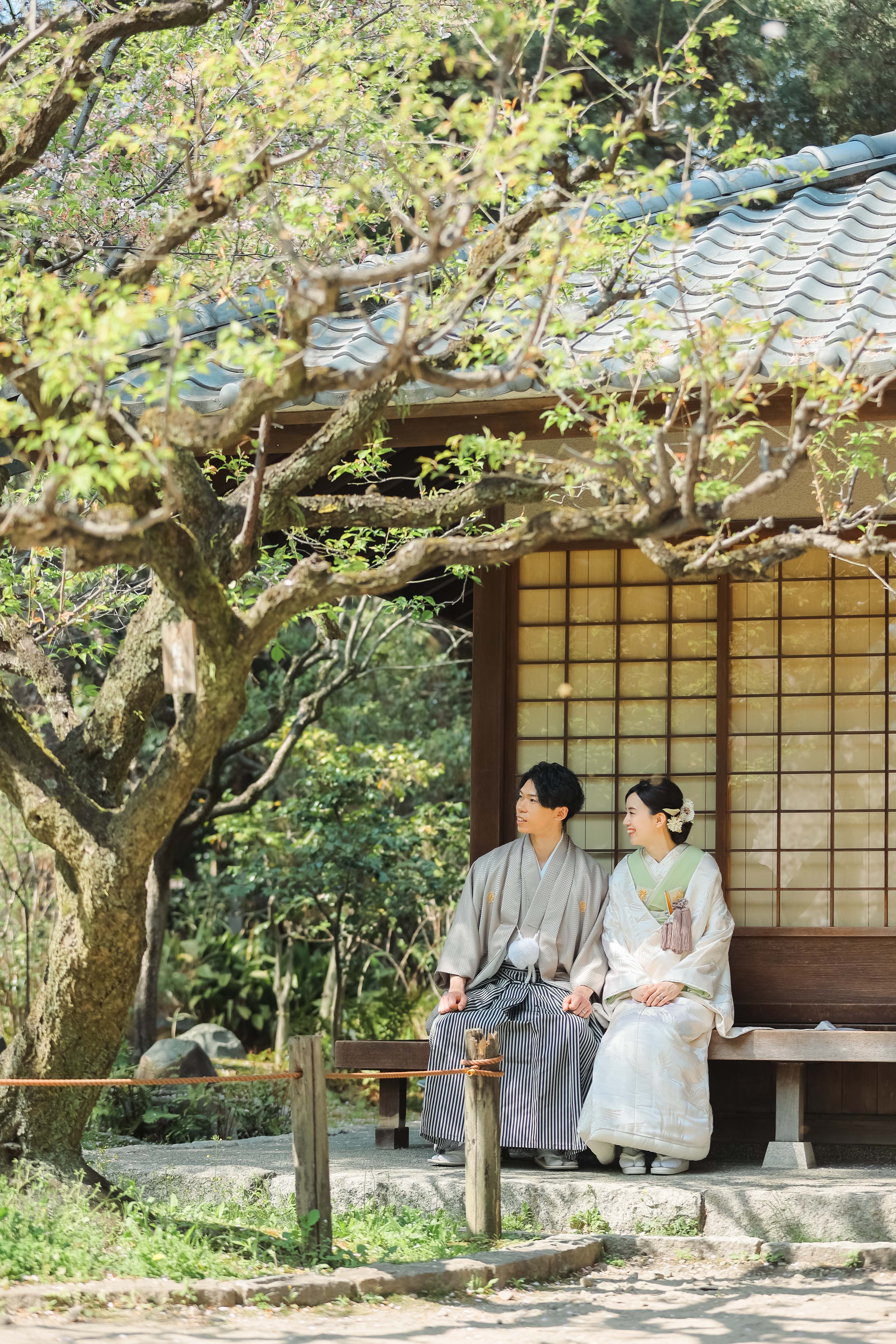 提灯と階段、緑の組み合わせがとても素敵な場所で、シチュエーションをつくって撮影いたしました。