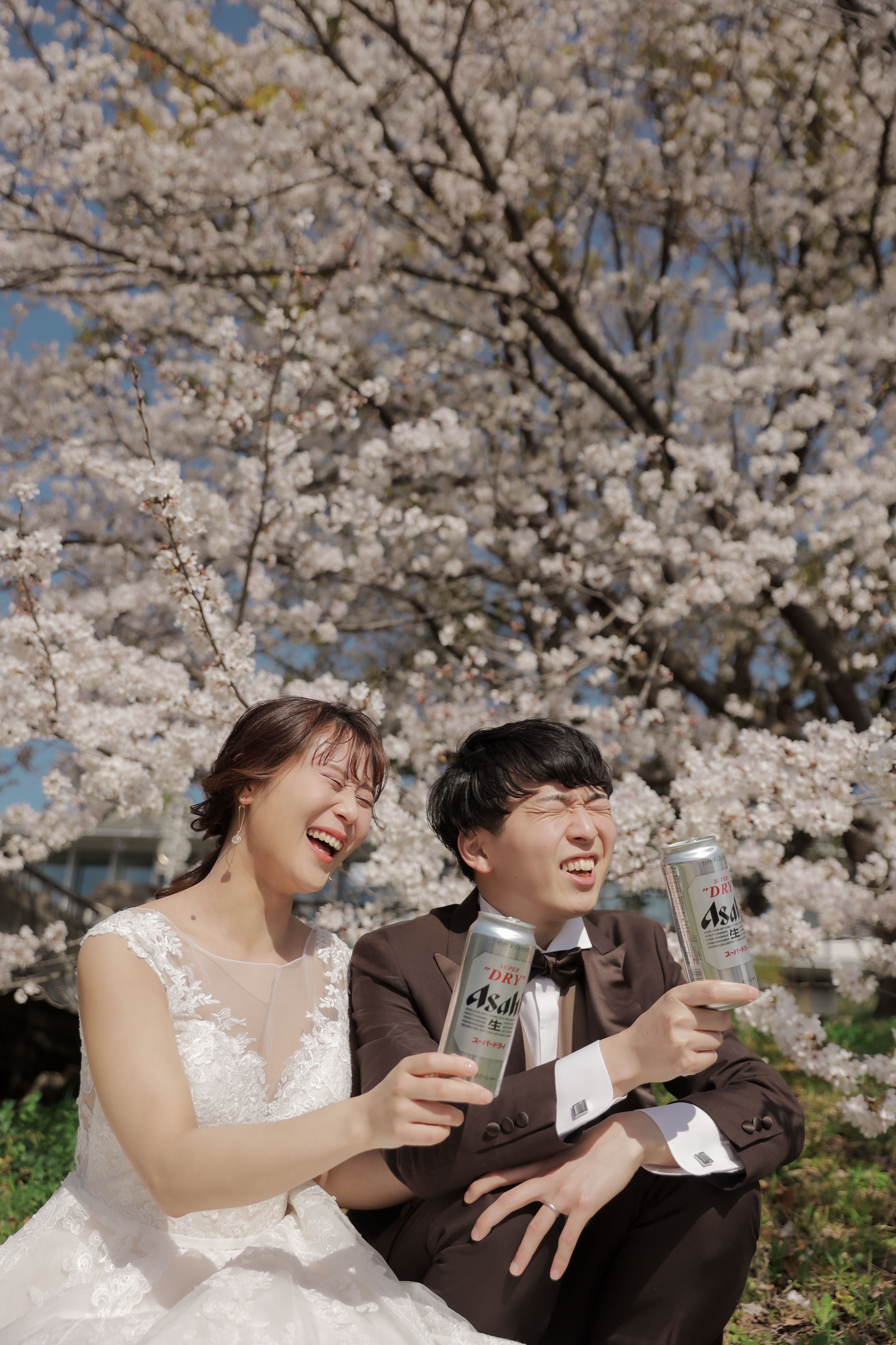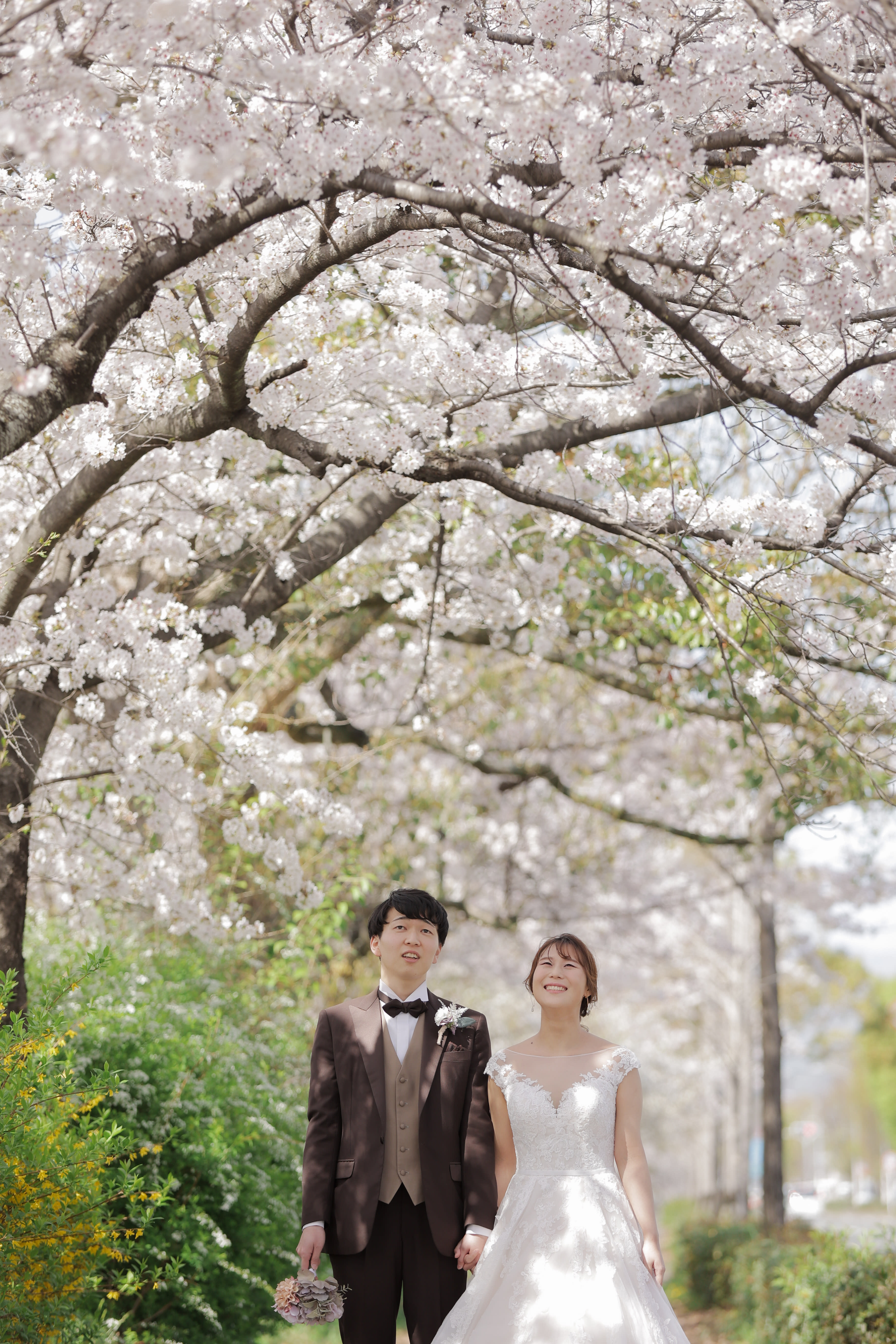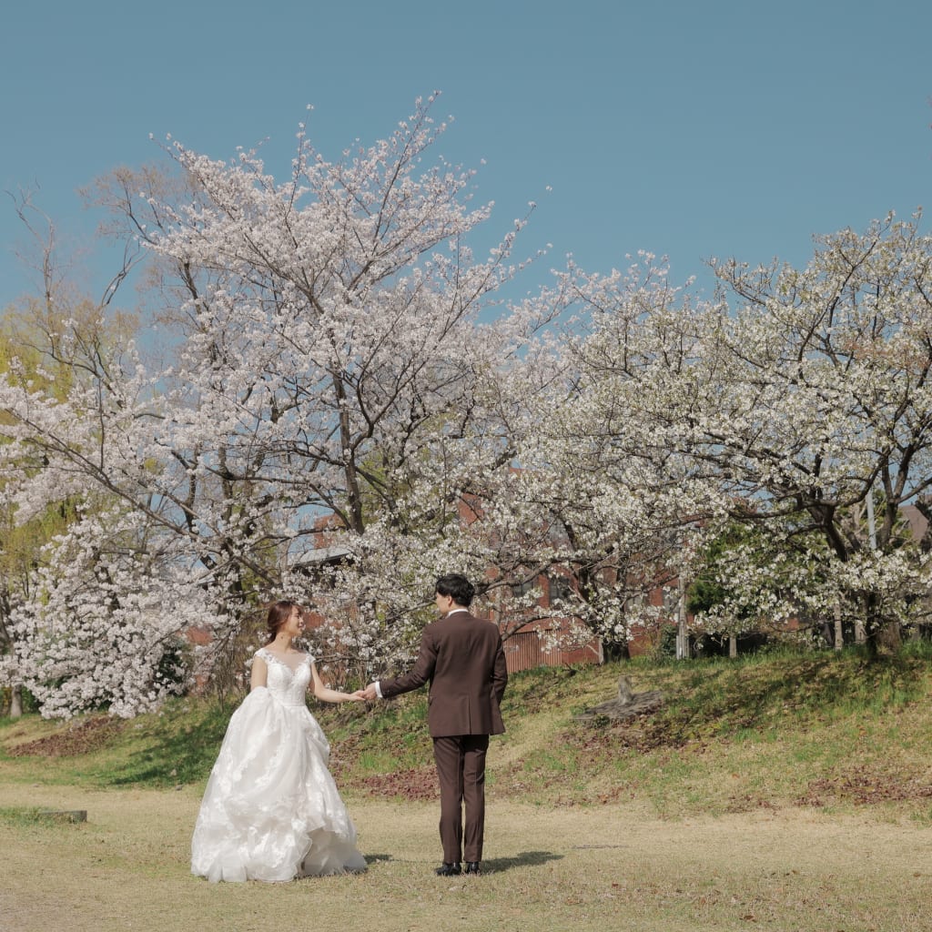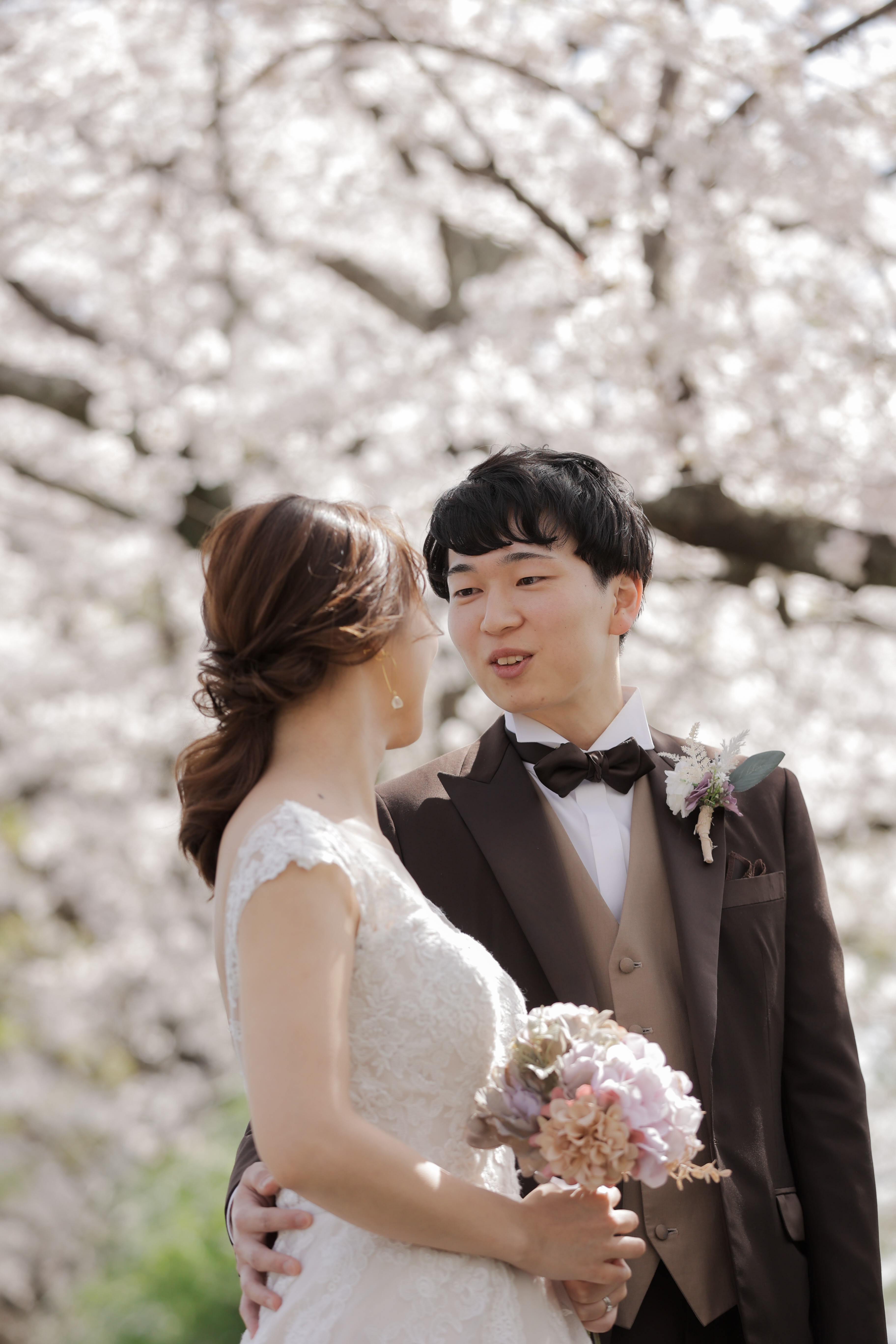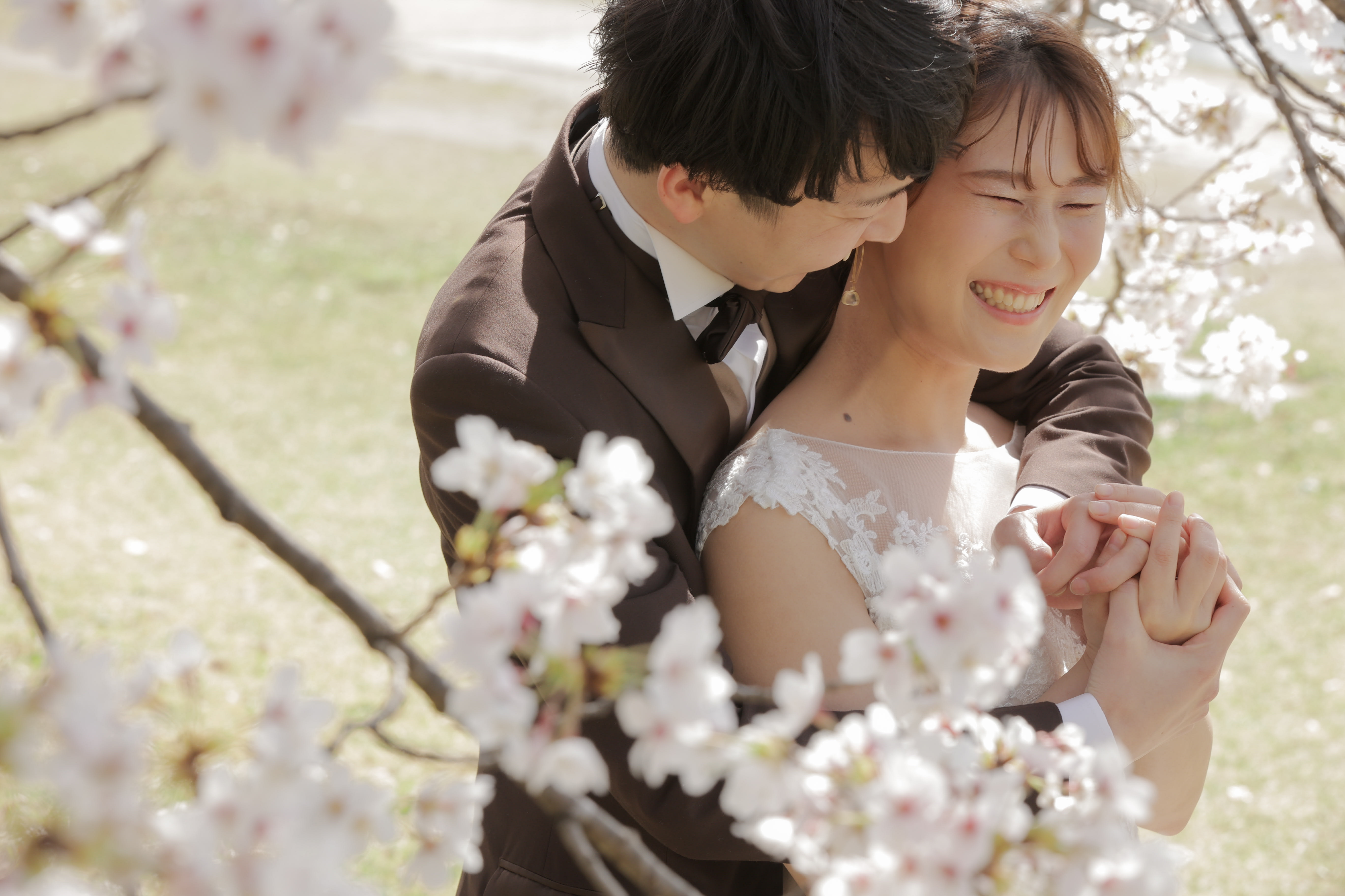 桜の間から見えるおふたりの世界。