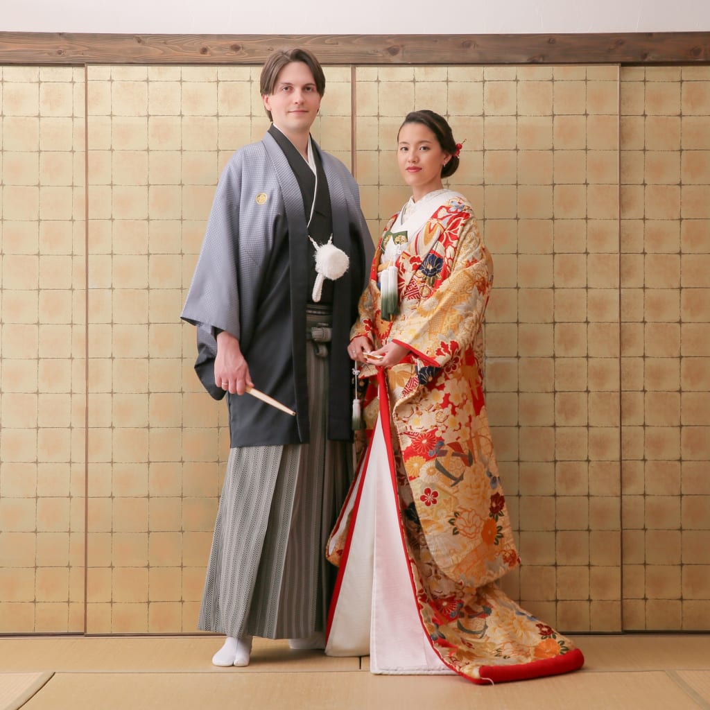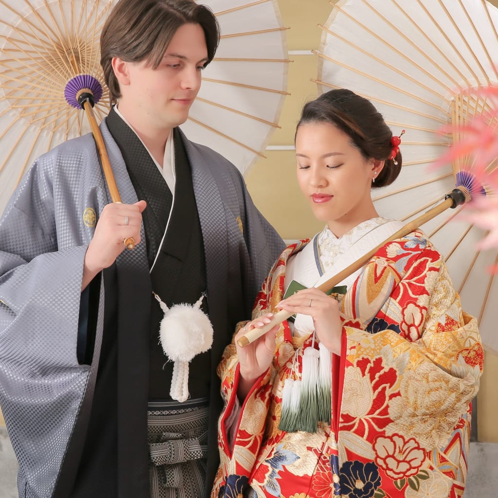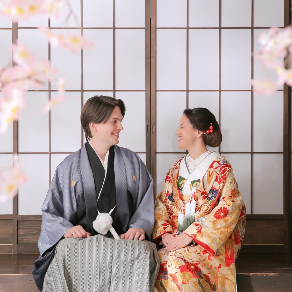 新宿店の本格的な茶室スタジオで撮影する、和装の結婚写真