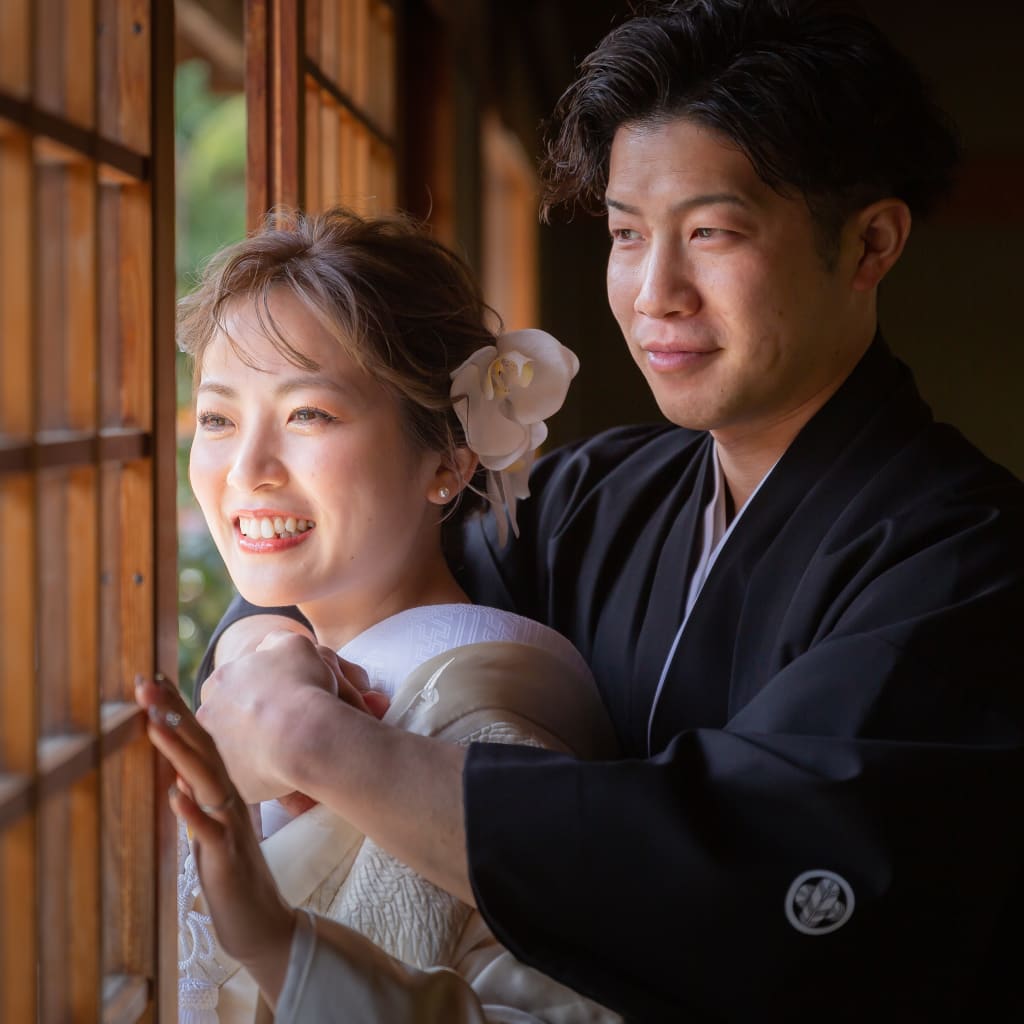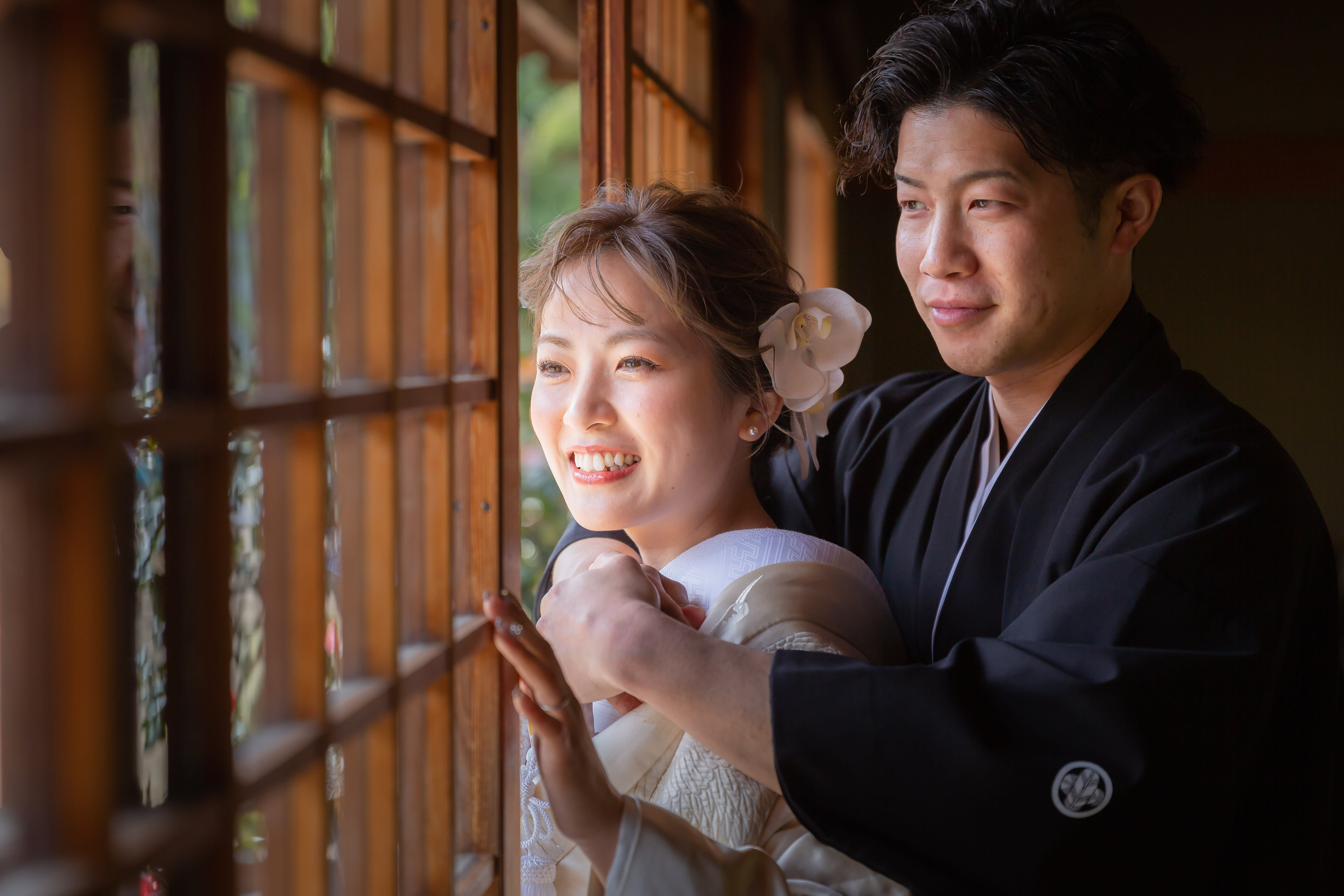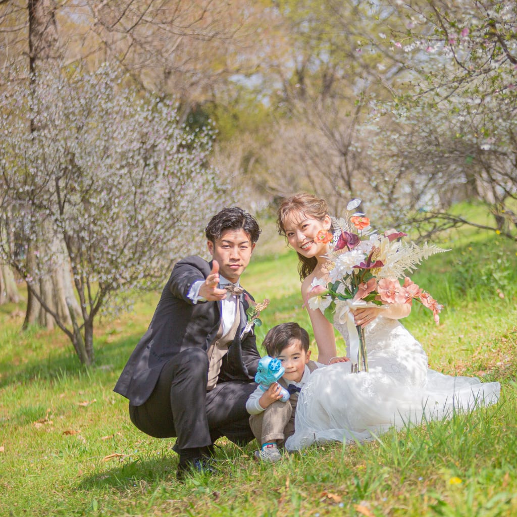 大仙公園で撮影する、洋装と和装がセットになった人気プラン