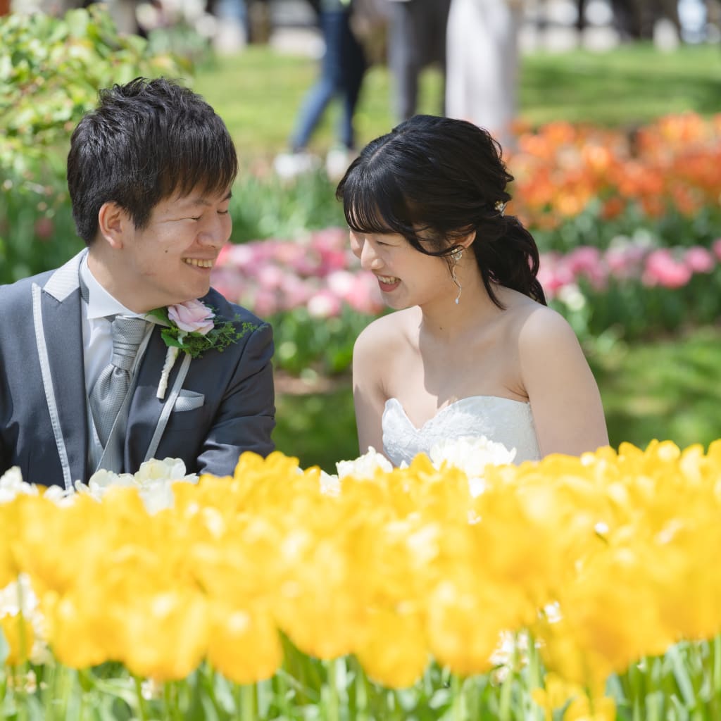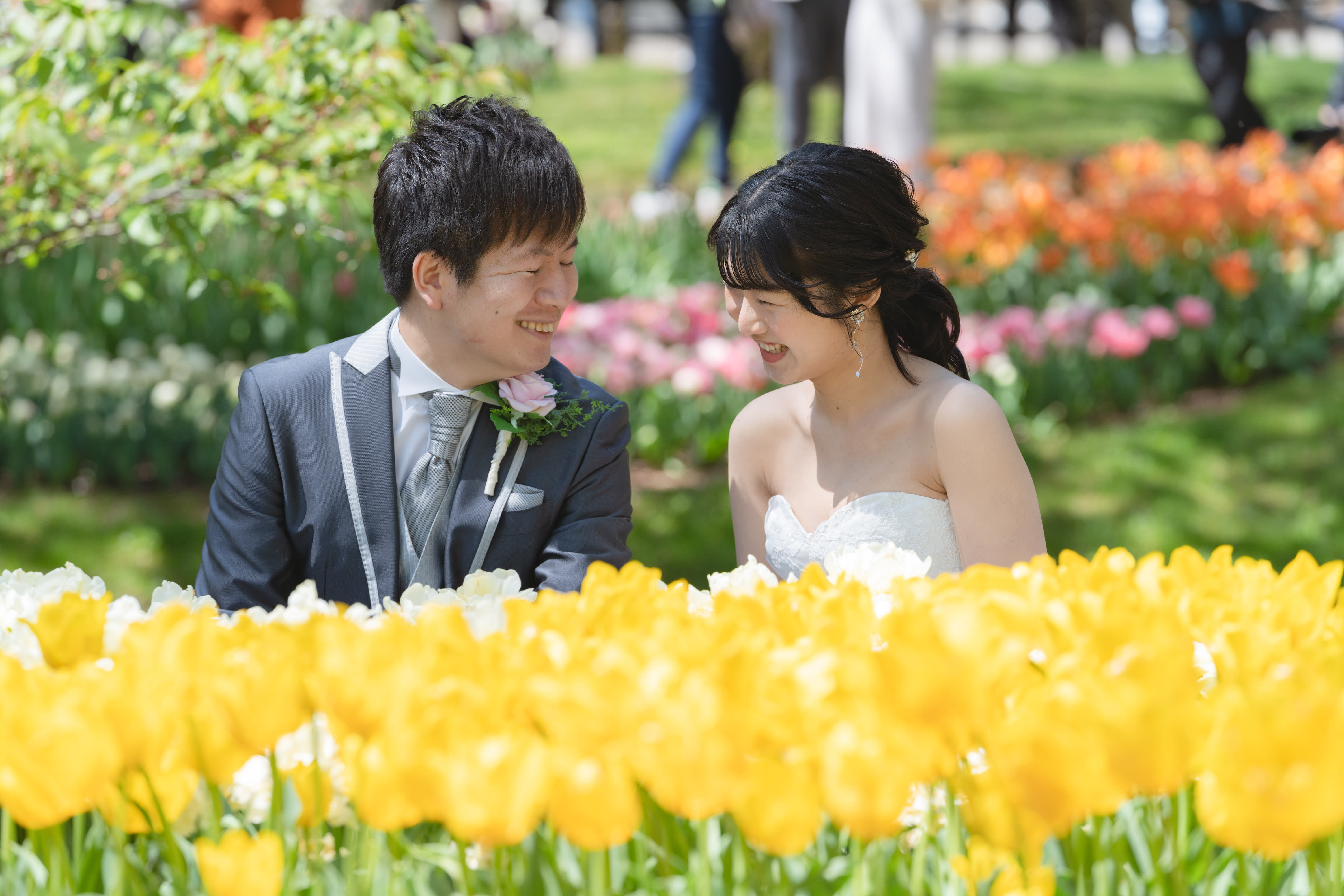 木陰で一休みしながら、チューリップを見ているお二人を残しました!