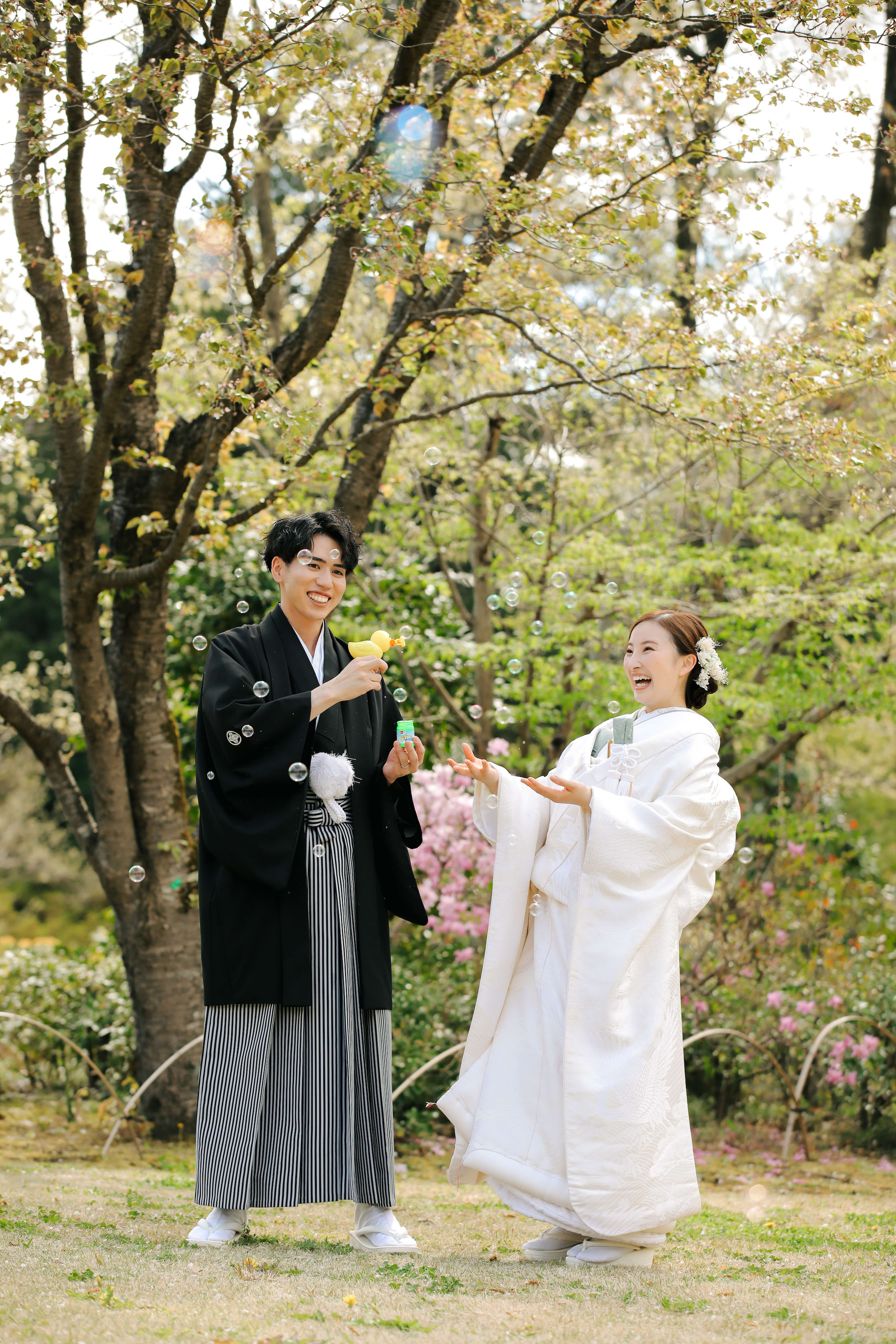 撮影時期もちょうど八重桜が満開の時期だったので、とっても写真映えしてくれました♫お二人もいい笑顔です!