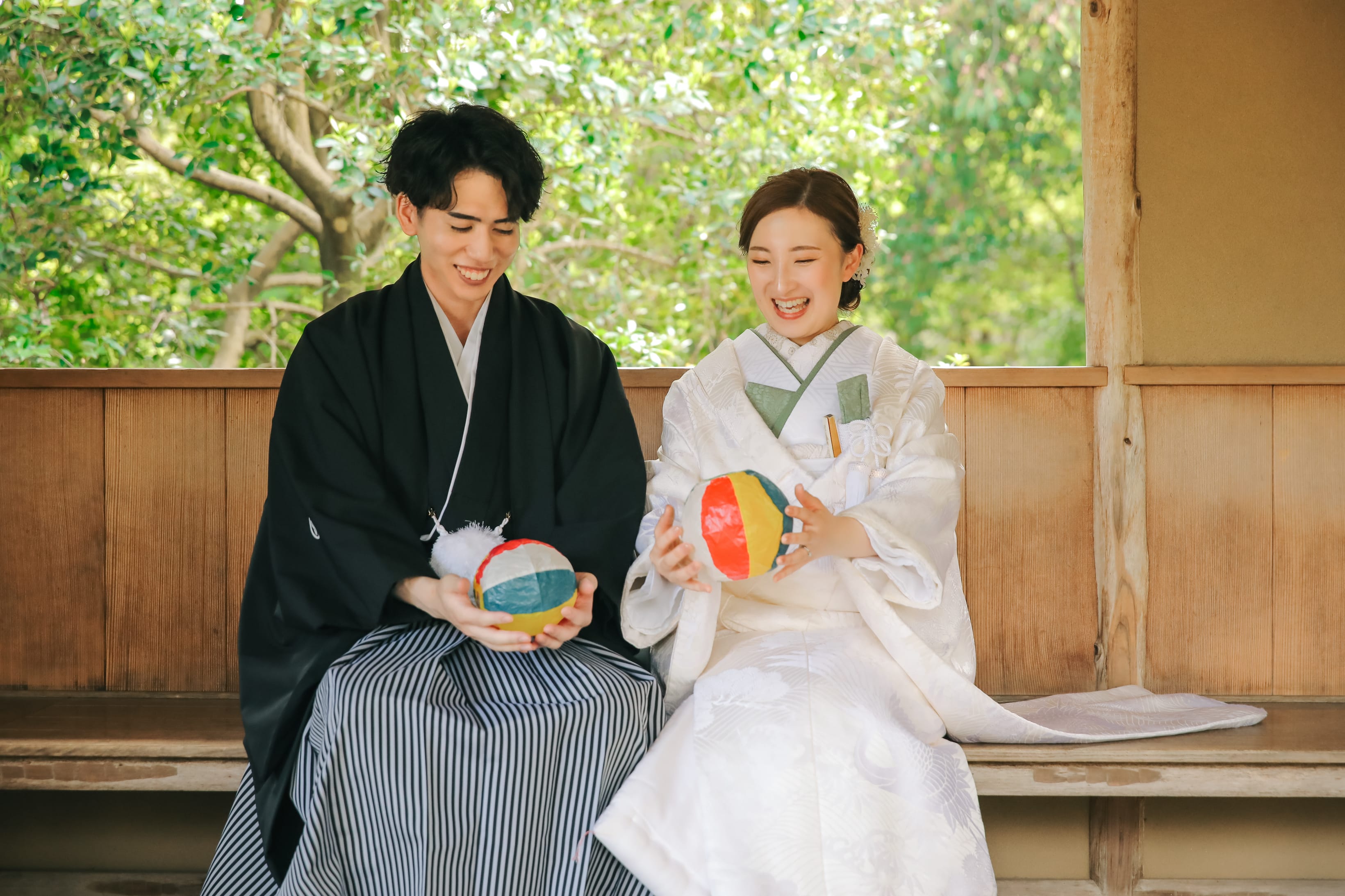 こちらもお二人のお持ち込みの小物で、今度はシャボン玉で遊んでいただきました!童心に戻るような楽しそうな雰囲気が素敵ですね♪
