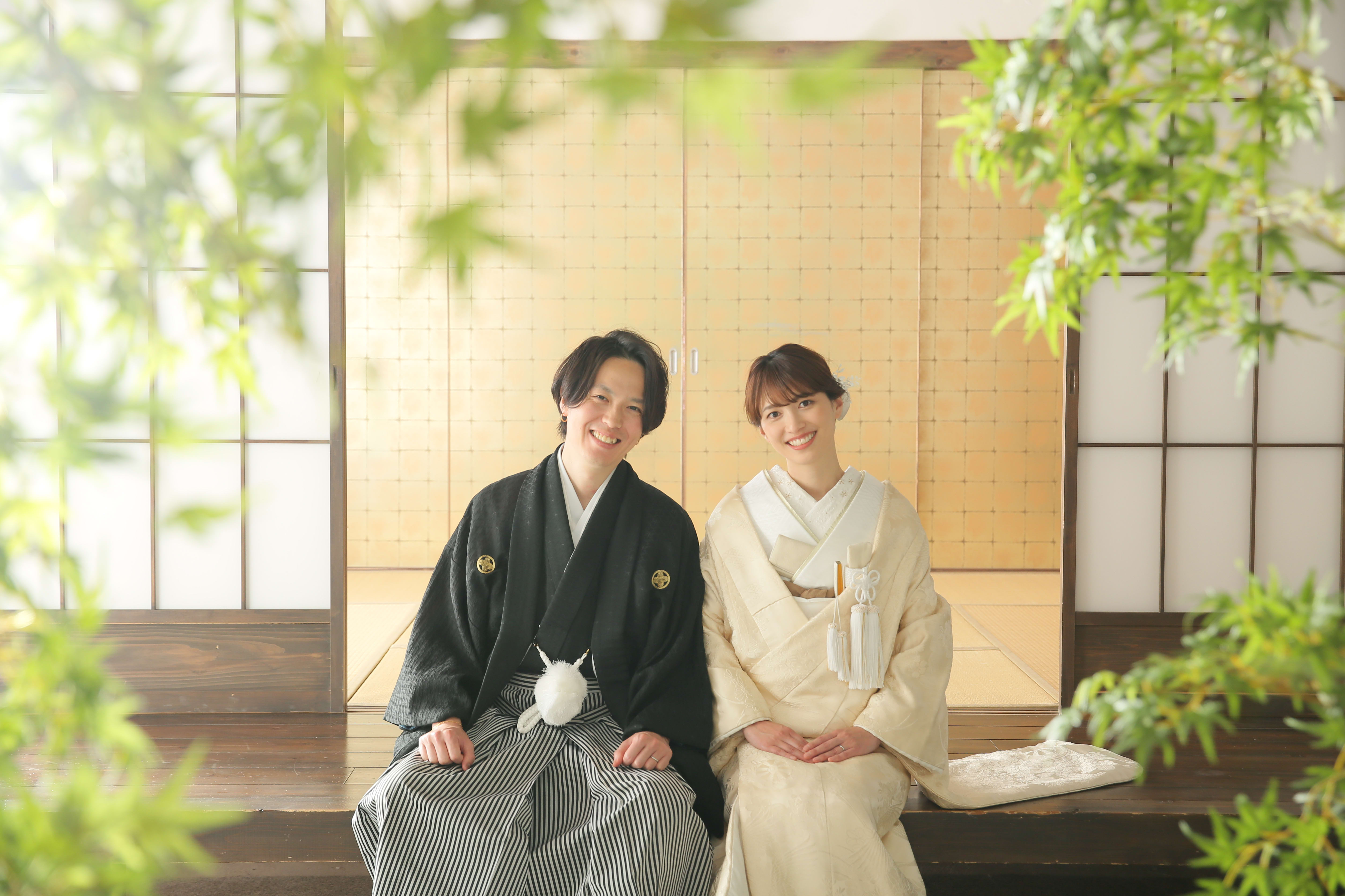 新宿店の本格的な茶室スタジオで撮影する、和装の結婚写真