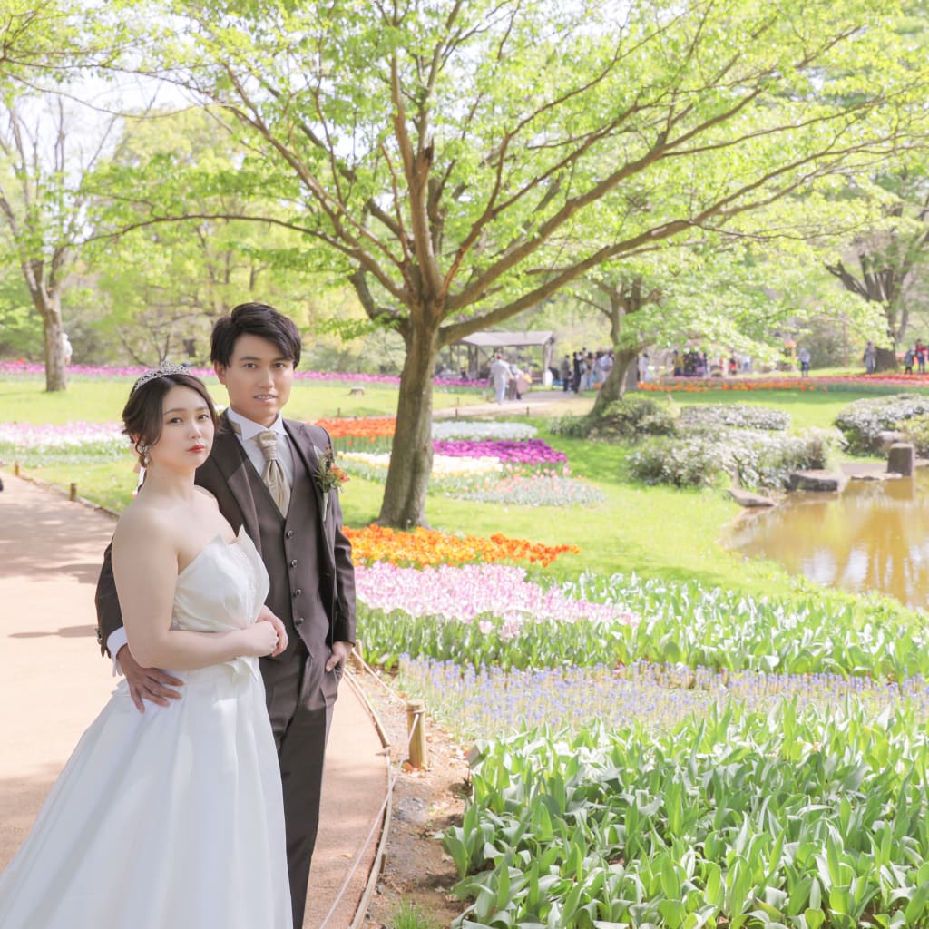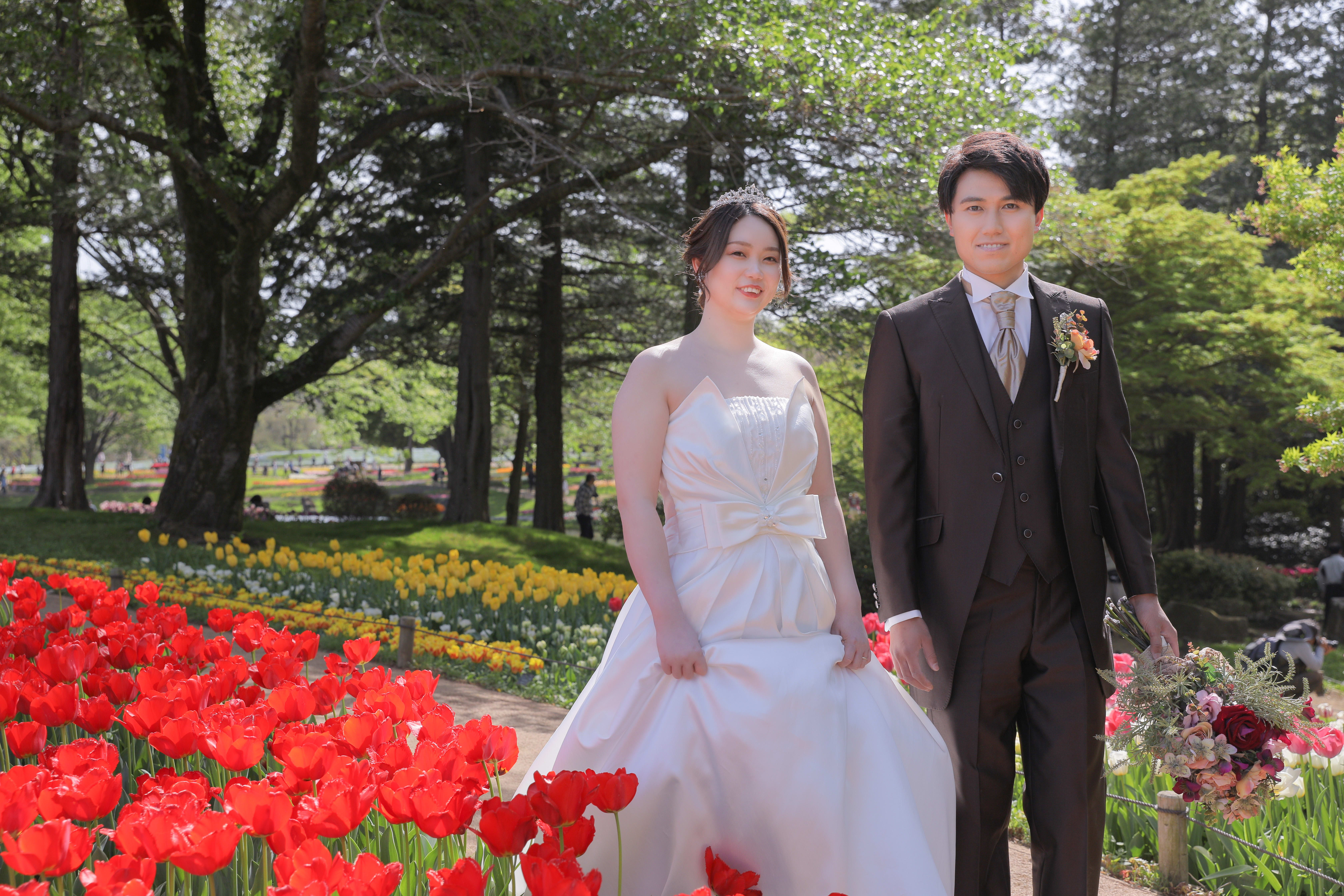 洋装で春の昭和記念公園を散策! | デコルテフォトグラフィー | 前撮り・フォトウェディング