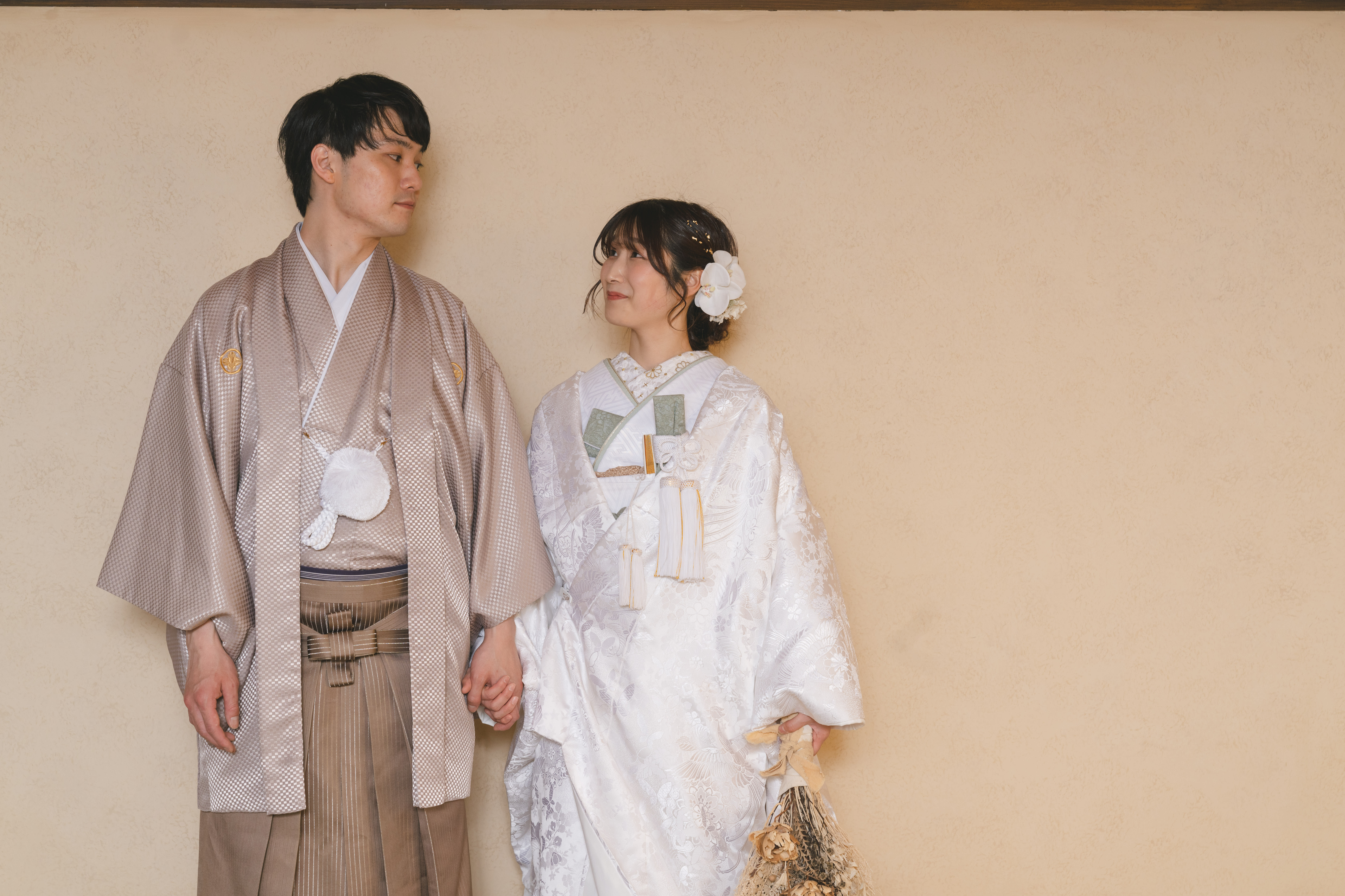 手を繋いで見つめ合うお二人を残しました!最初からとても素敵な笑顔を見せてくださいました!