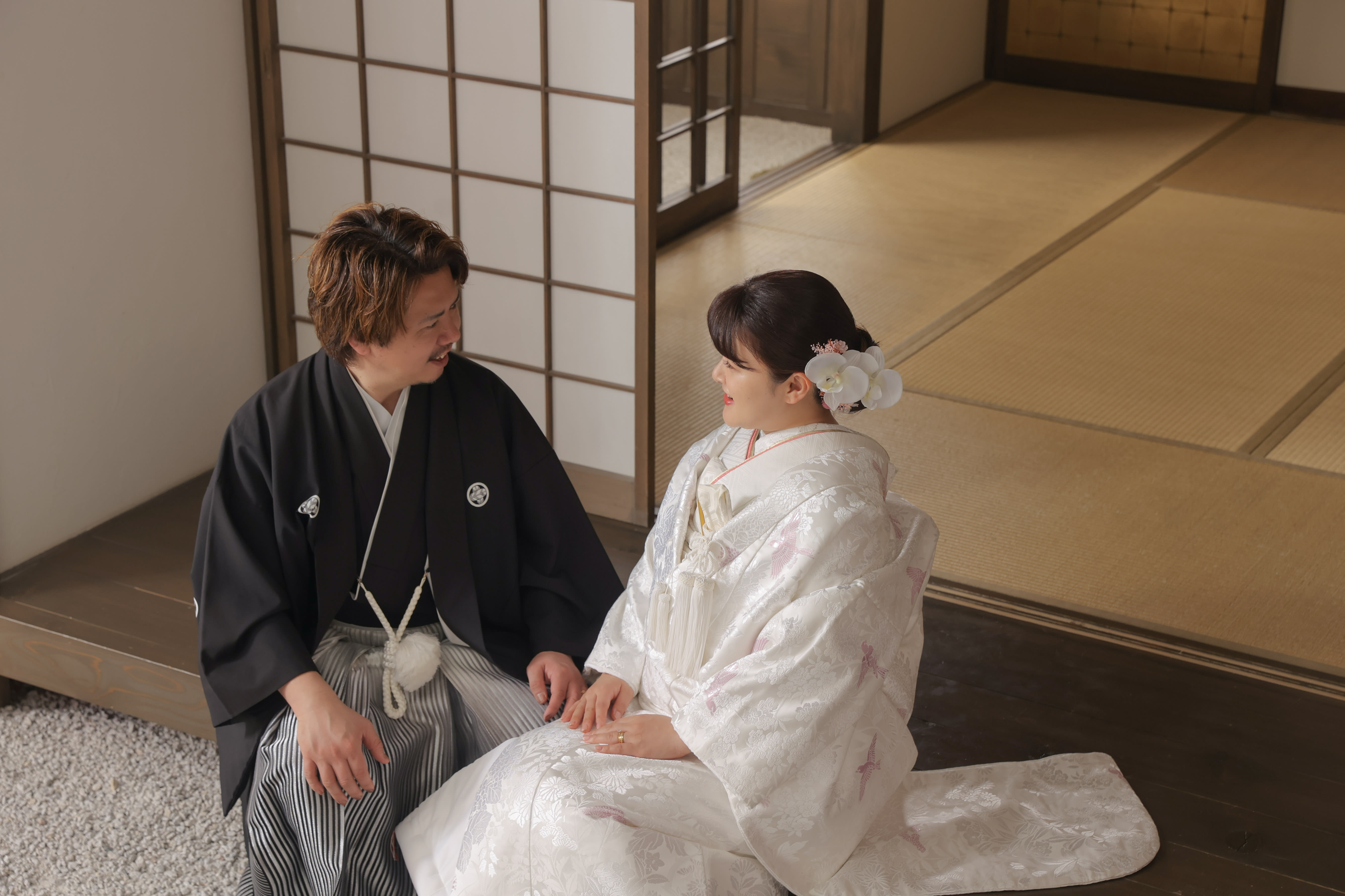 縁側で休憩しているイメージで撮影させていただきました。屋内庭園でも桜と撮影することができます!