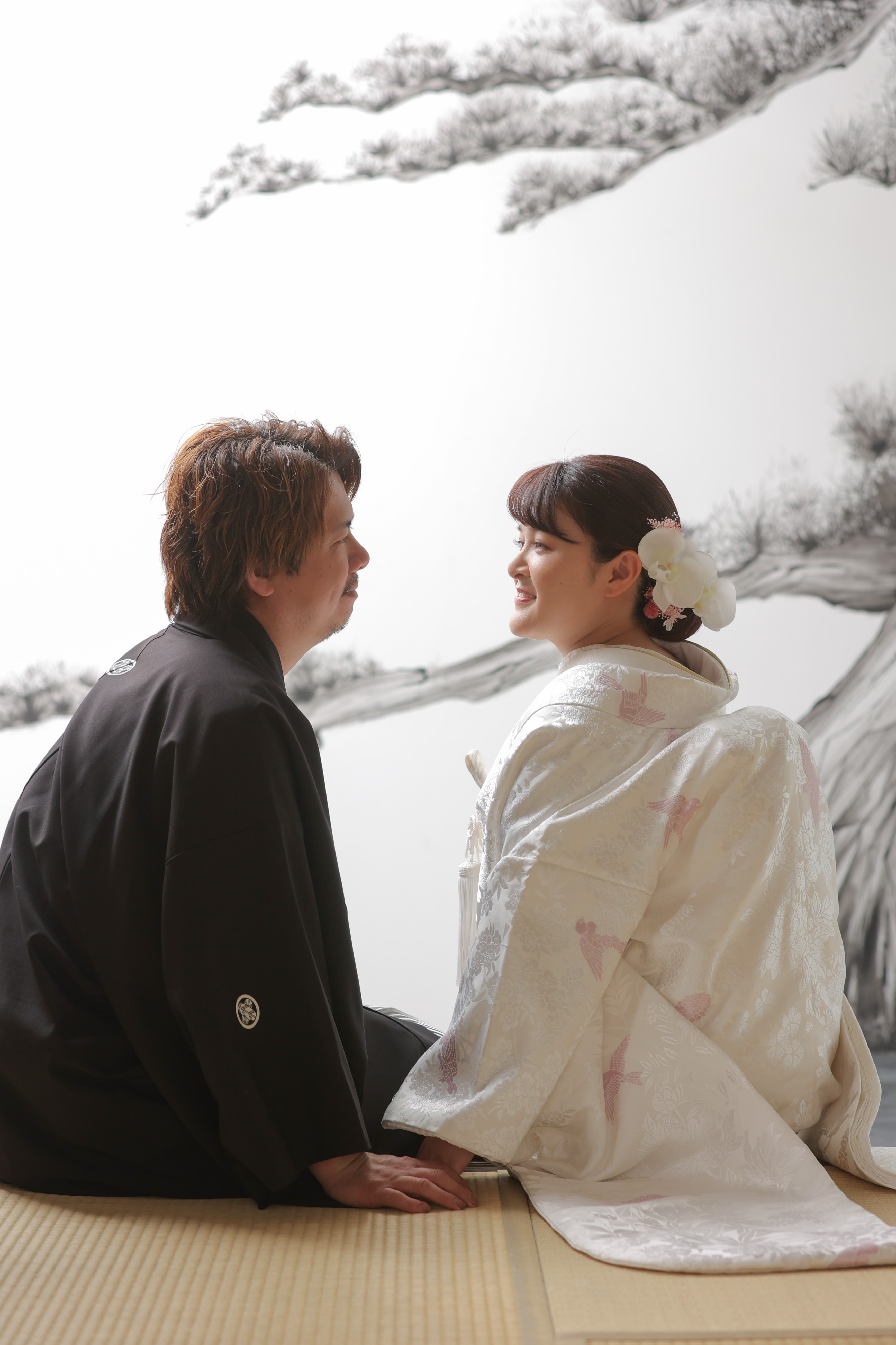 最後は猪目窓の前でお辞儀ポーズ!とても仲良しなお二人で楽しい撮影でした!