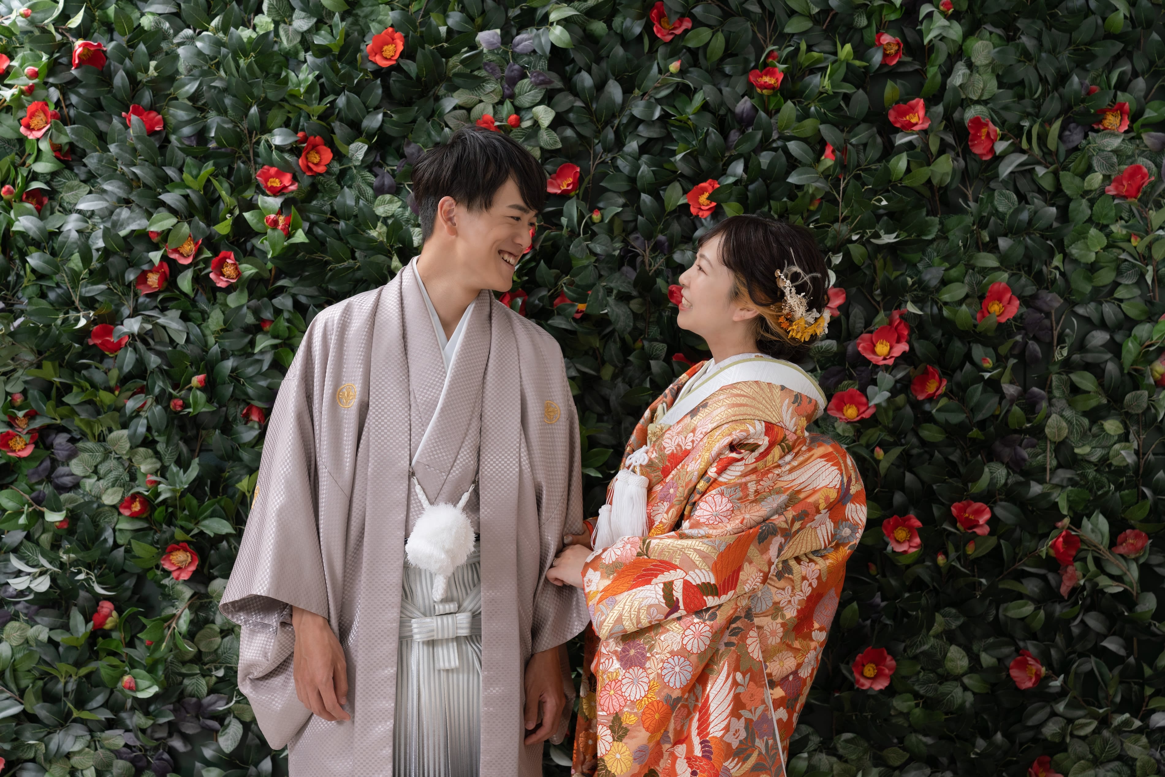 まずは、屋内庭園スタジオで色打掛の撮影からスタートです!