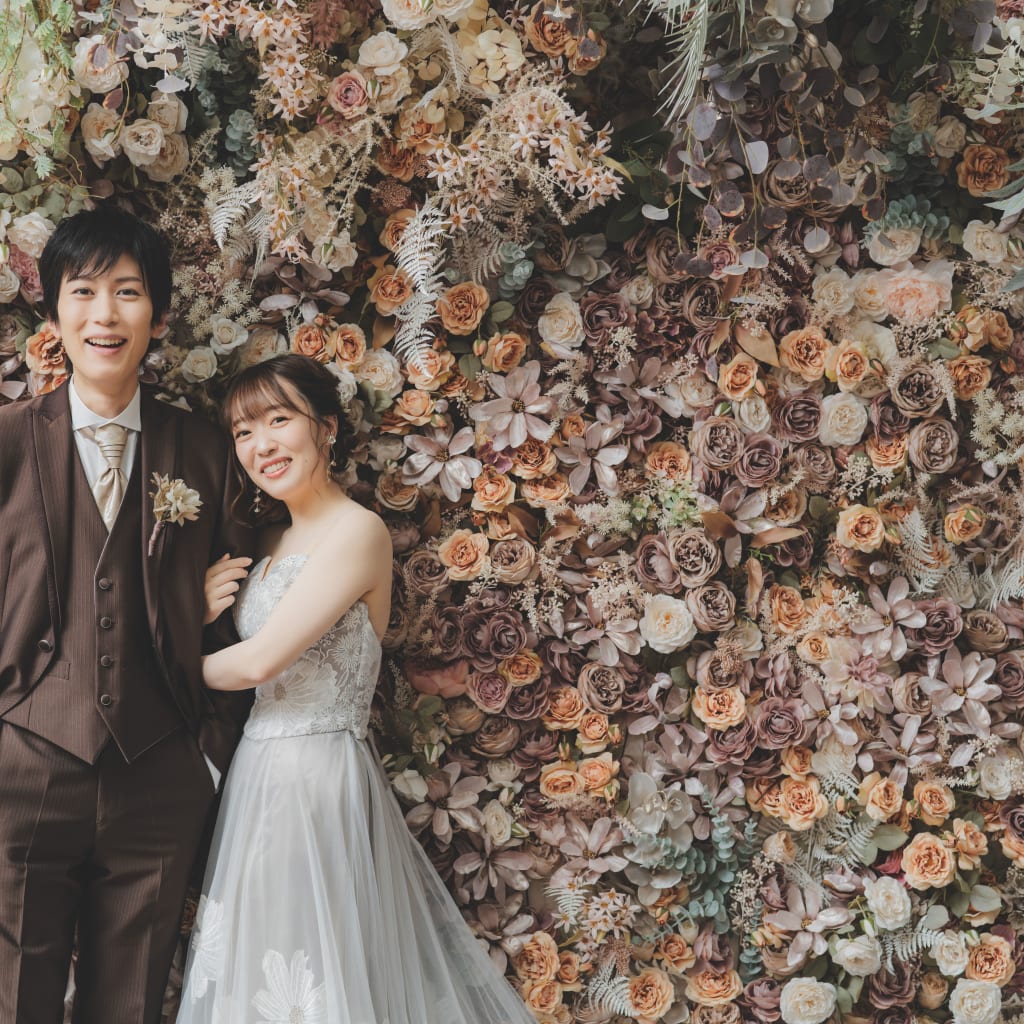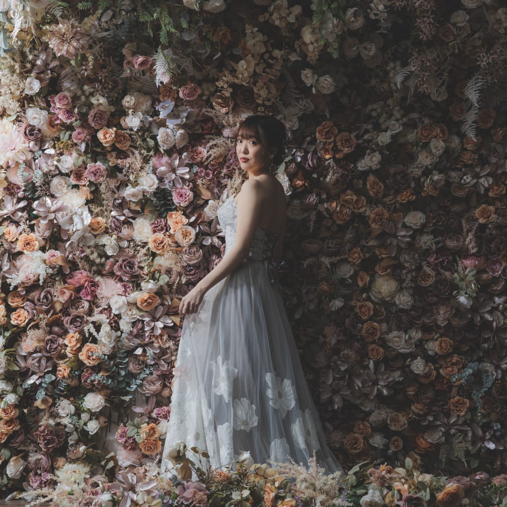 ハウススタジオといえば花壁!ドレスの柄も見えるようにお写真を残しました!
