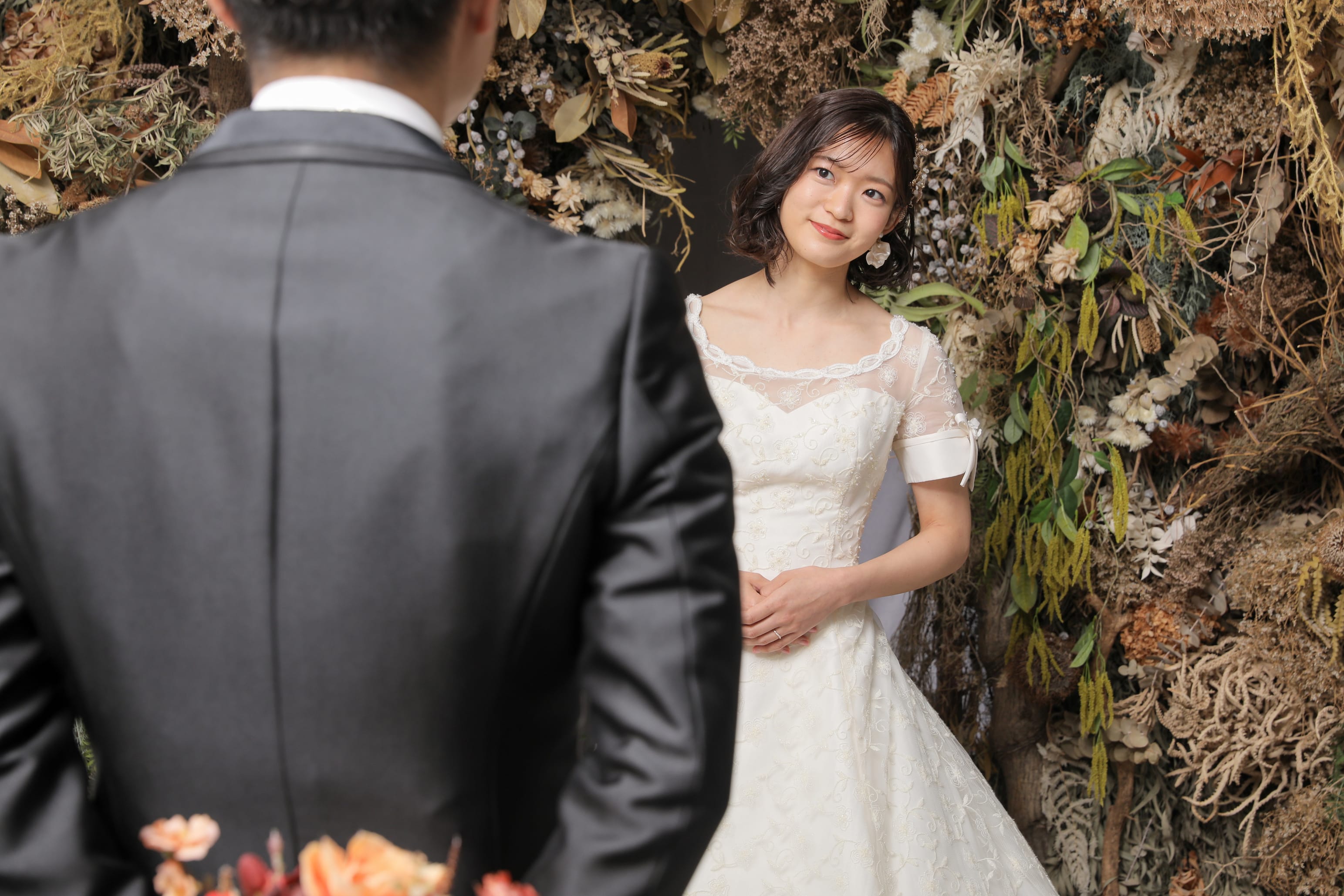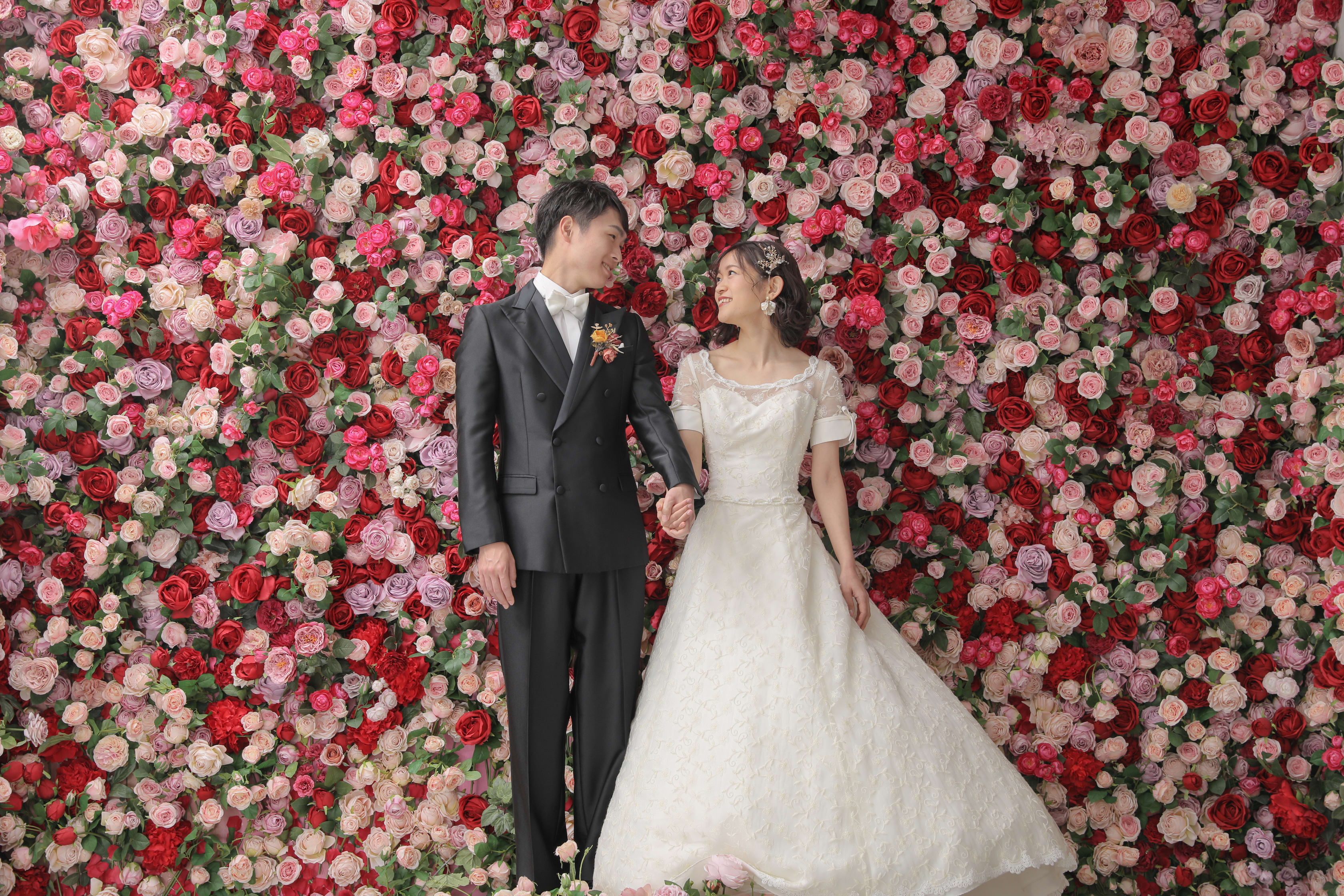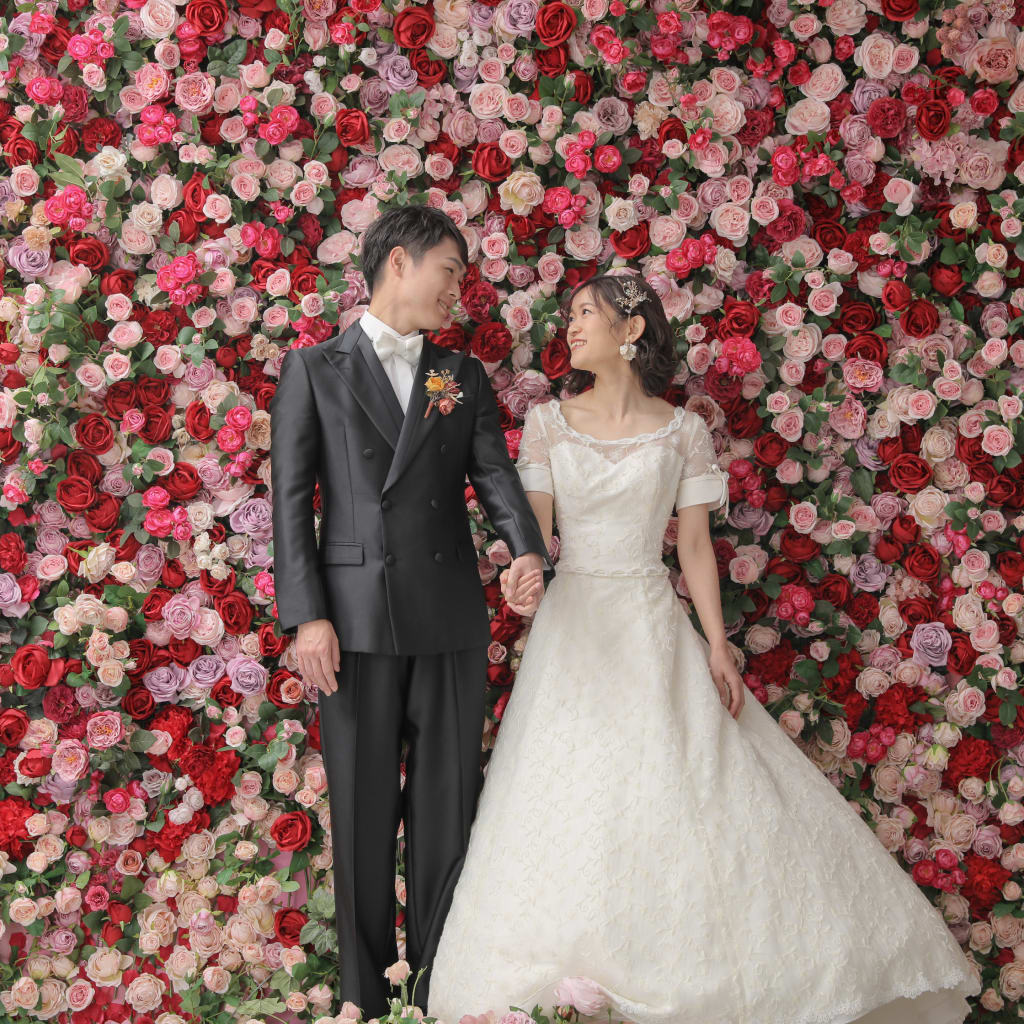 一面お花の壁が登場!新宿店ハウススタジオで撮影する洋装ウェディングフォトプラン