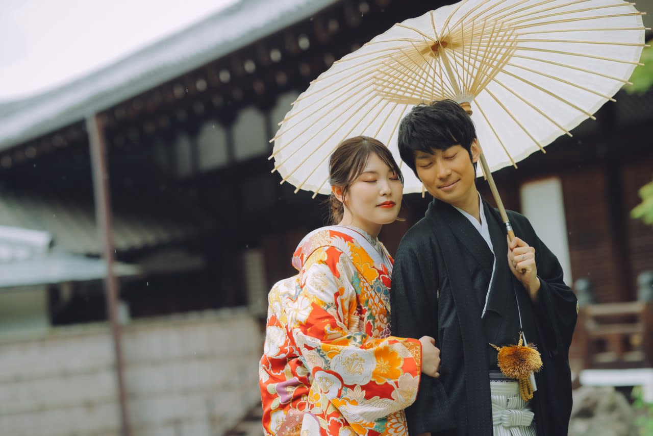 背景でより色打ち掛けと紋付袴を着ているお二人が映えますね♪03