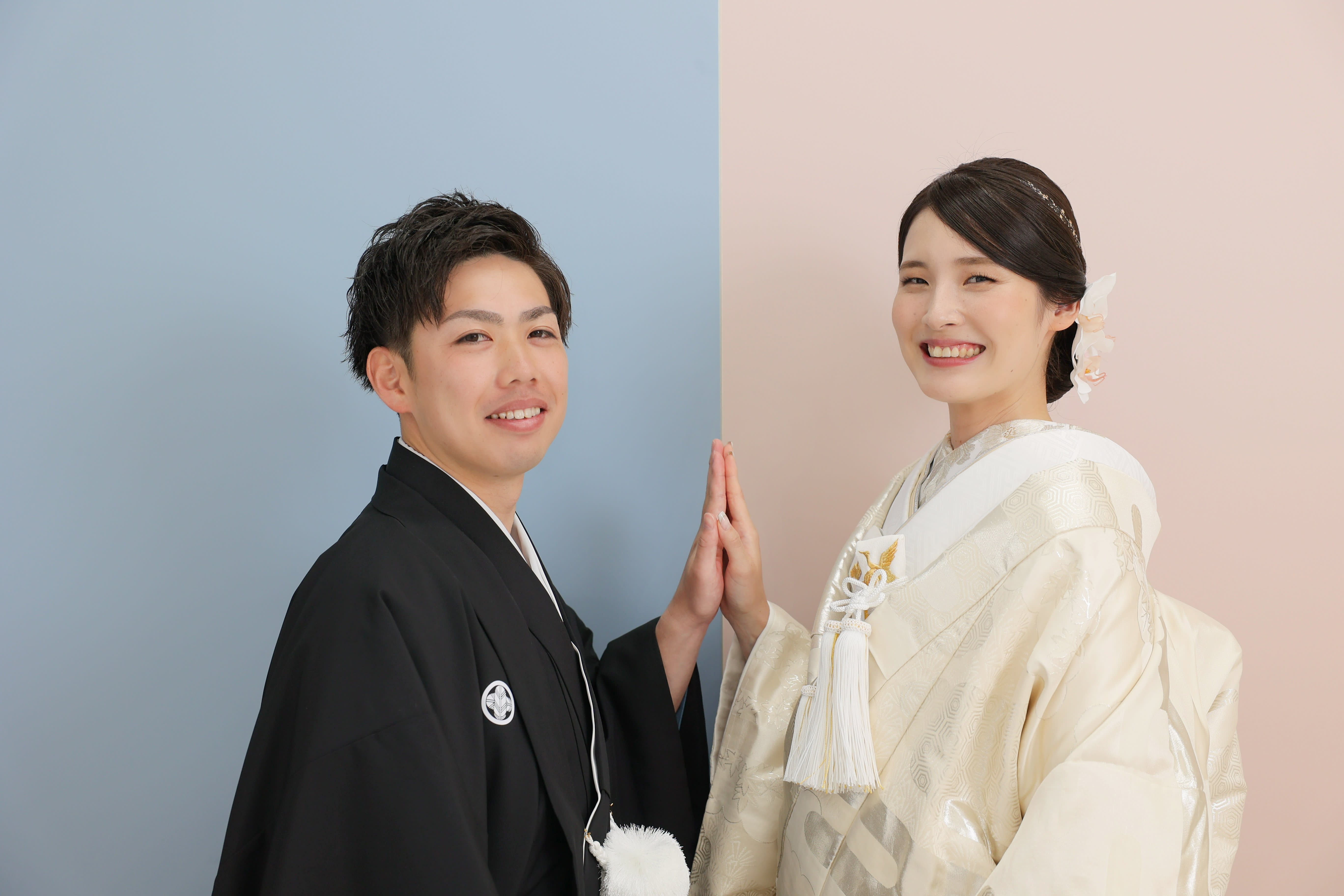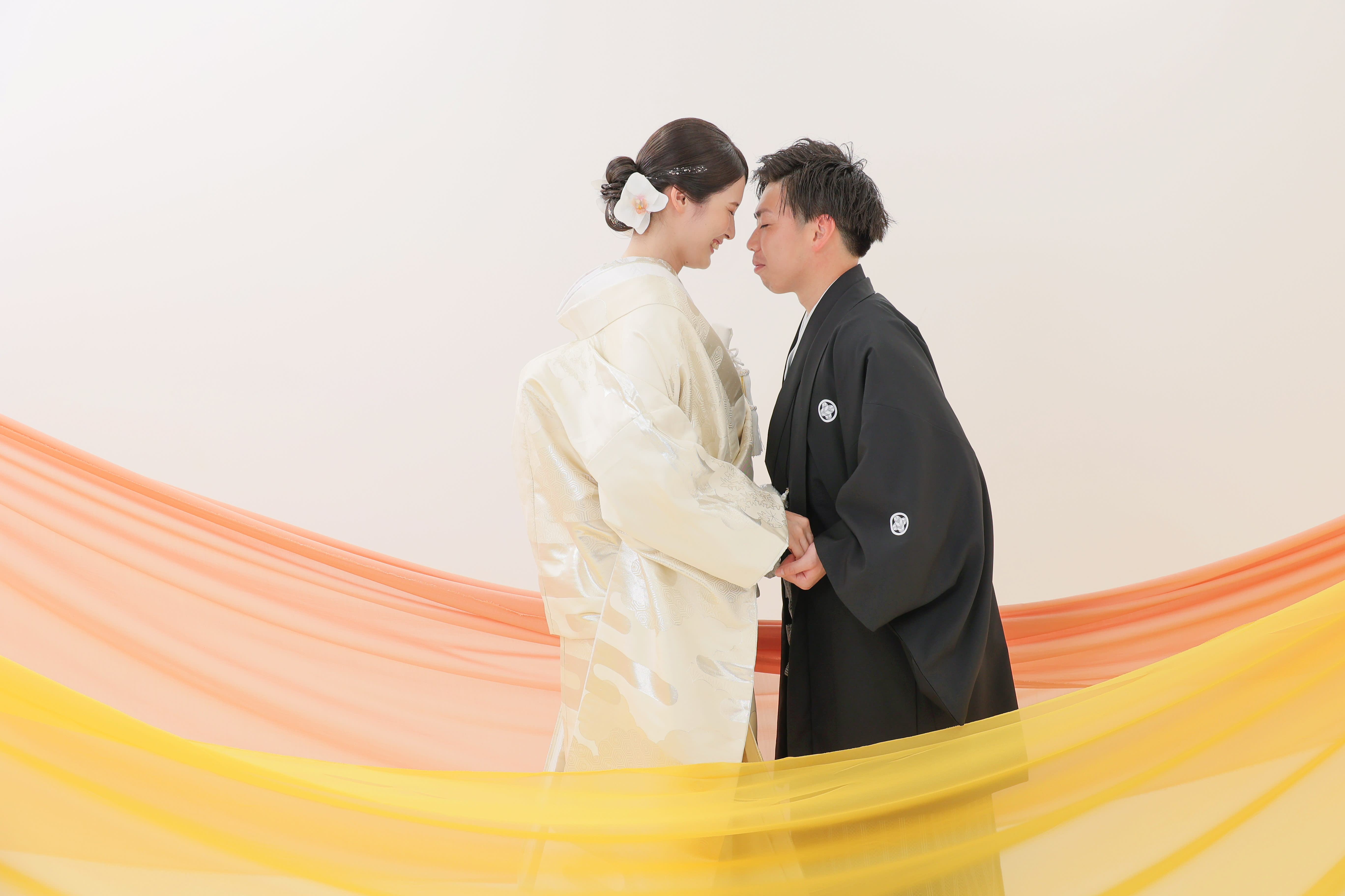 ハウススタジオと言えばお花!ここもオレンジとイエロー!明るく笑顔の絶えない2人らしい色です!