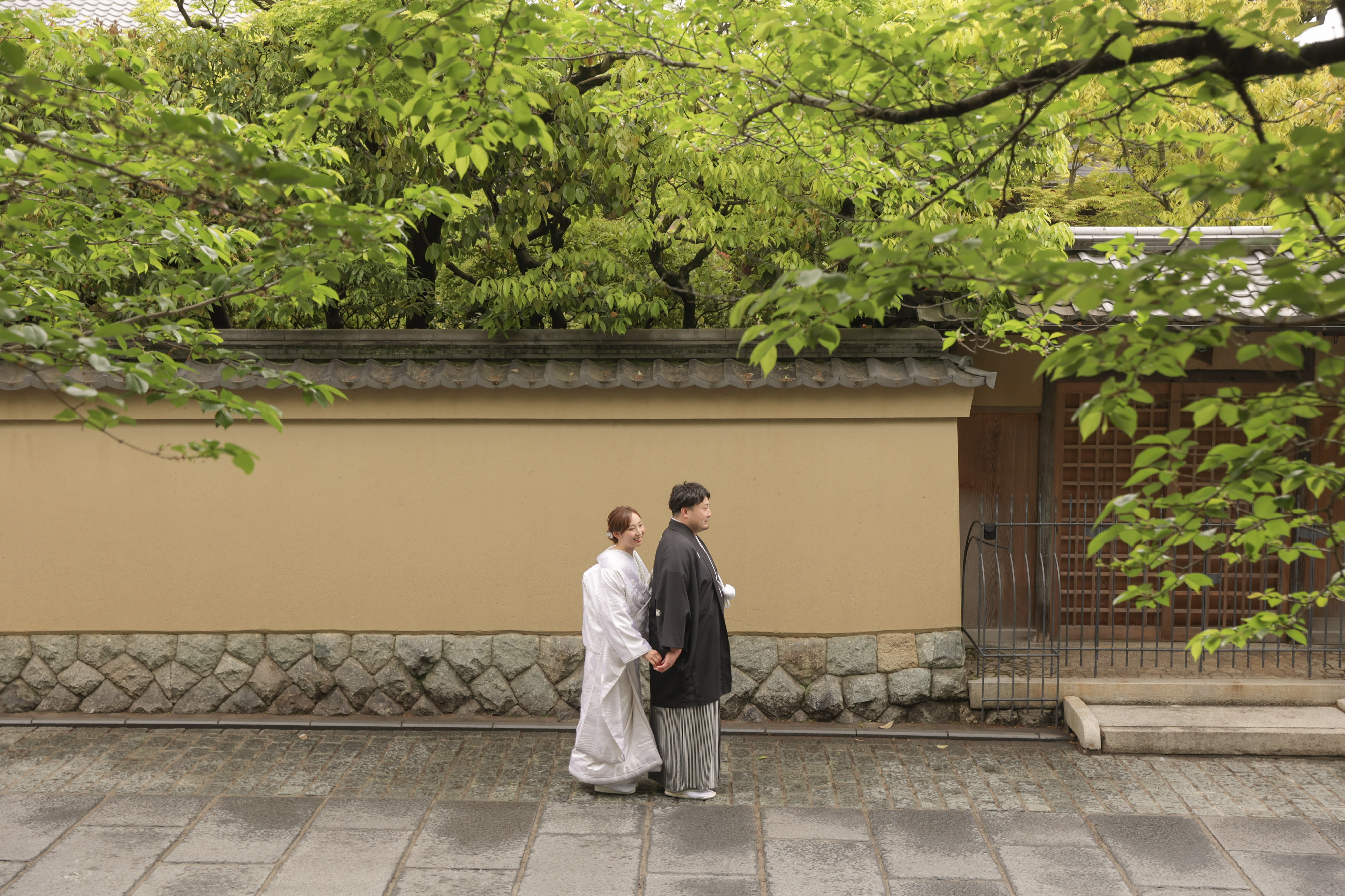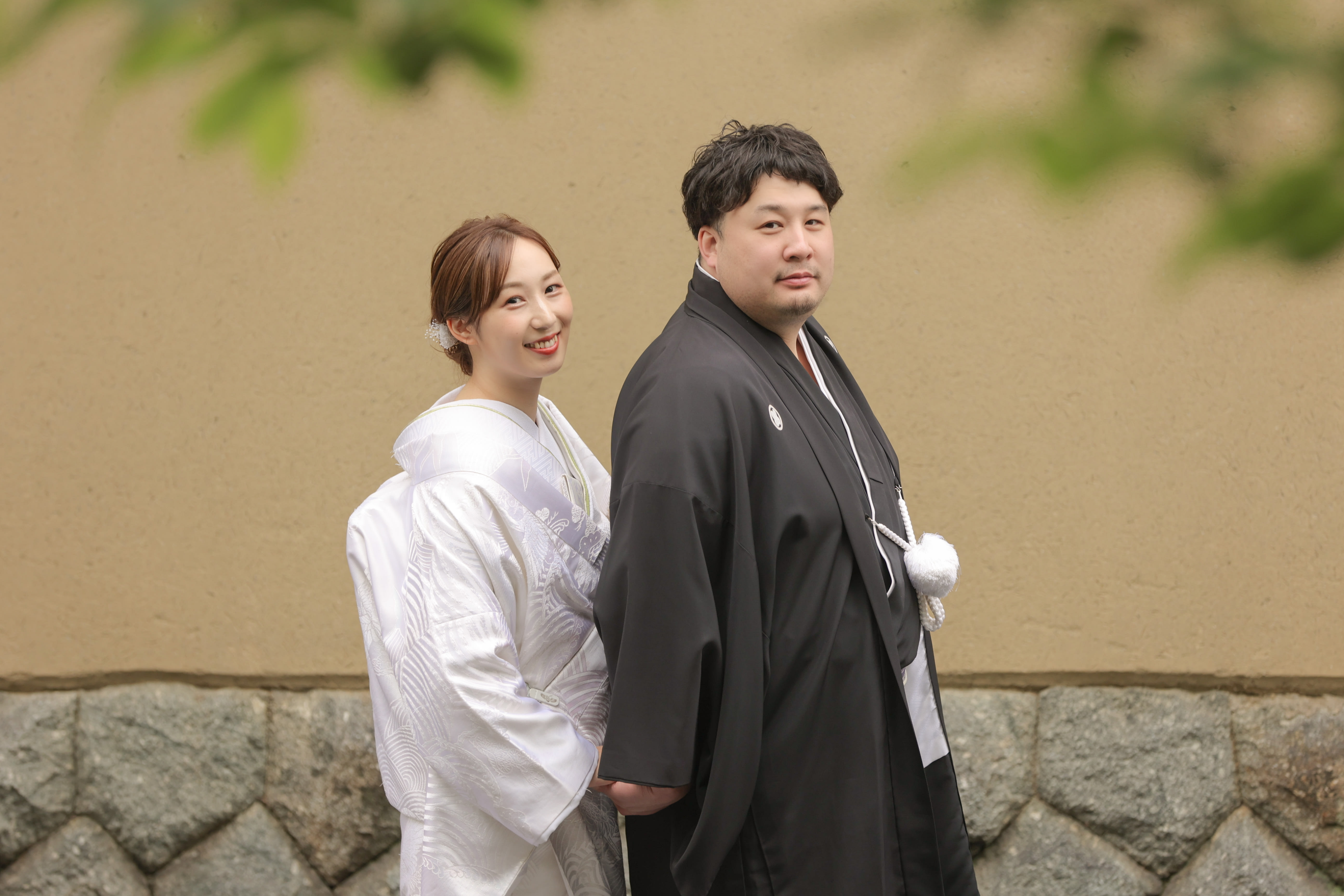 遠近法を利用して、五重塔の前でのおふたり!!だんだん、緊張もほぐれて笑顔も自然な感じが良いですね!