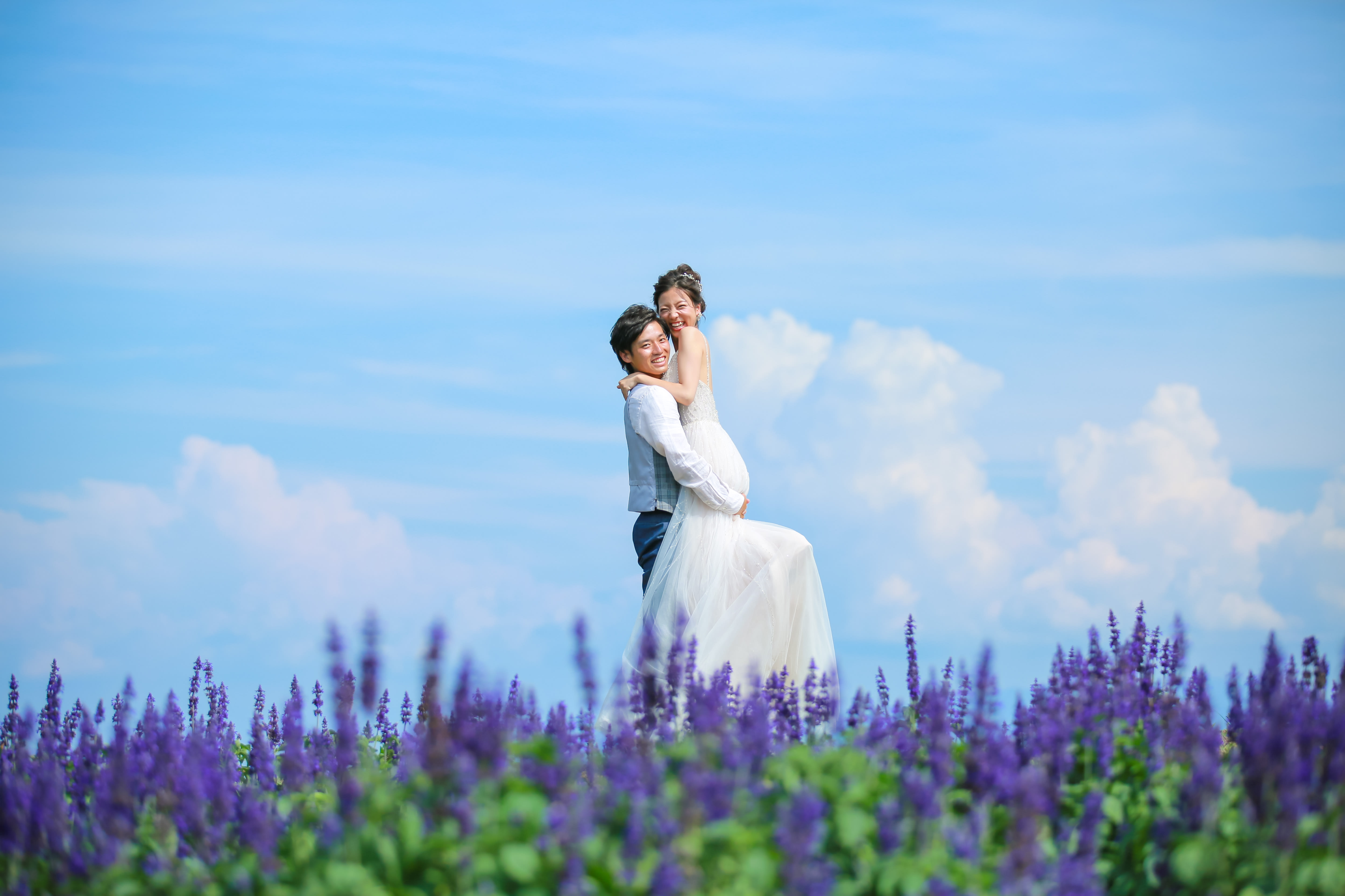 ラベンダーに囲まれて笑顔いっぱいのお二人と撮影スタートです^^